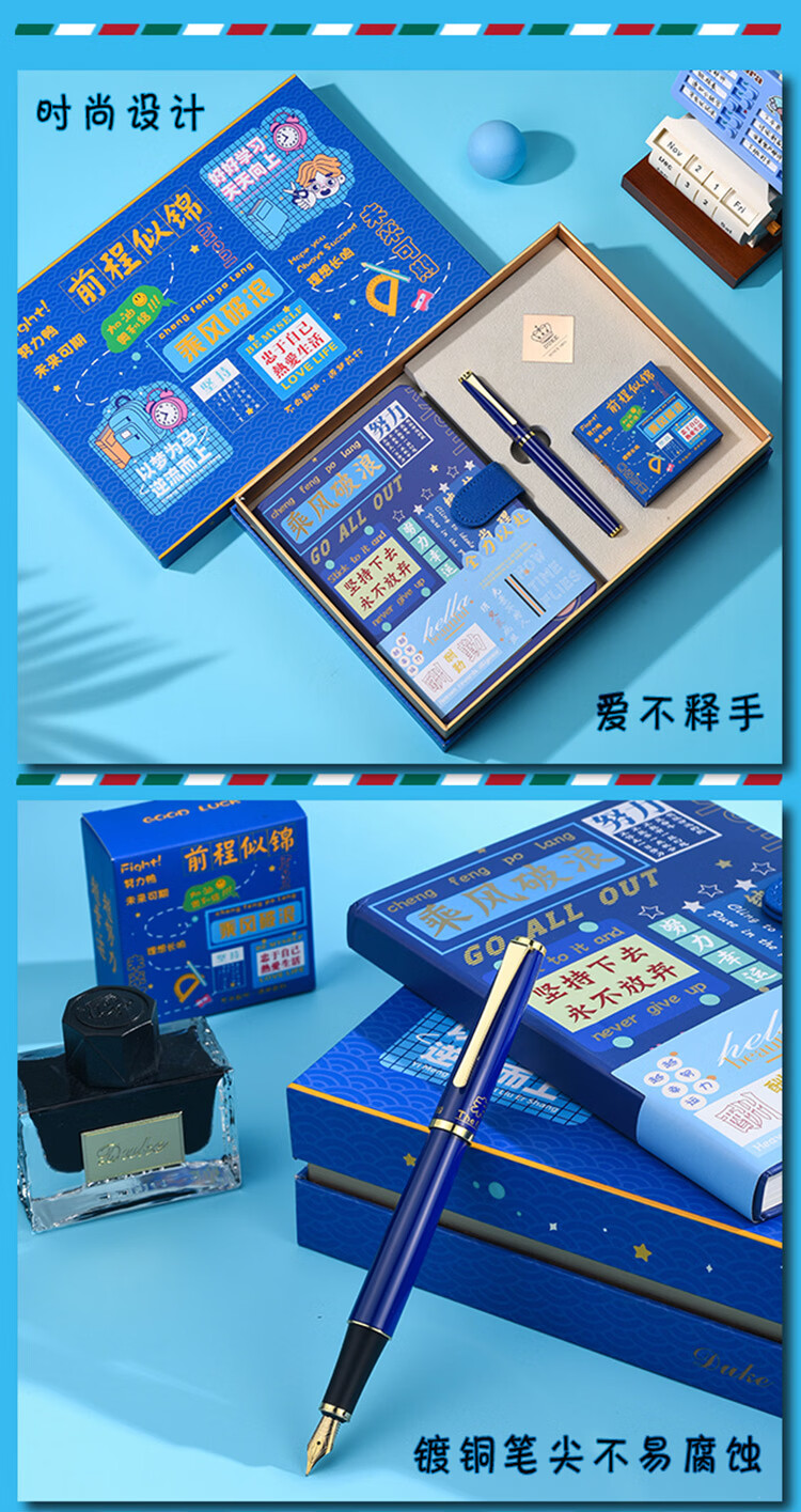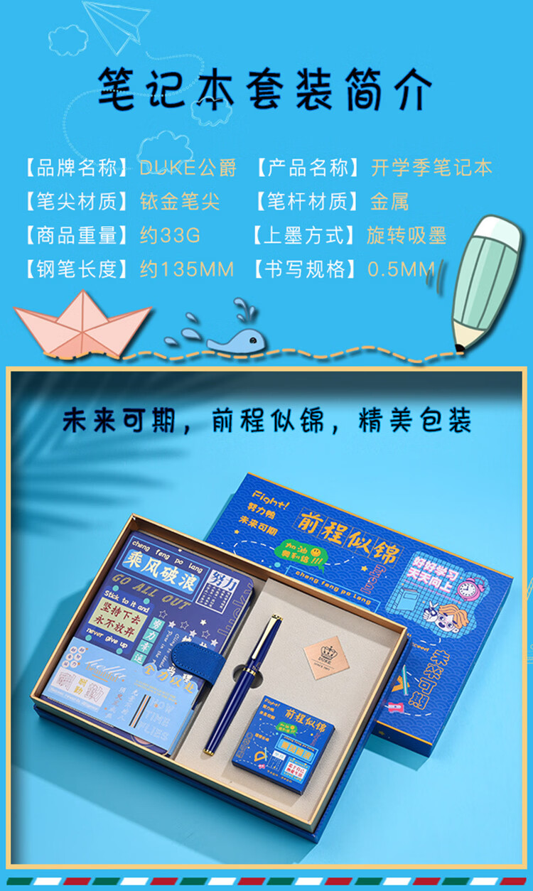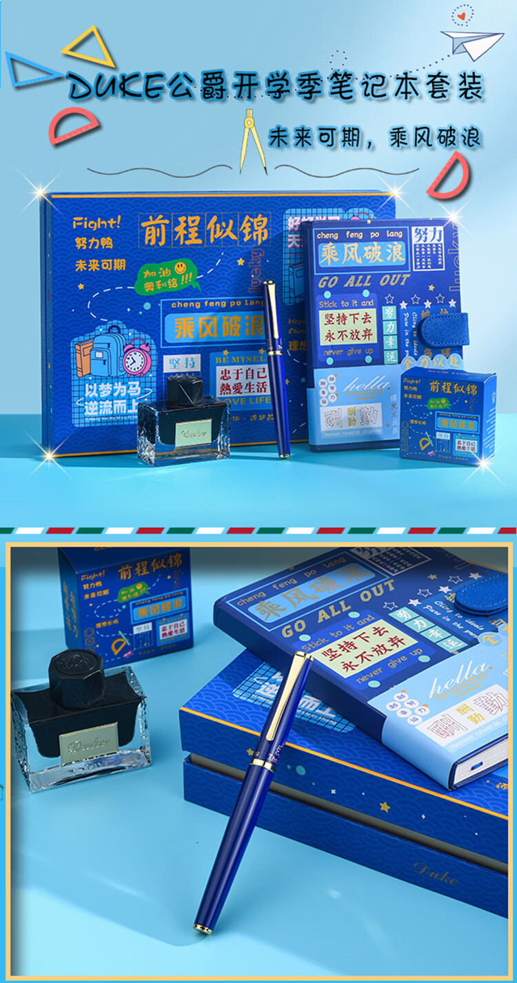 DUKE公爵D281#未来可期笔记本套装好6新颖气氛款铱金笔钢笔墨水笔自用书写送人自用书写顺滑礼物优选 D281#未来可期(蓝色)