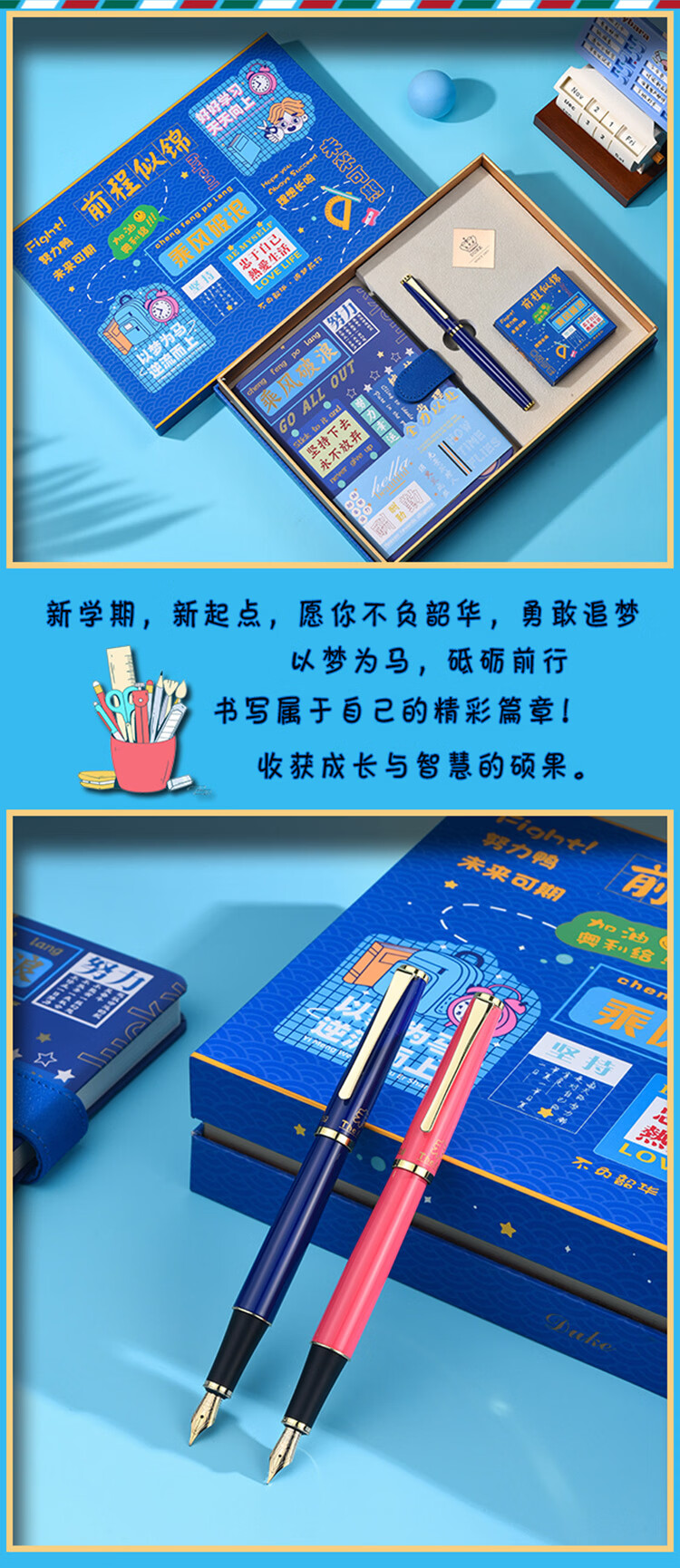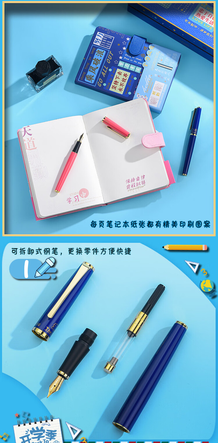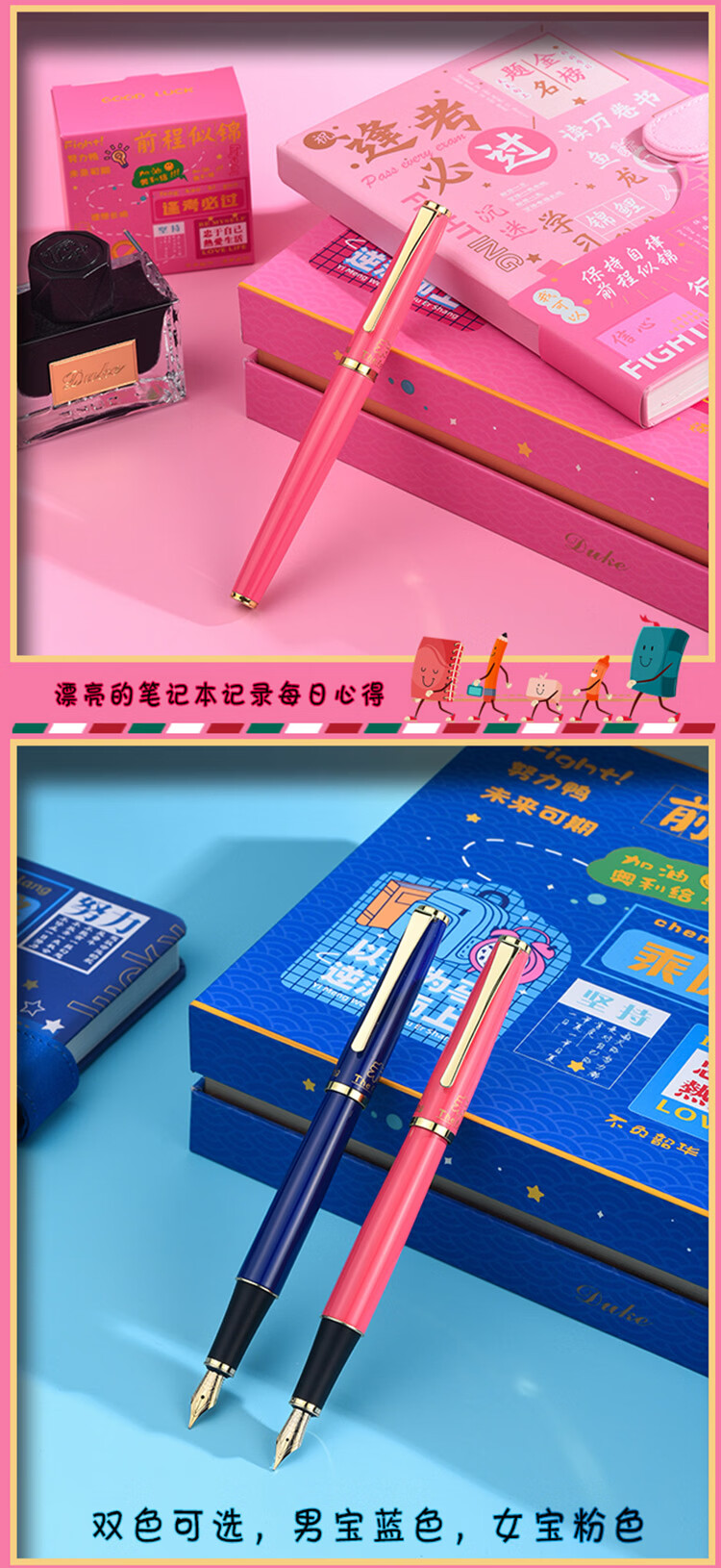 DUKE公爵D281#未来可期笔记本套装好6新颖气氛款铱金笔钢笔墨水笔自用书写送人自用书写顺滑礼物优选 D281#未来可期(蓝色)