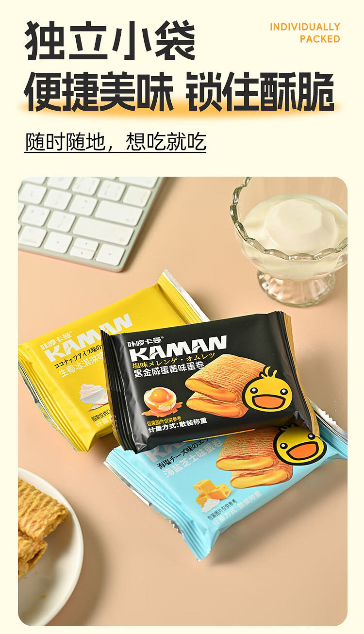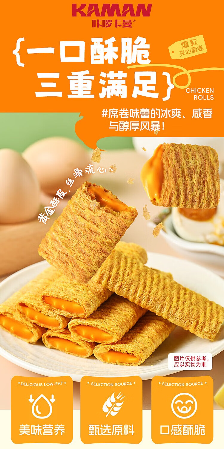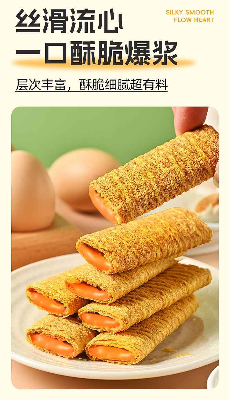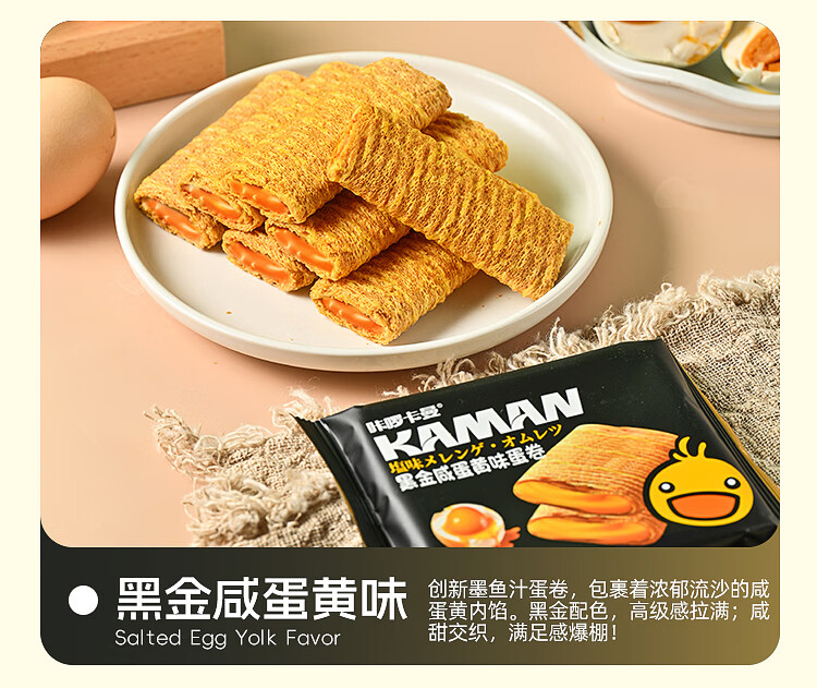 咔啰卡曼流心蛋酥咸蛋黄味芝士味夹心蛋卷饼干注心糕点零食点心办公室零食 【500g】海盐芝士味250g+生椰冰淇淋味250g