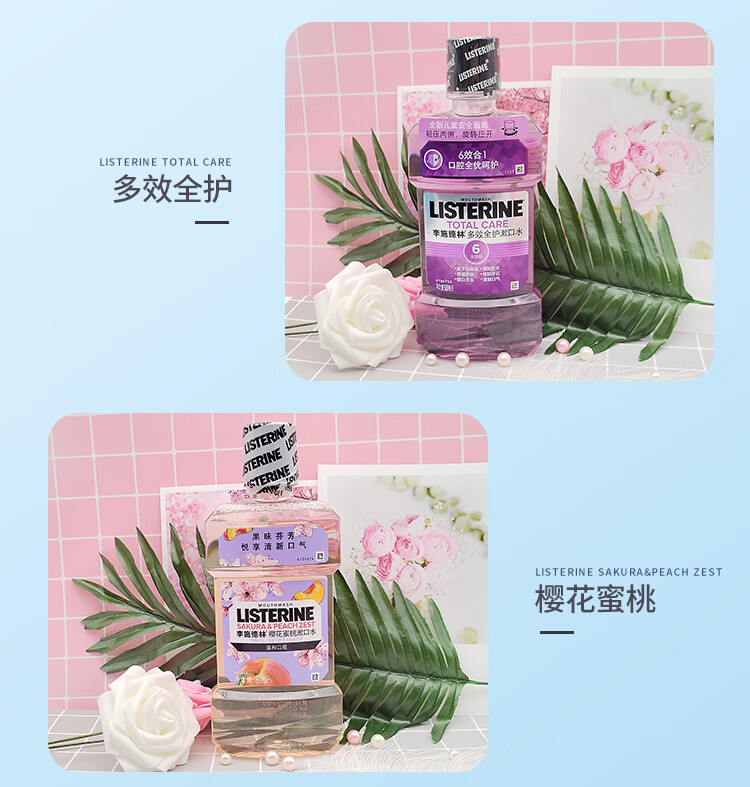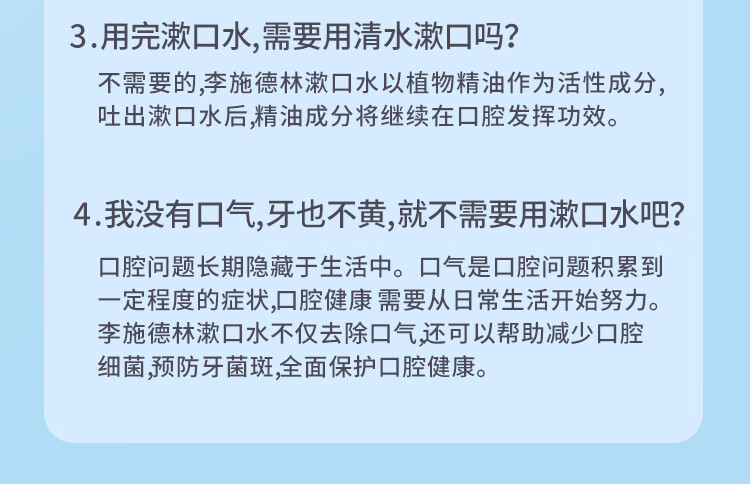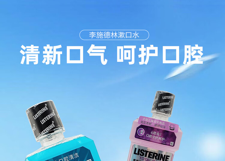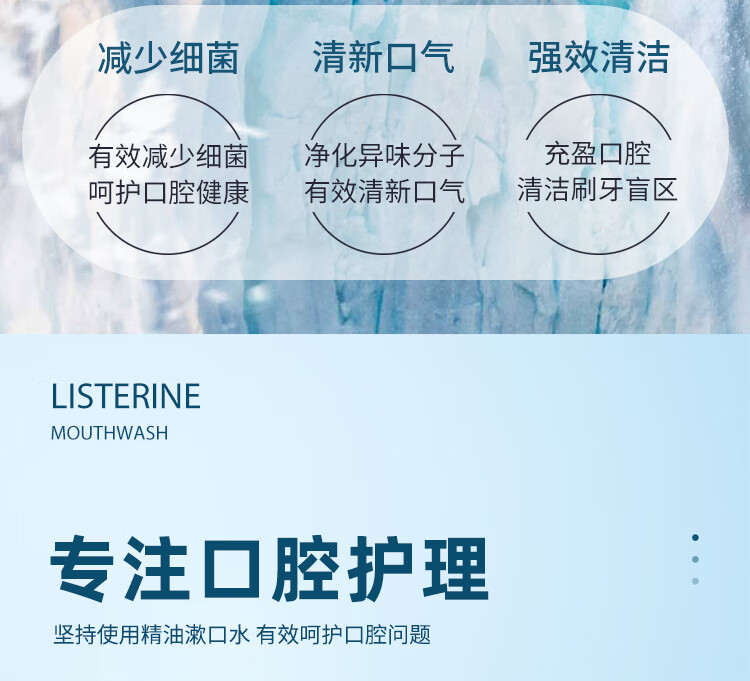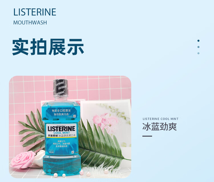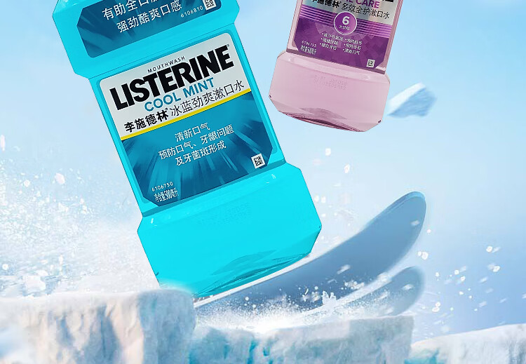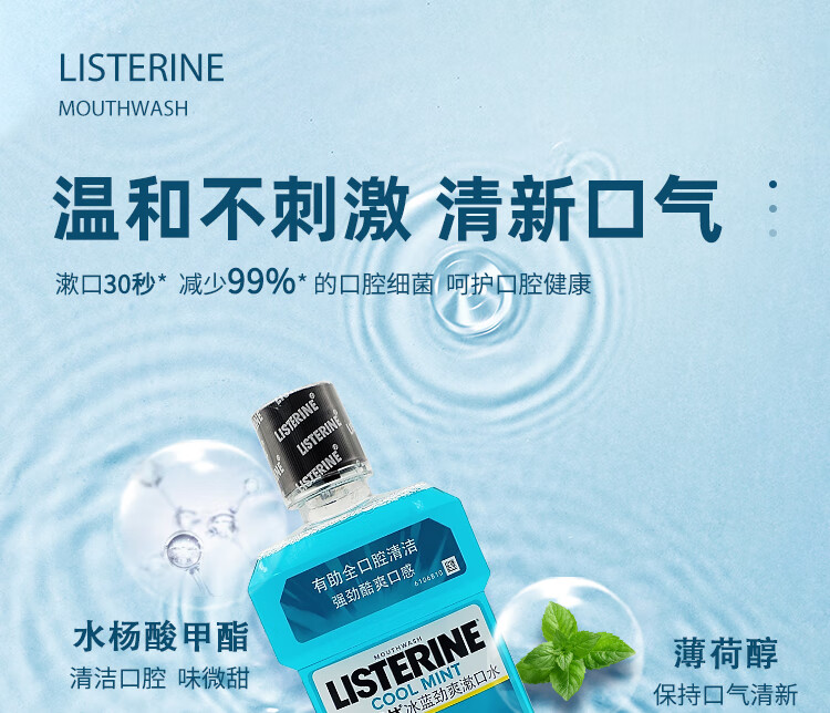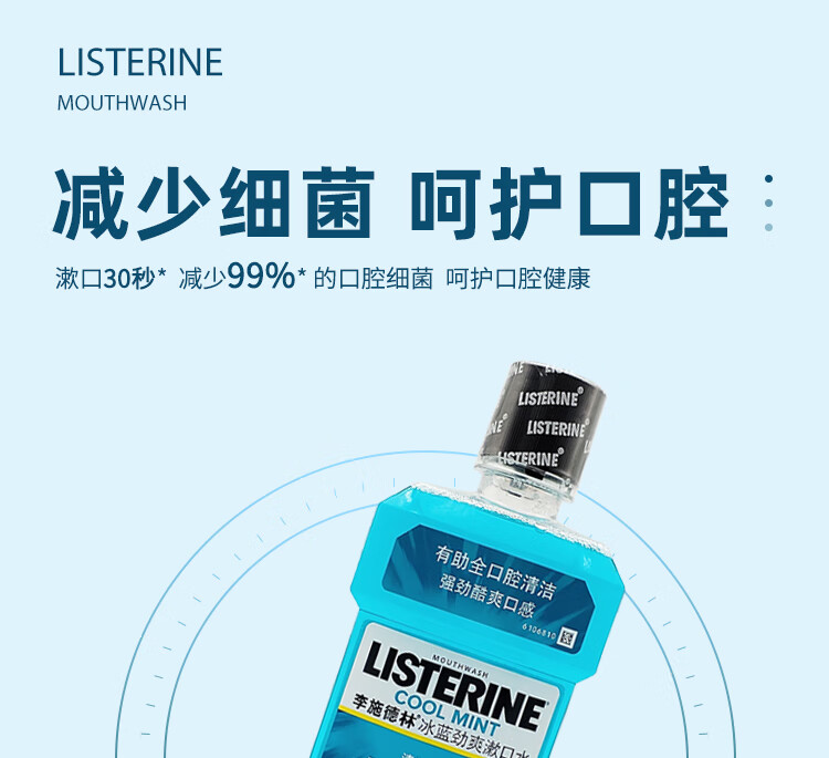 李施德林冰蓝零度漱口水成人防蛀牙减少口臭清新口气口腔清洁男女士500ml 椰香青柠 无酒精 500ml