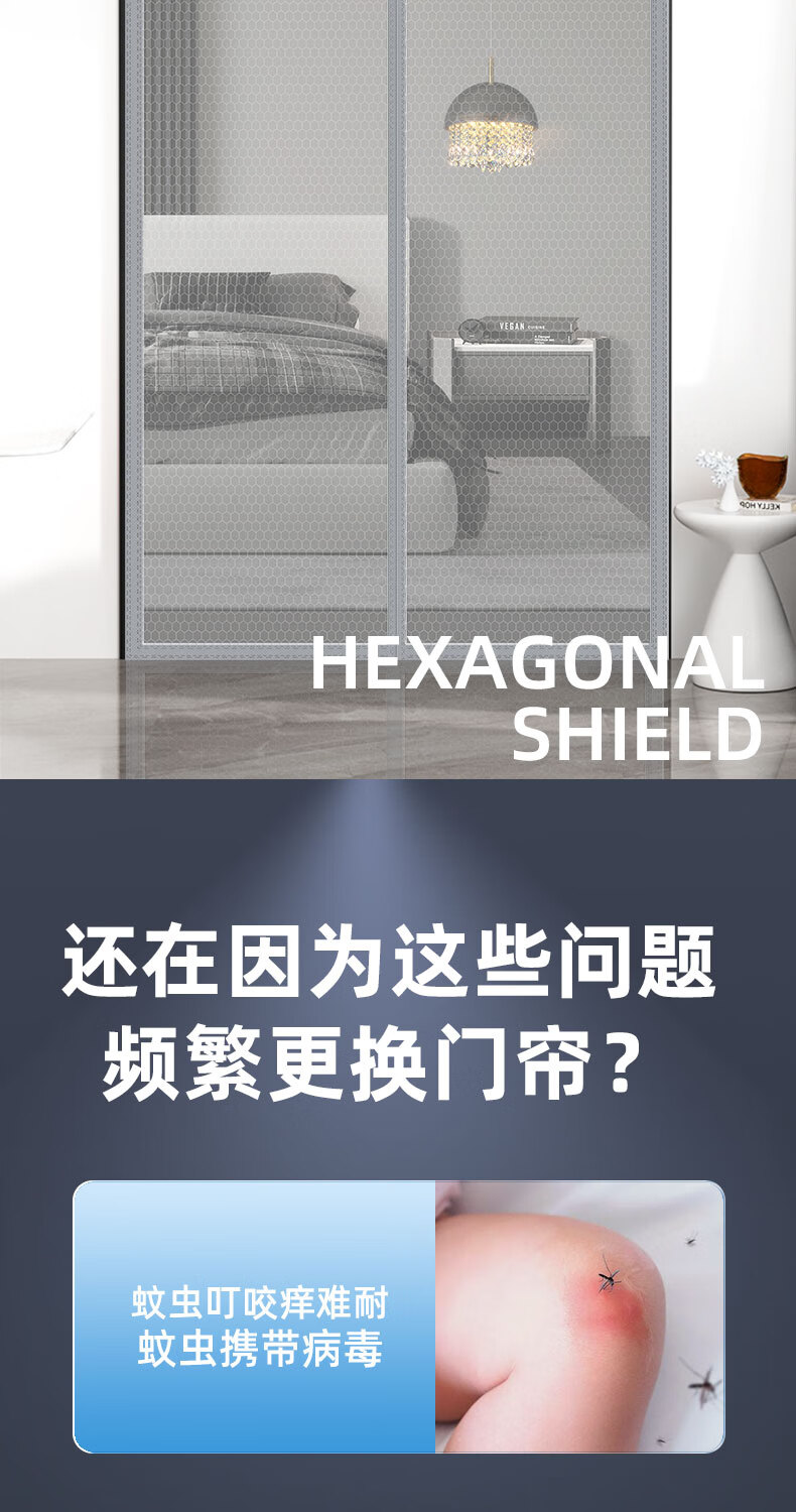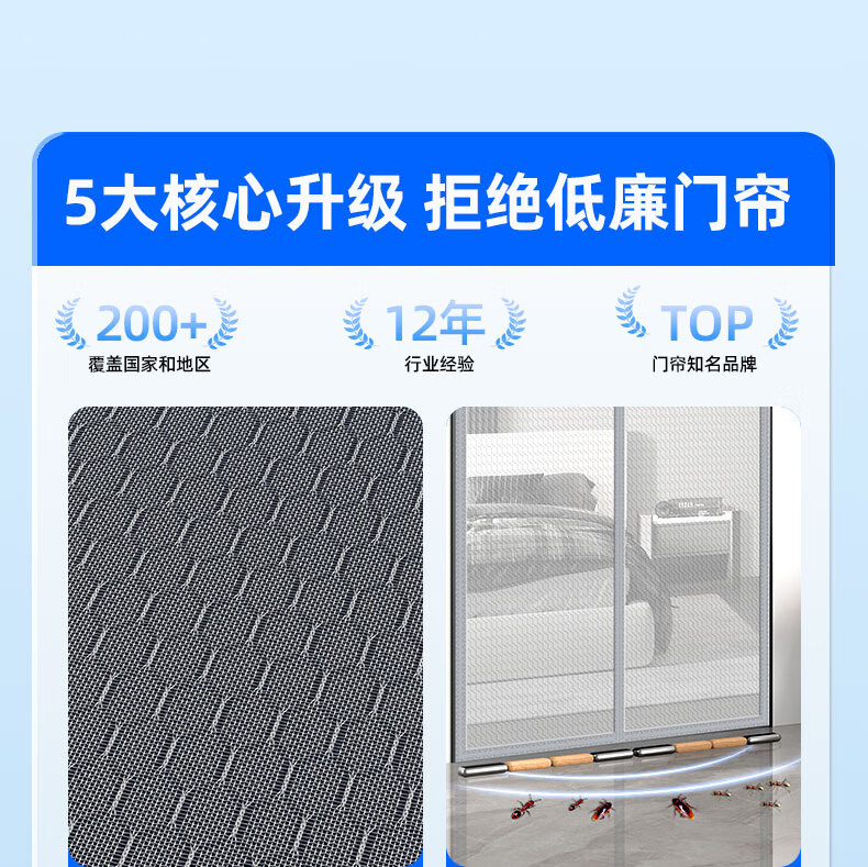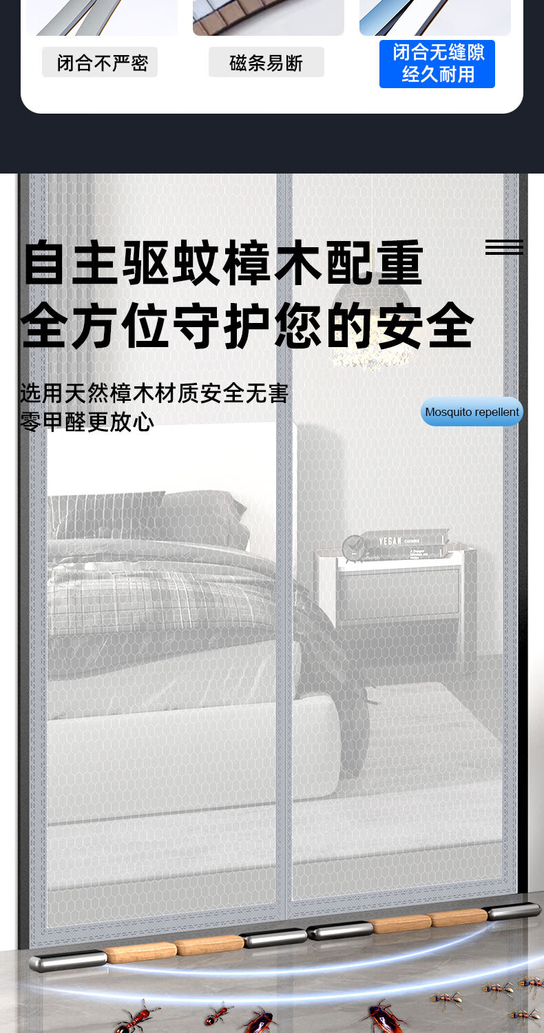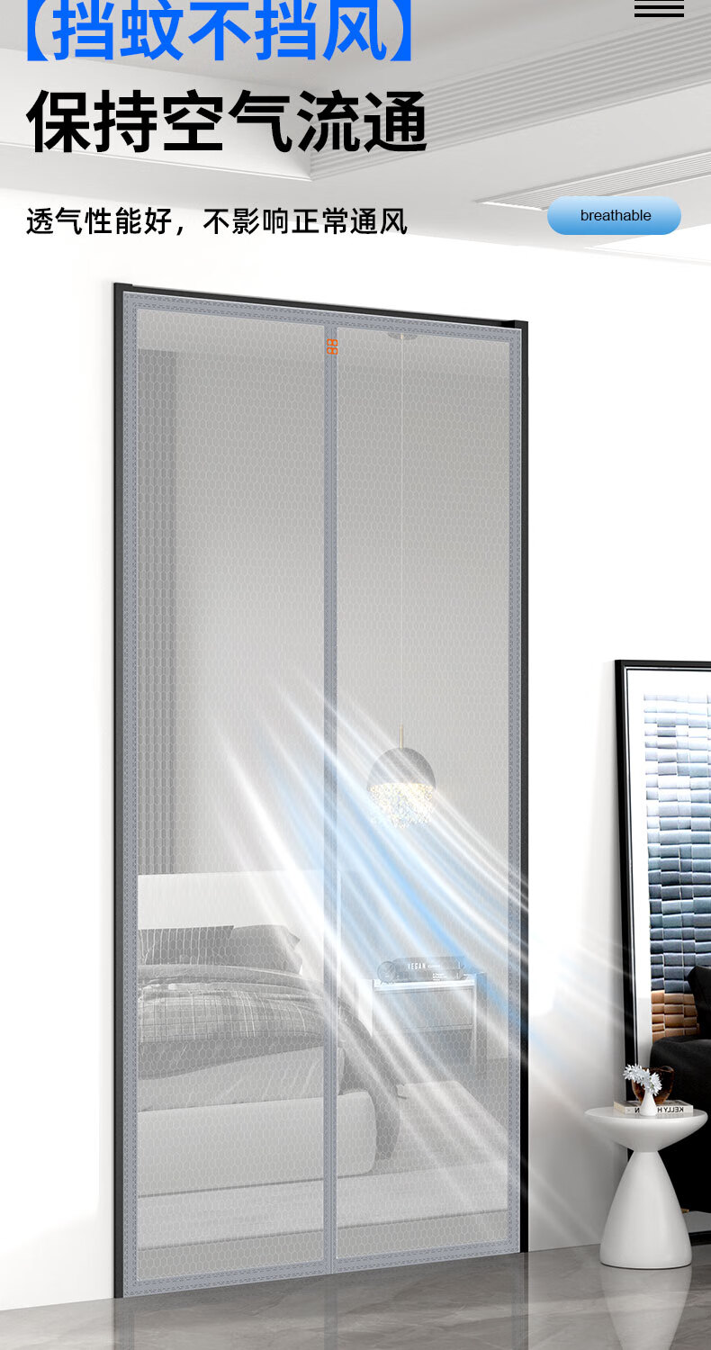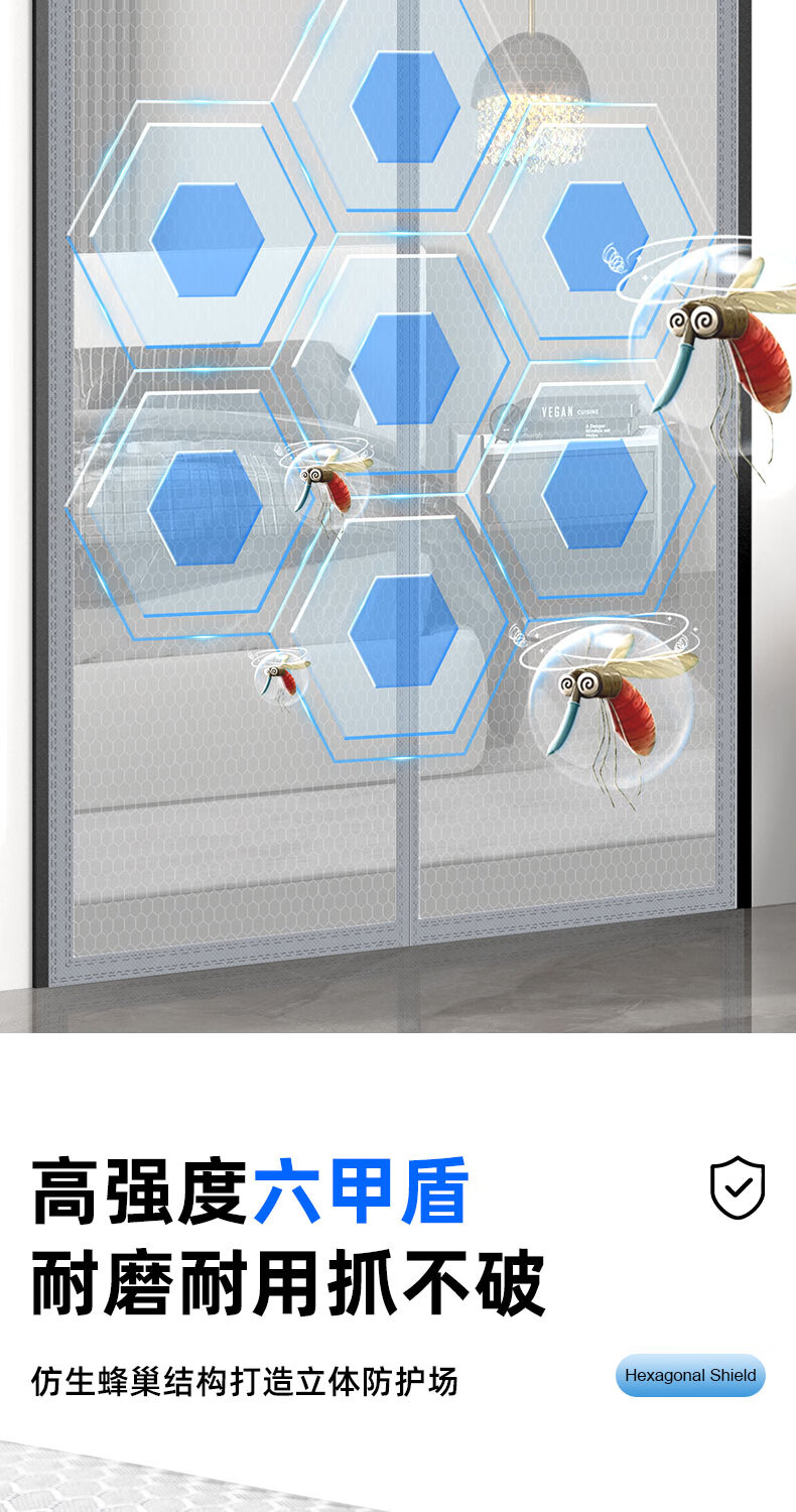 纱屋净防蚊门帘夏季家用大门入户门加密驱蚊门纱免打孔磁吸全磁条六甲盾 灰色中开 90cm*195cm 免打孔 【宽*长】