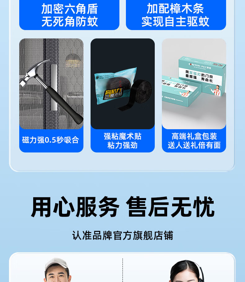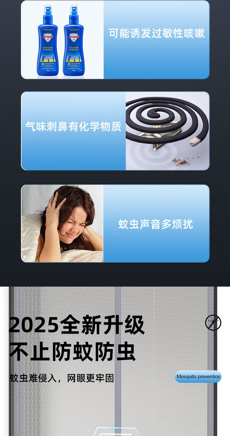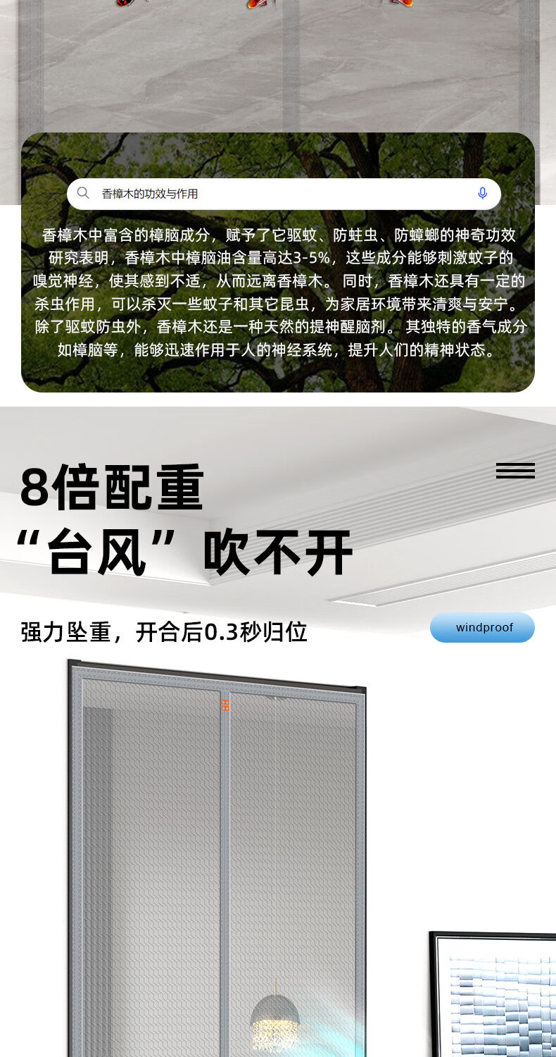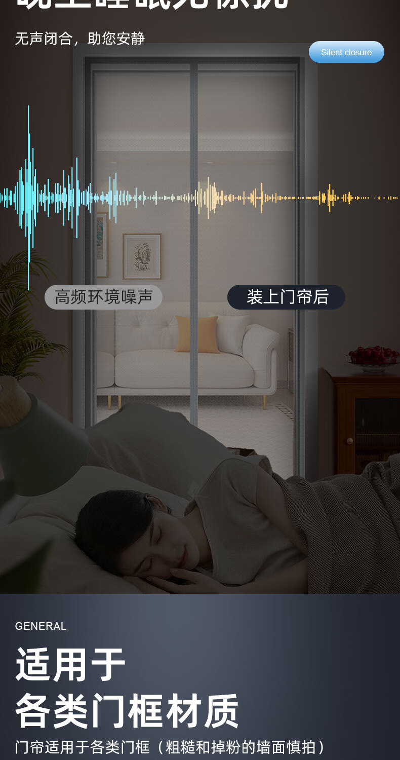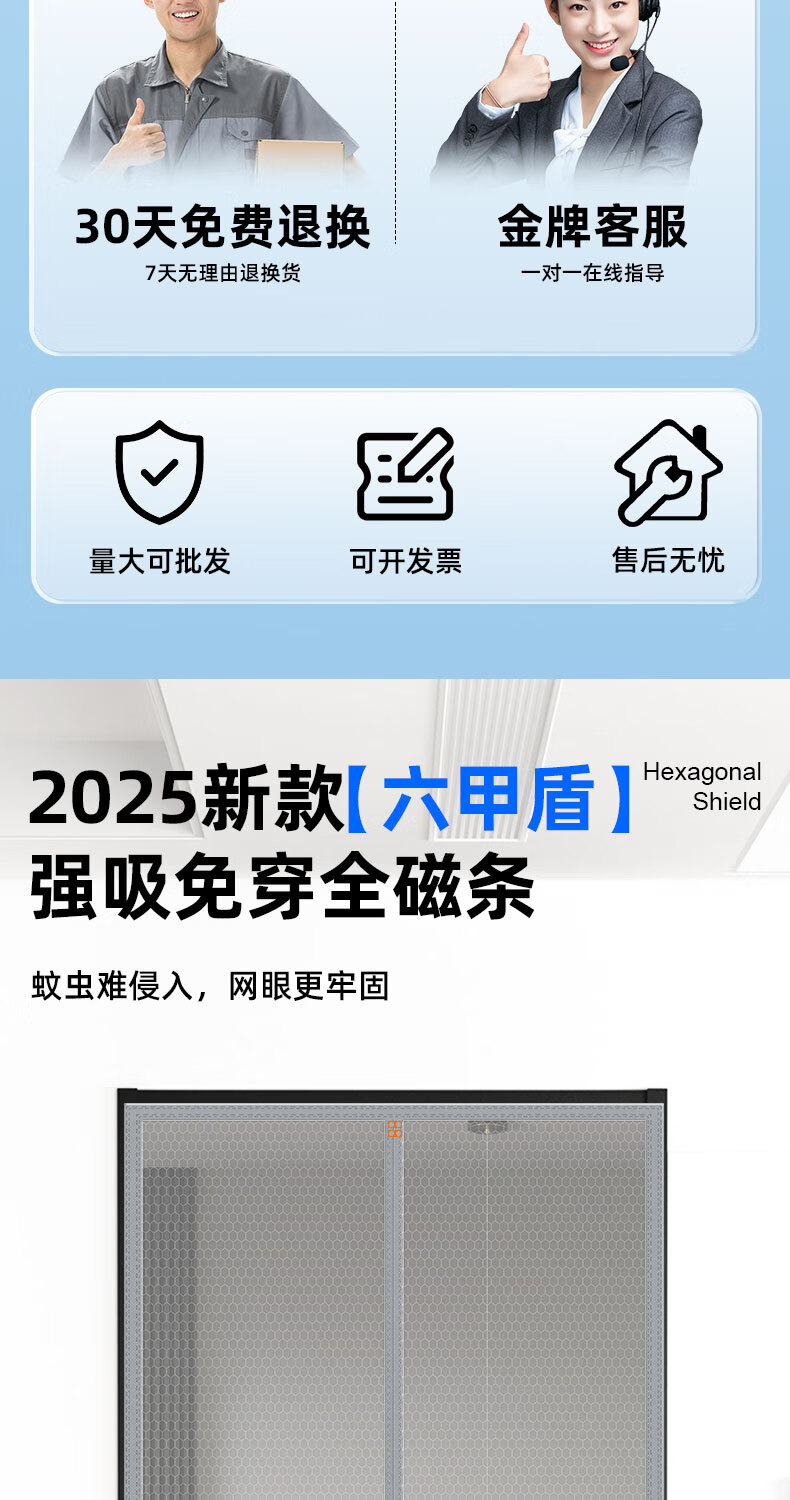 纱屋净防蚊门帘夏季家用大门入户门加密驱蚊门纱免打孔磁吸全磁条六甲盾 灰色中开 90cm*195cm 免打孔 【宽*长】
