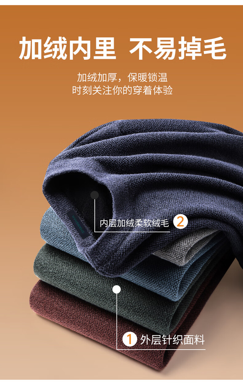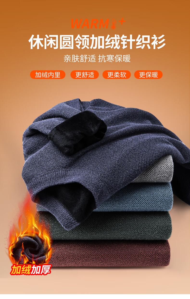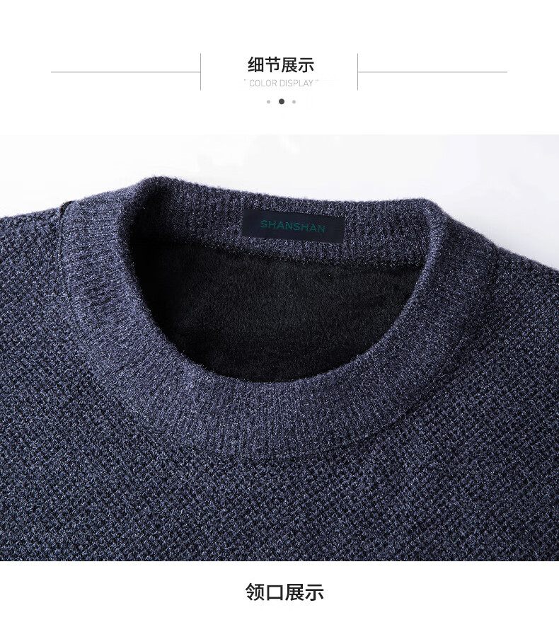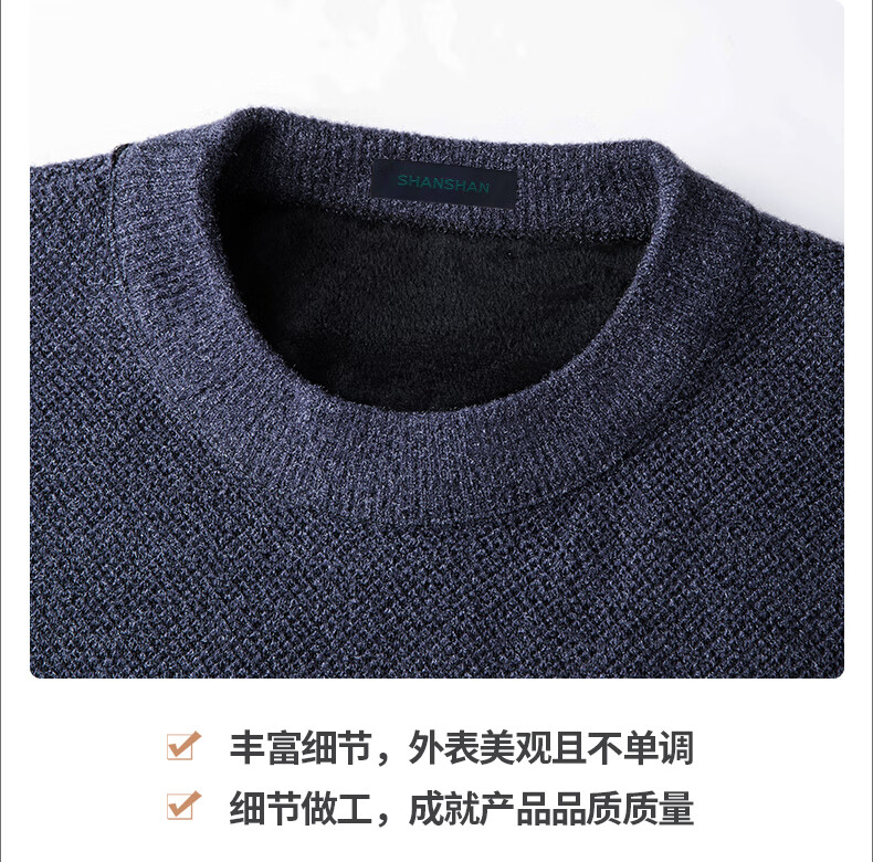 SHANSHAN杉杉针织衫男冬季新款加绒加厚圆领男士毛衣商务休闲中青年爸爸装 藏青色 2XL