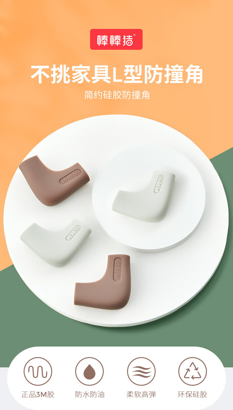 棒棒猪(BabyBBZ)儿童桌角防撞角宝宝防碰防护角桌子茶几包桌角保护套 硅胶防撞角 咖啡色/4个装