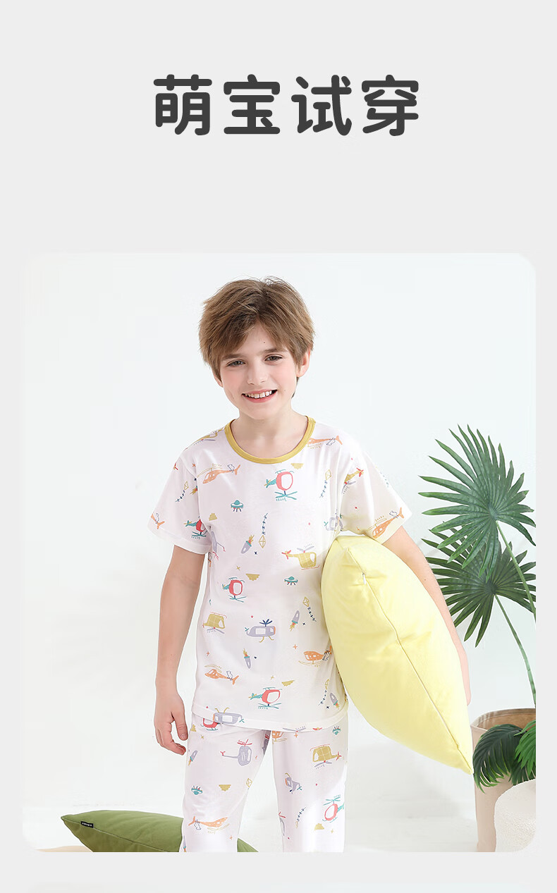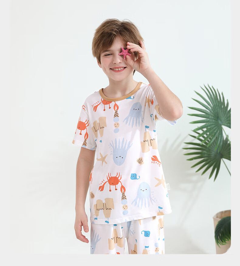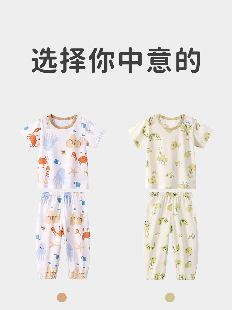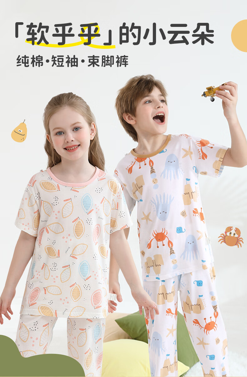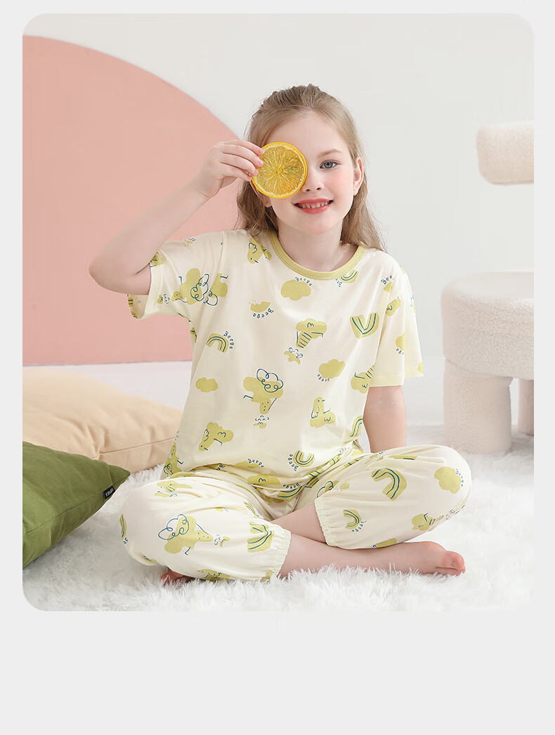 小狗比格儿童睡衣纯棉空调服套装短袖长裤家居服春夏全棉舒适薄款 春风得意 120