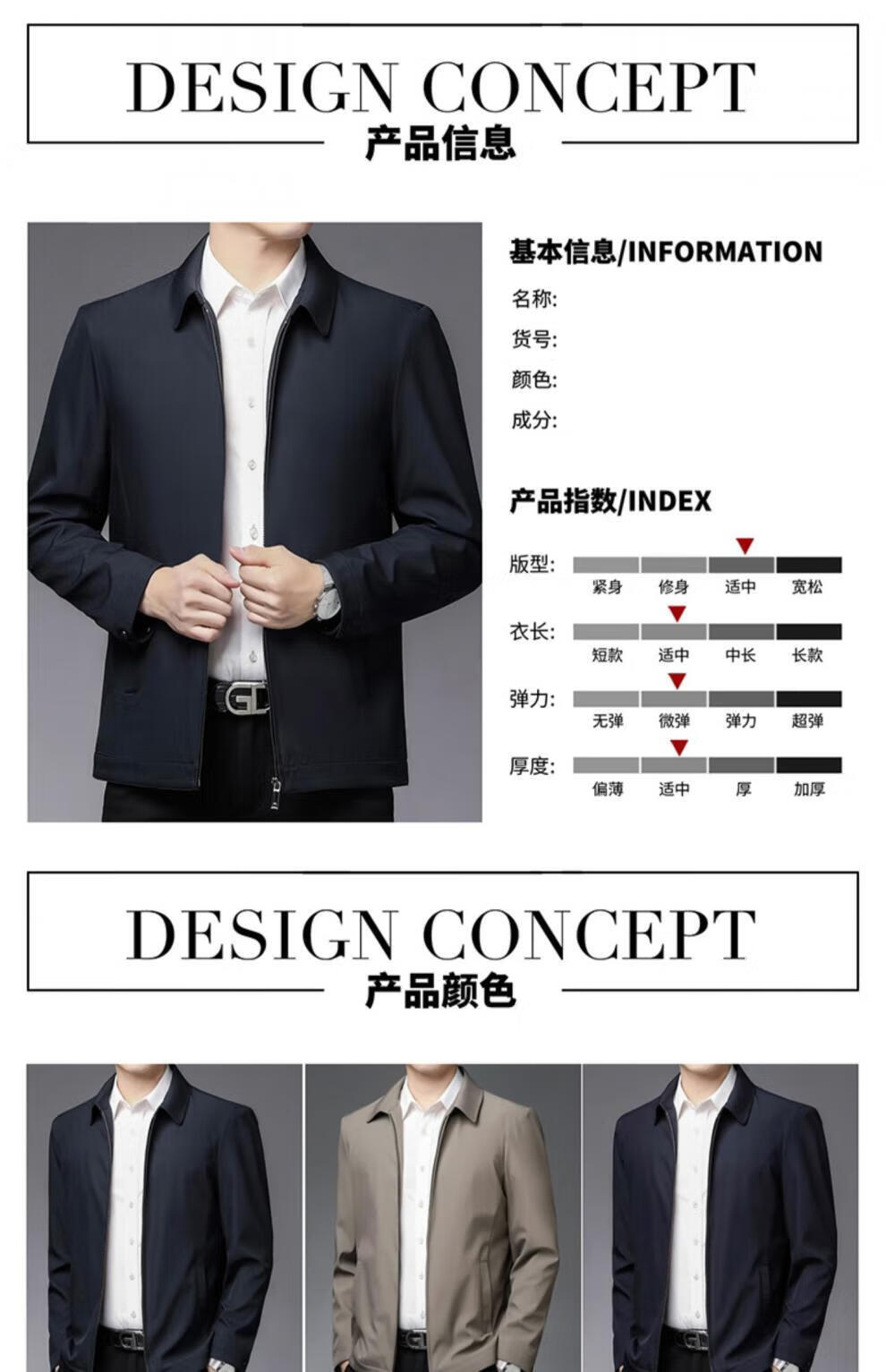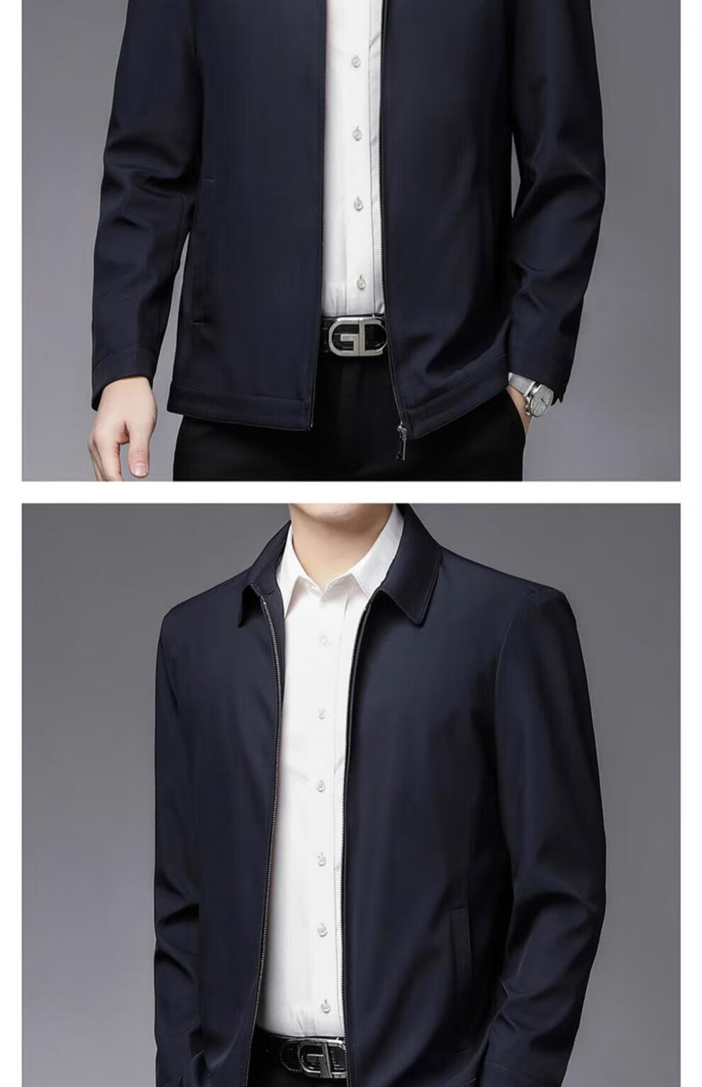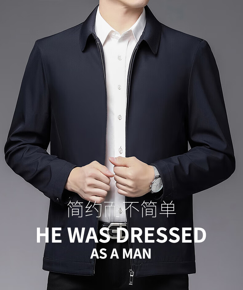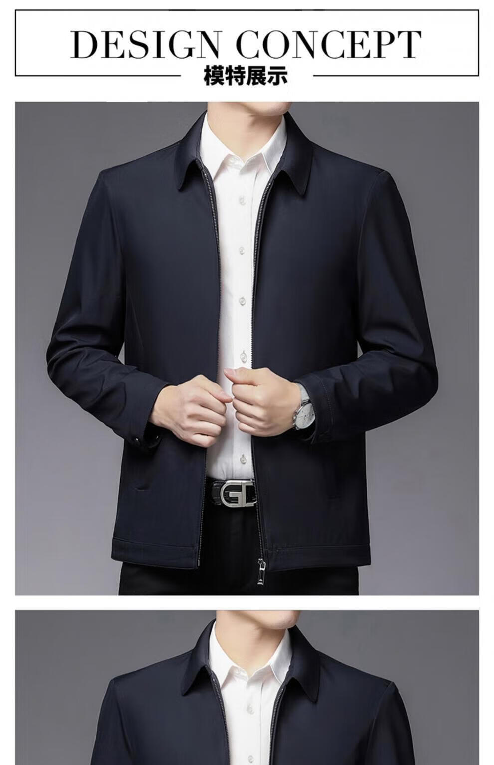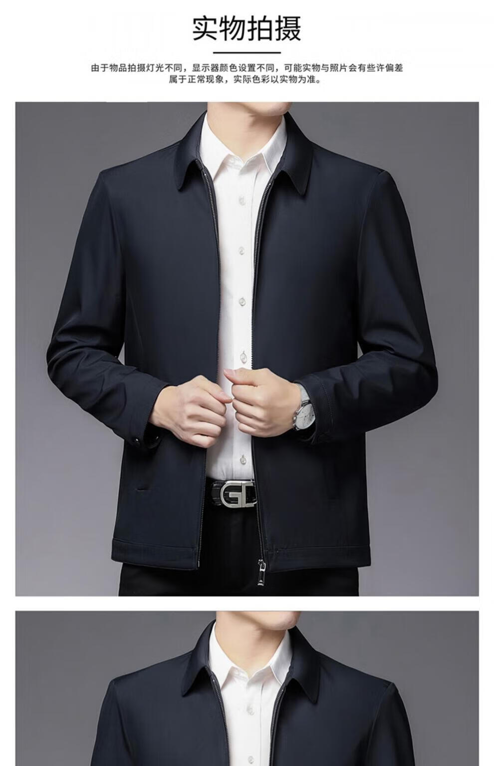KBXNG劲霸春秋商务休闲男士翻领薄款夹克中年爸爸装外套宽松大码公务 上青 3XL 190