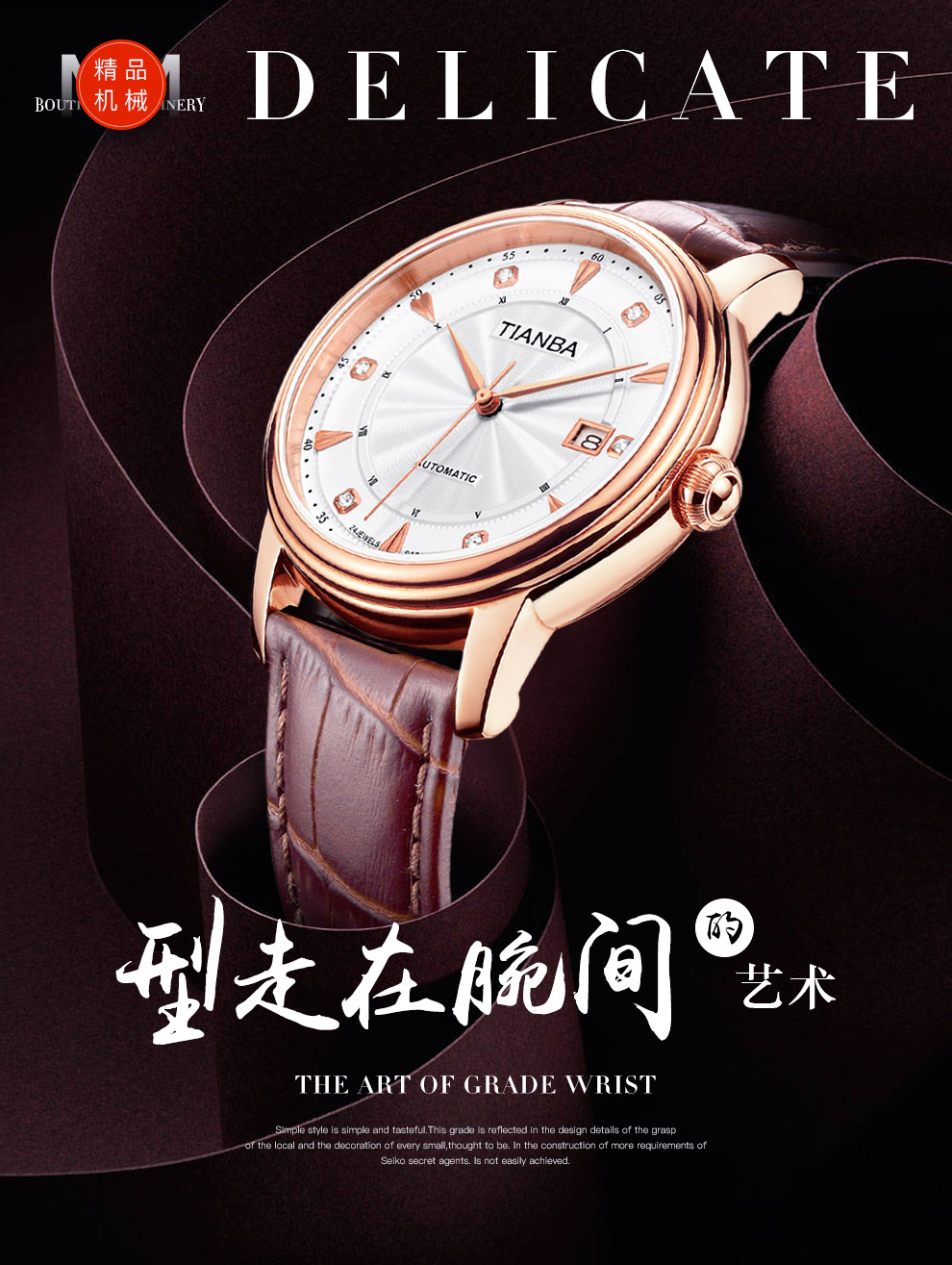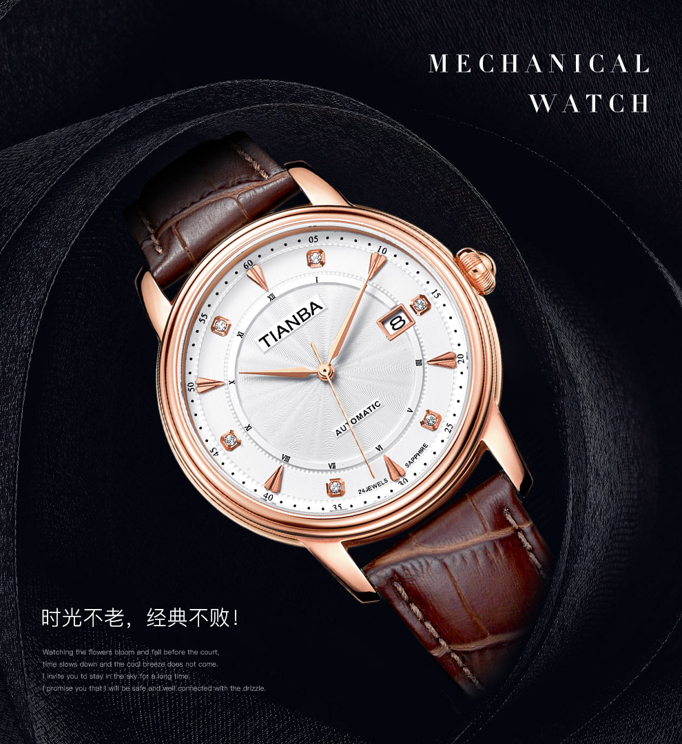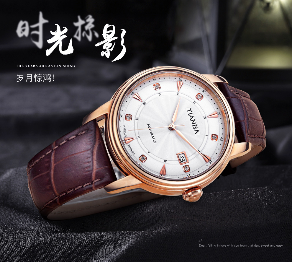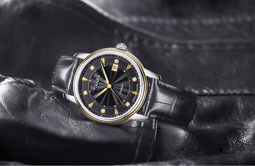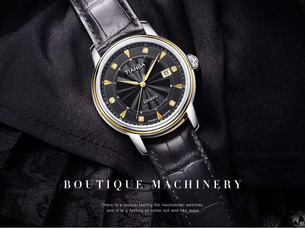 天霸(TIANBA)手表男士时尚休闲腕表真皮表带日历镶钻男表全自动机械男表TM8007 黑色 TM8007.01PK