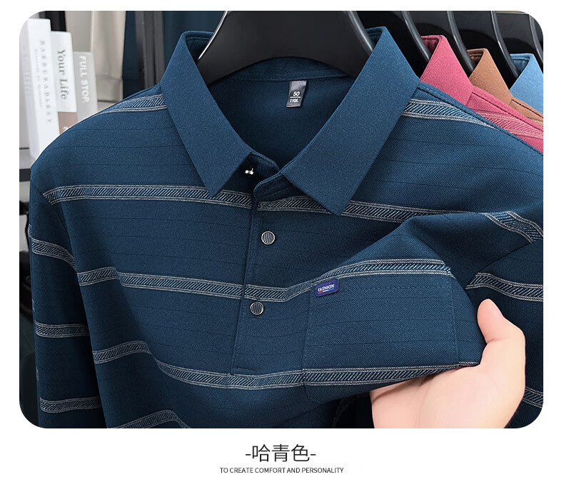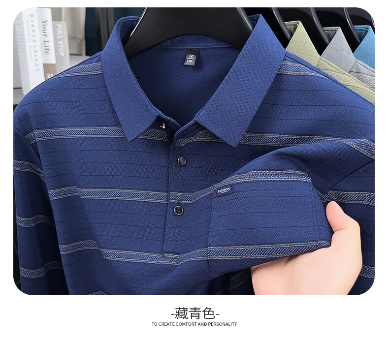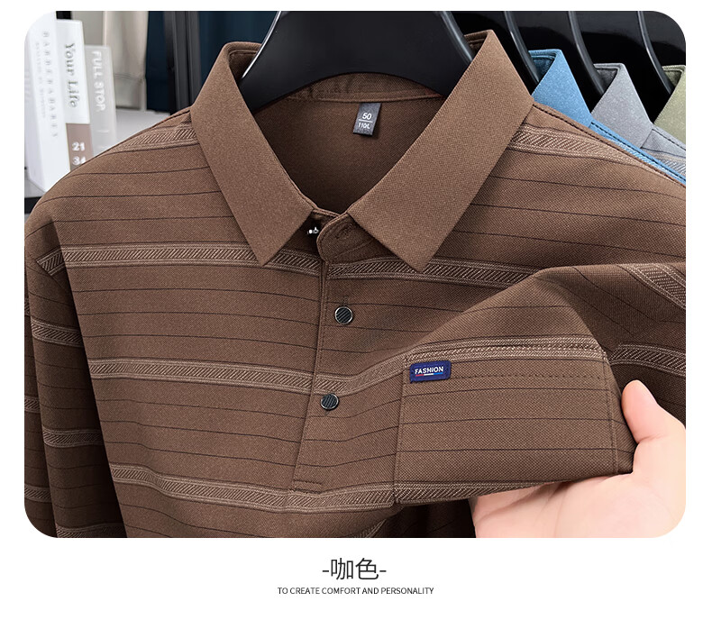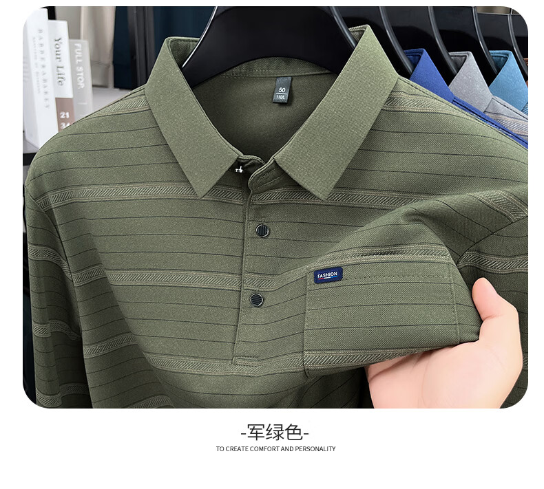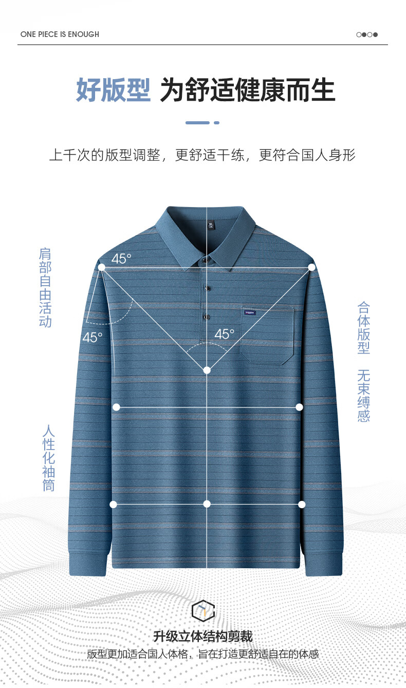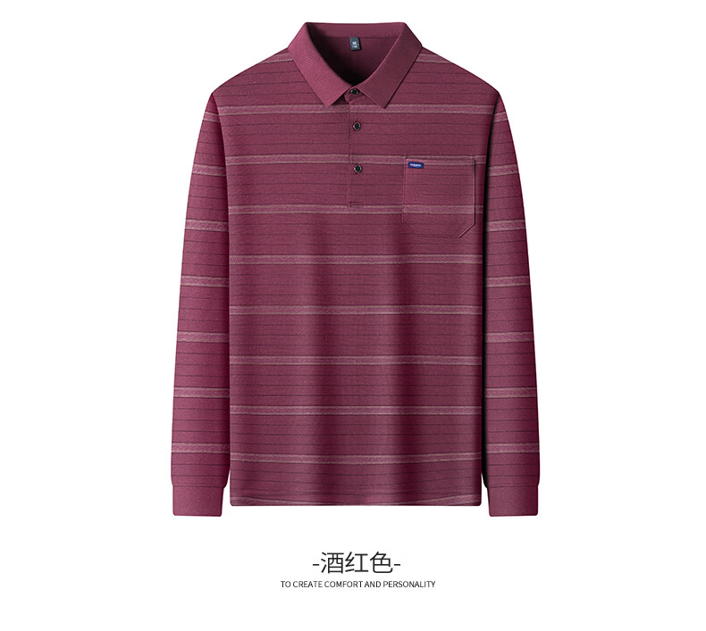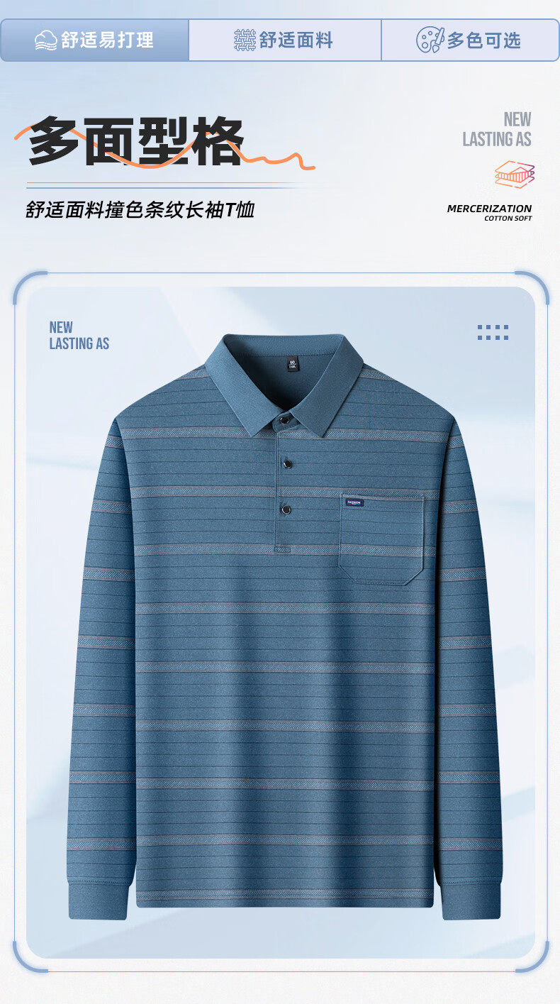 SHANSHAN杉杉长袖T恤男春季新款简约细条纹打底上口袋打底通勤POLO男上衣 灰色 L /175