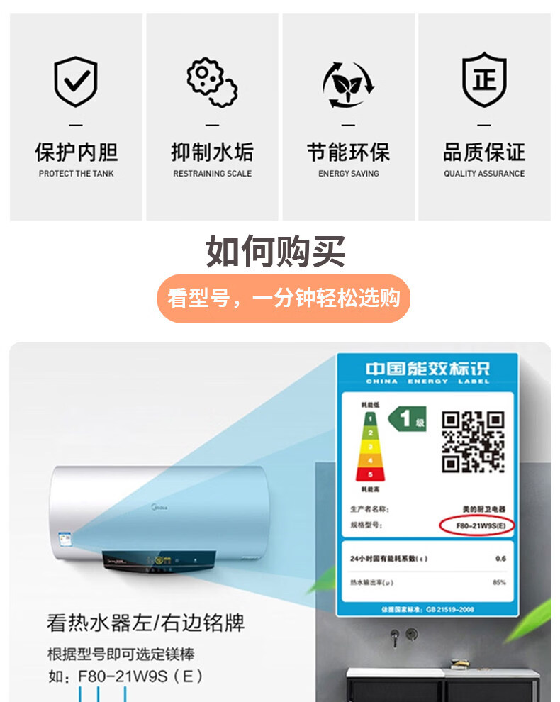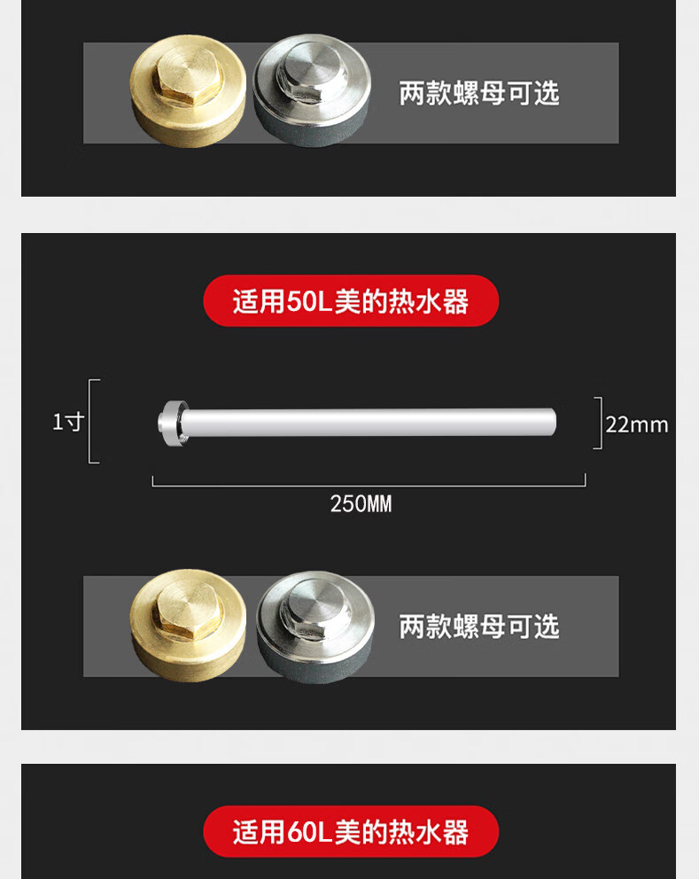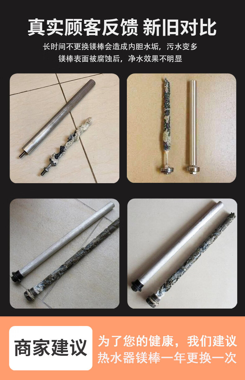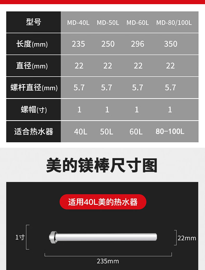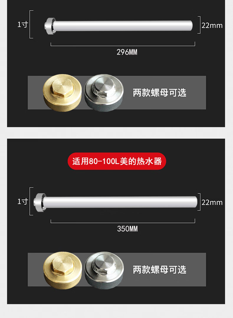 早鱼适配美的电热水器镁棒 40-100L 通用除水垢阳极棒 热水器原装款加热配件 【80L-100L】美的专用镁棒+1寸铜帽螺母
