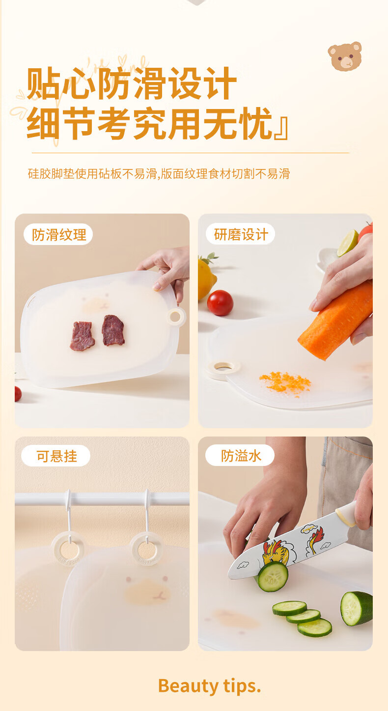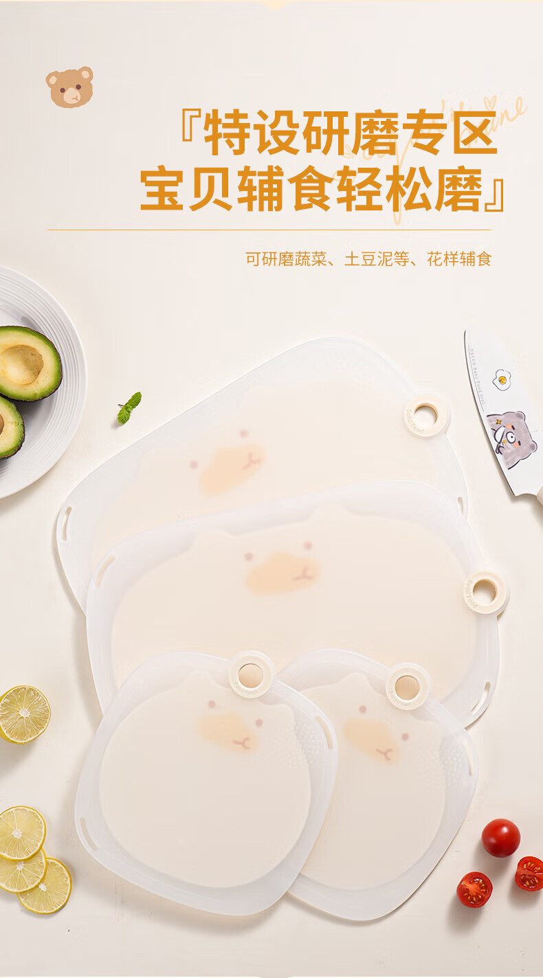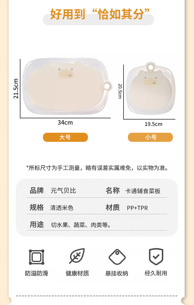 元气贝比(YUANQIBEIBI)菜板婴儿辅食工具砧板家用切菜板水果案板刀板大号小号米色套装
