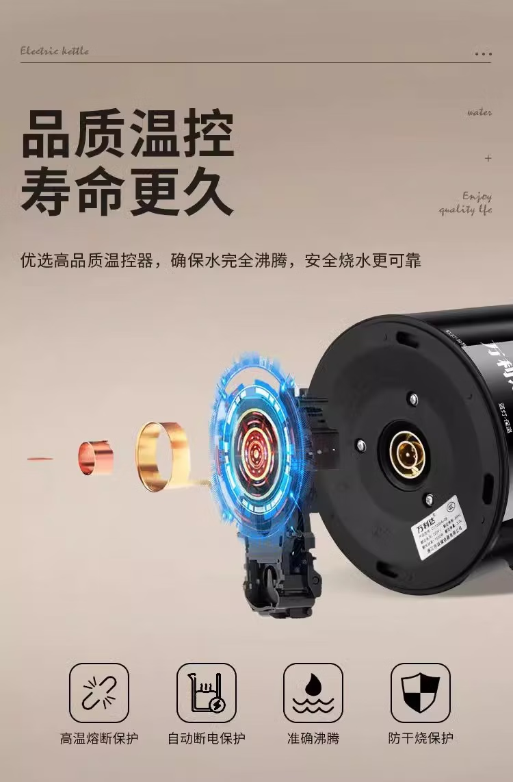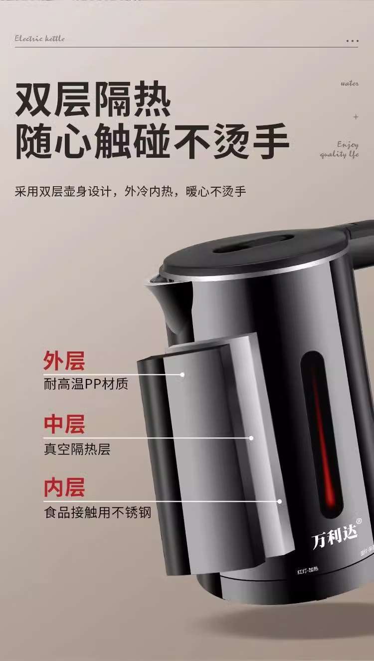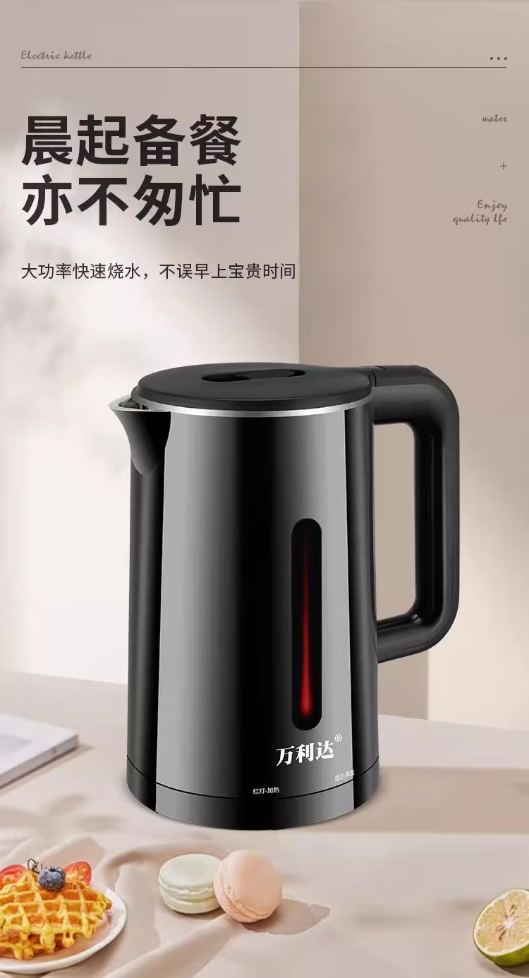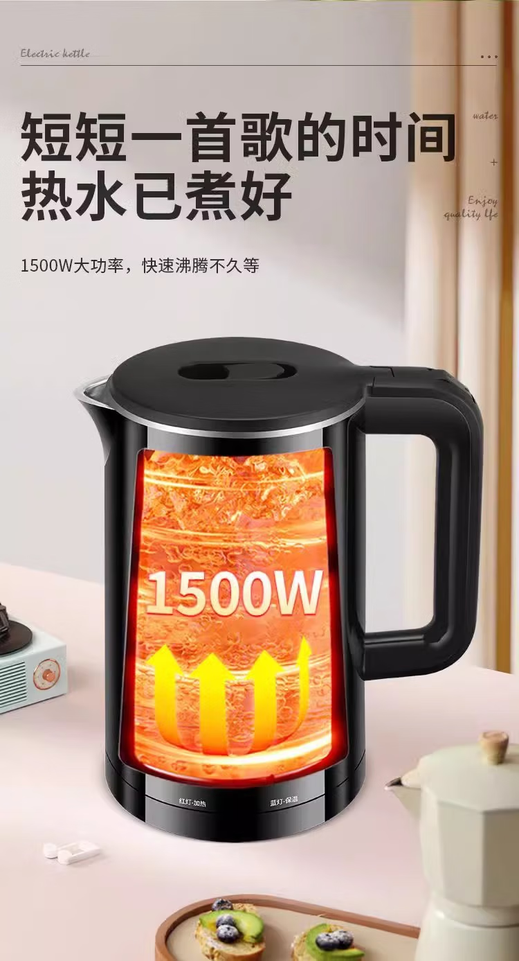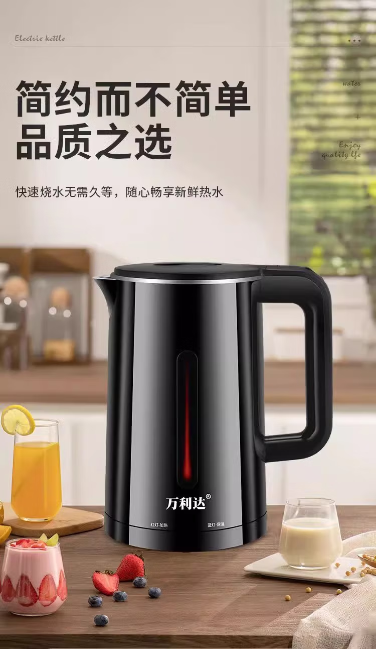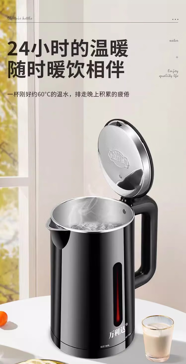 万利达【厂家直发】家用耐用电水壶多功能全智能自动断电一体电热水壶保温恒温烧水壶开水壶 2L 黑色