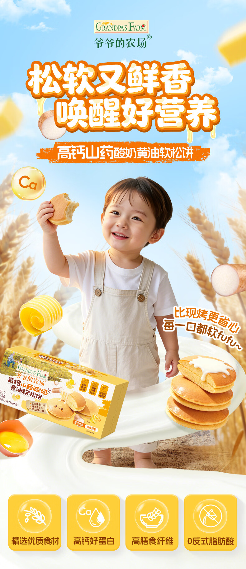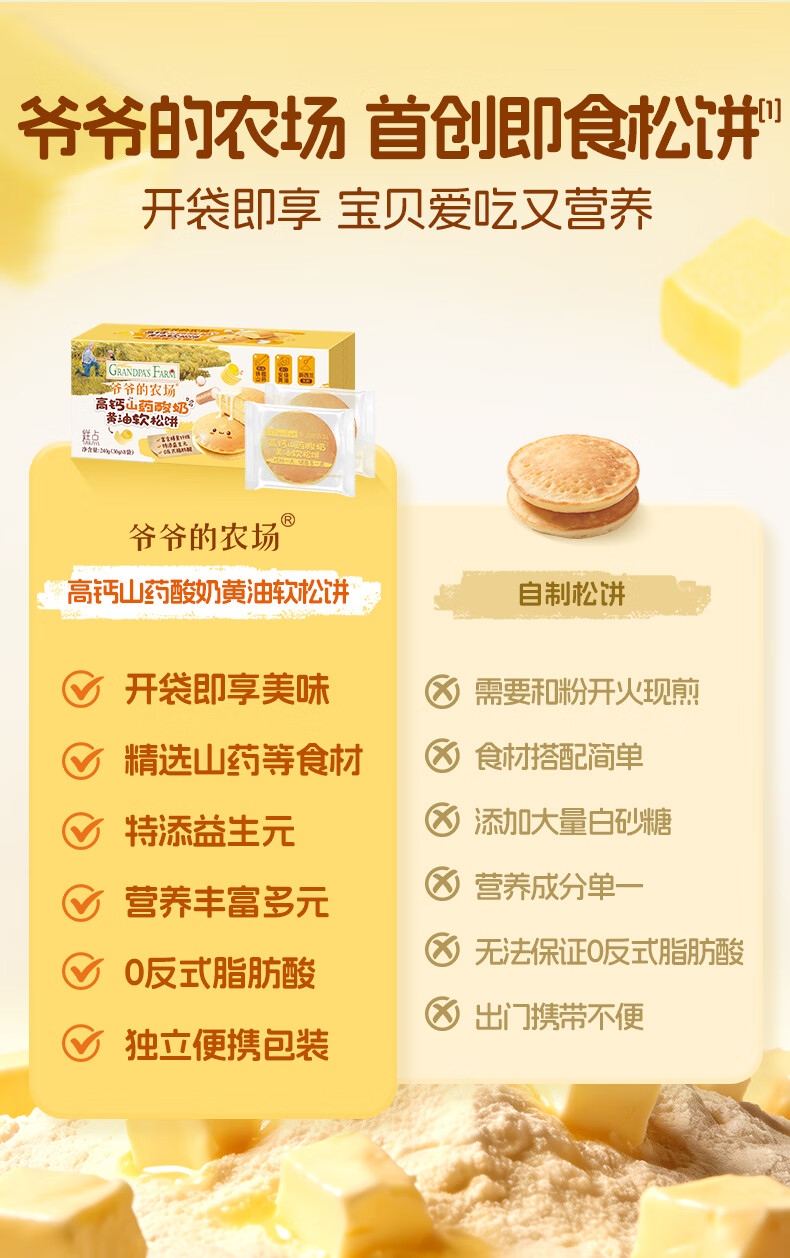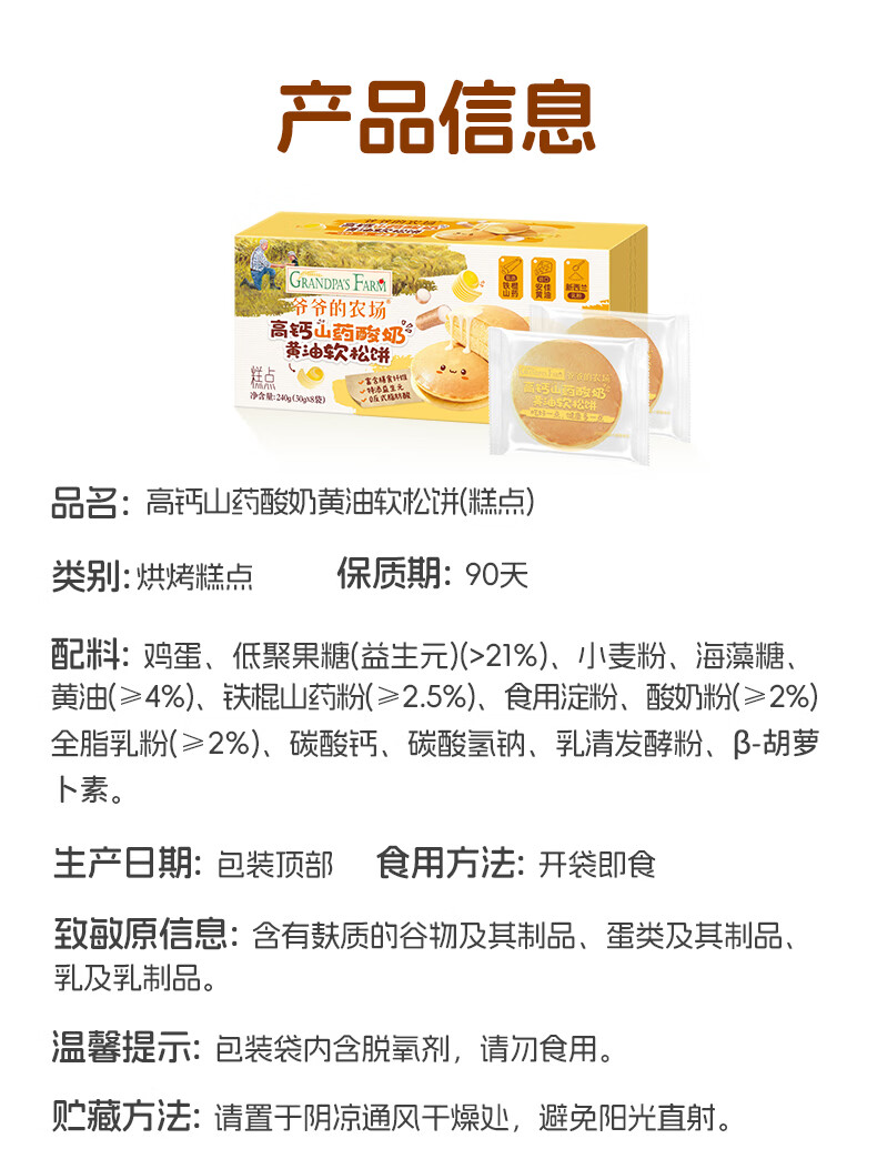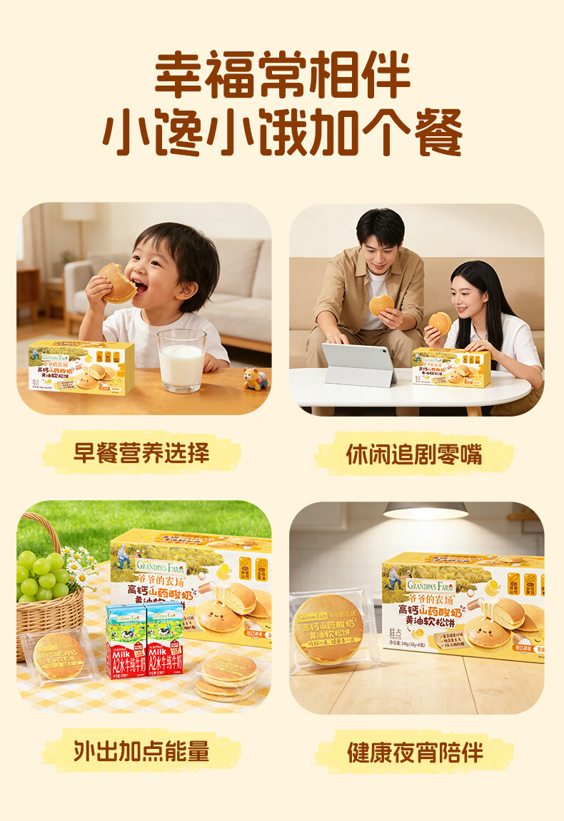 爷爷的农场儿童宝宝早餐松饼面包240g 宝宝零食高钙山药酸奶儿童面包