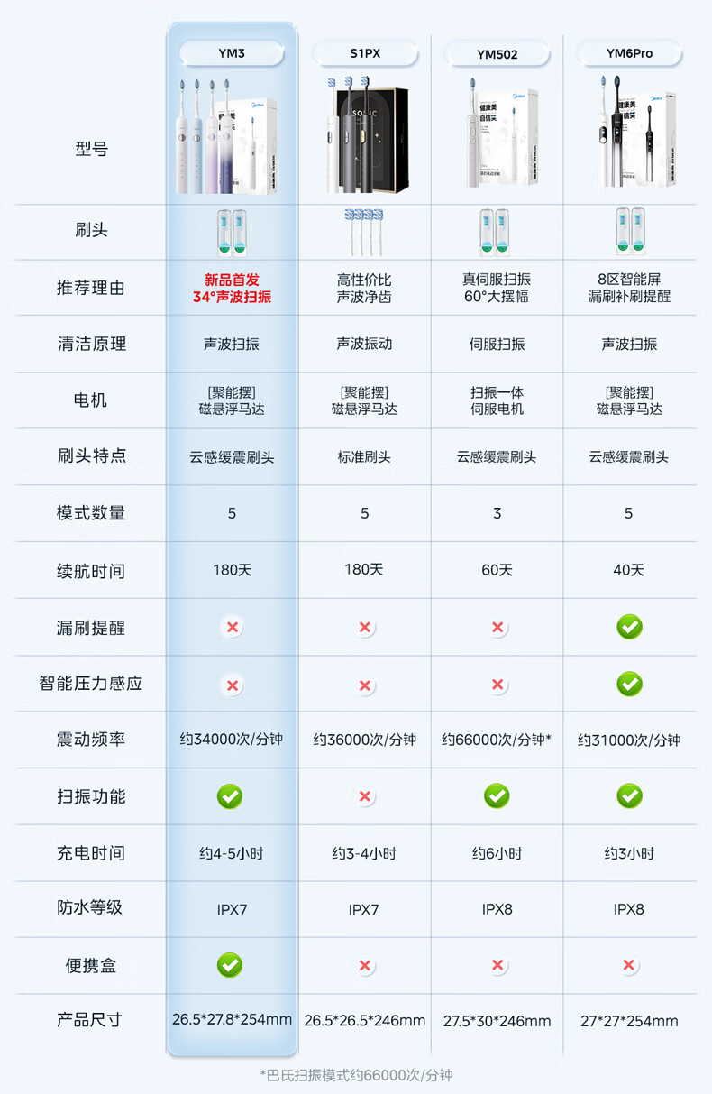 美的(Midea)电动牙刷成人 声波扫振便携 180天长续航 清洁牙齿5种清洁模式YM3海盐蓝便携情侣生日节日礼物推荐