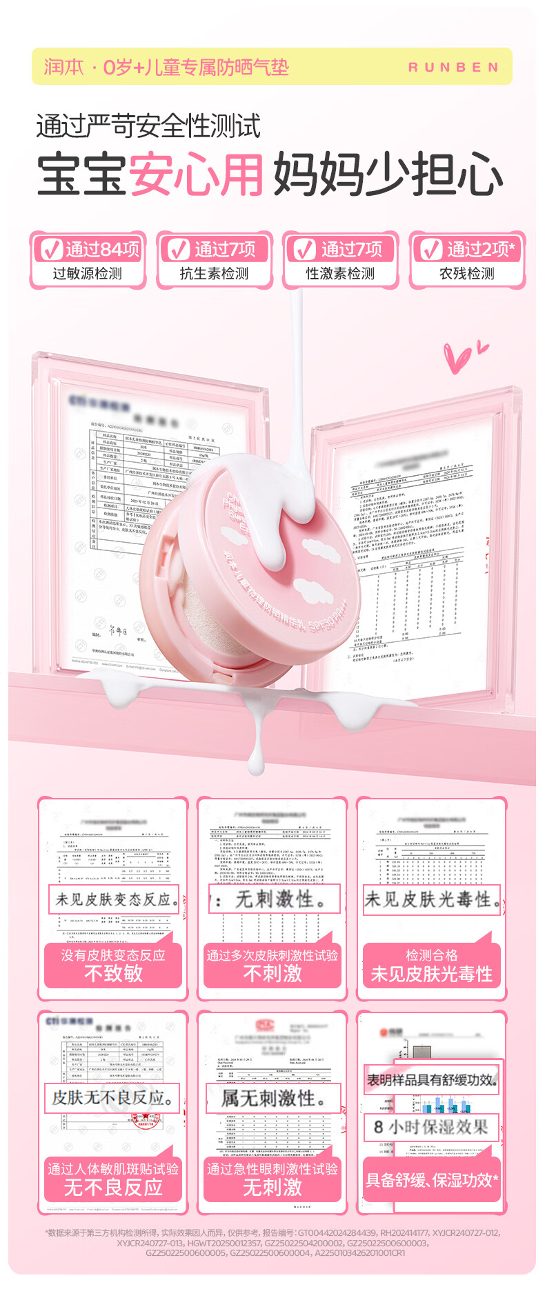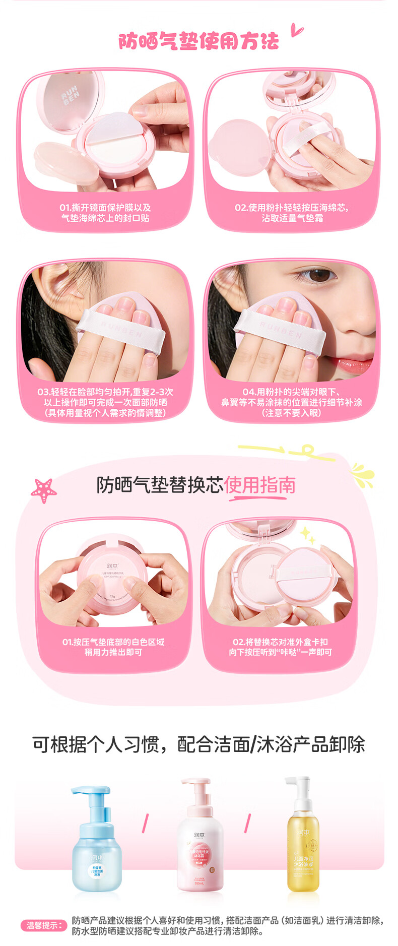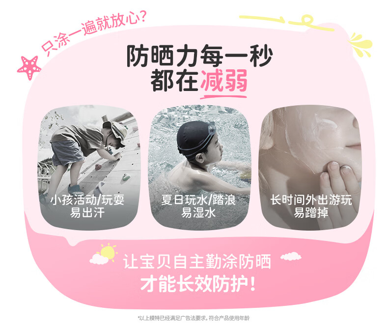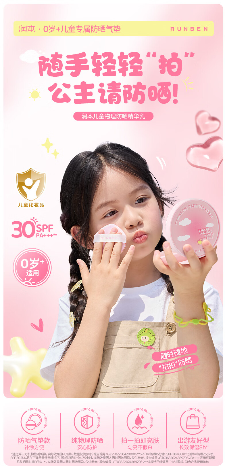 润本儿童物理防晒精华乳防水防汗亮肤防晒气垫13g户外便携防晒SPF30