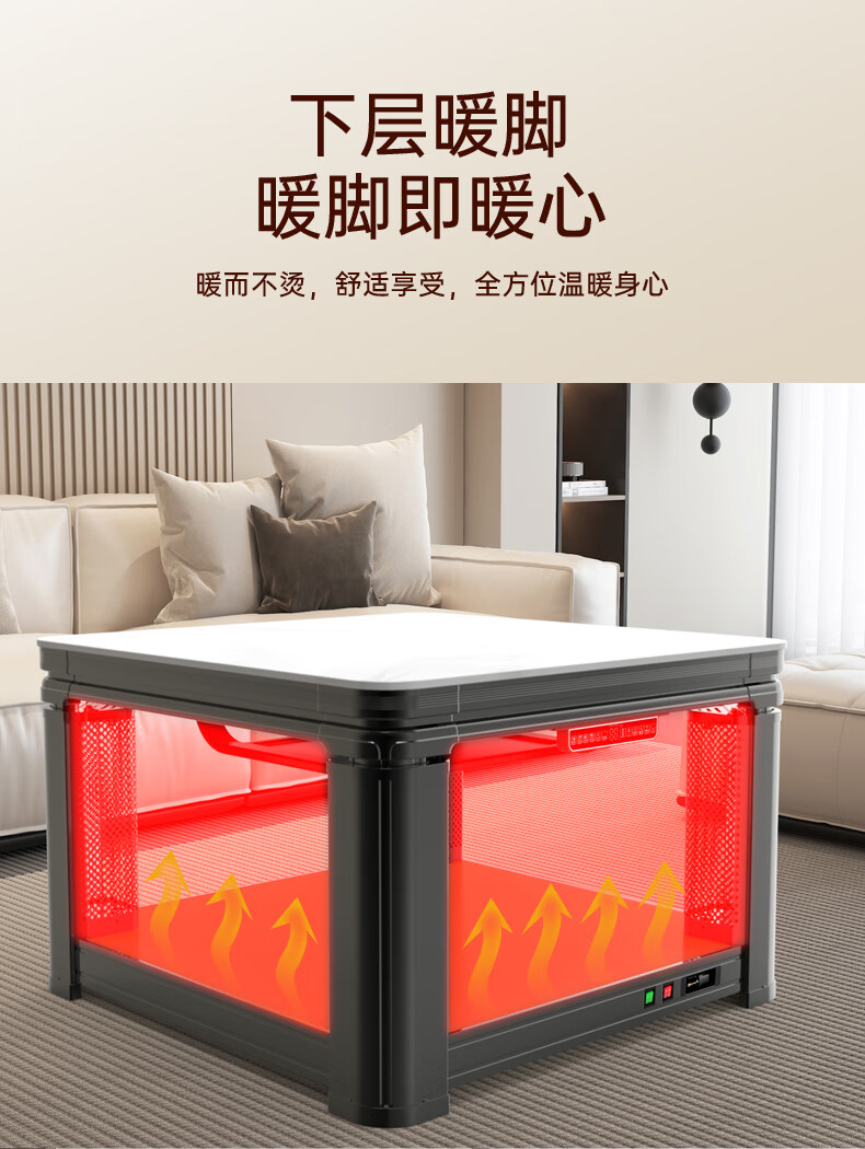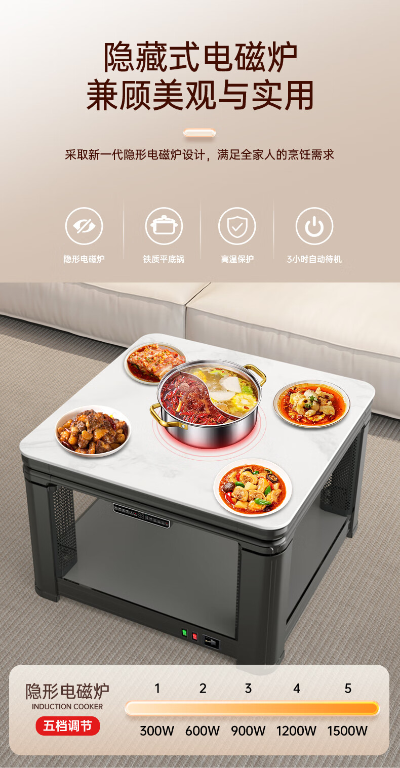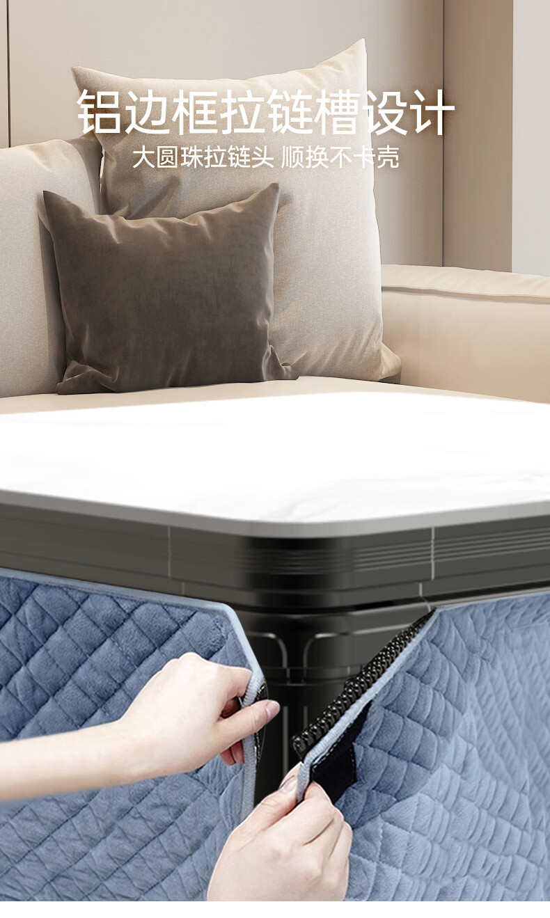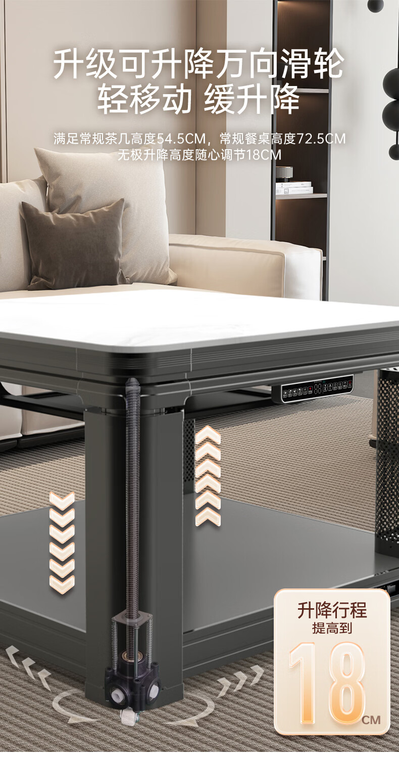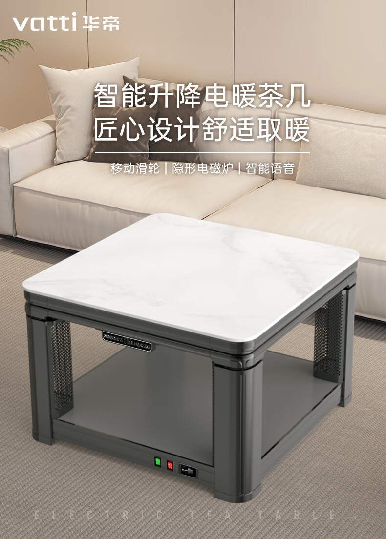 华帝(VATTI)取暖桌 电暖桌 烤火桌电烤桌取暖语音升降轻移动家用电烤炉桌子烤火电暖炉烤火炉正方形餐桌 G02灰900*900mm智能升降移动滑轮轨道桌罩