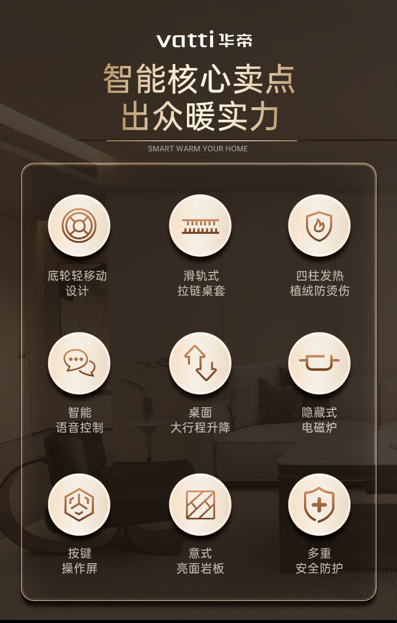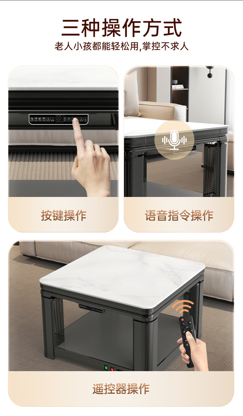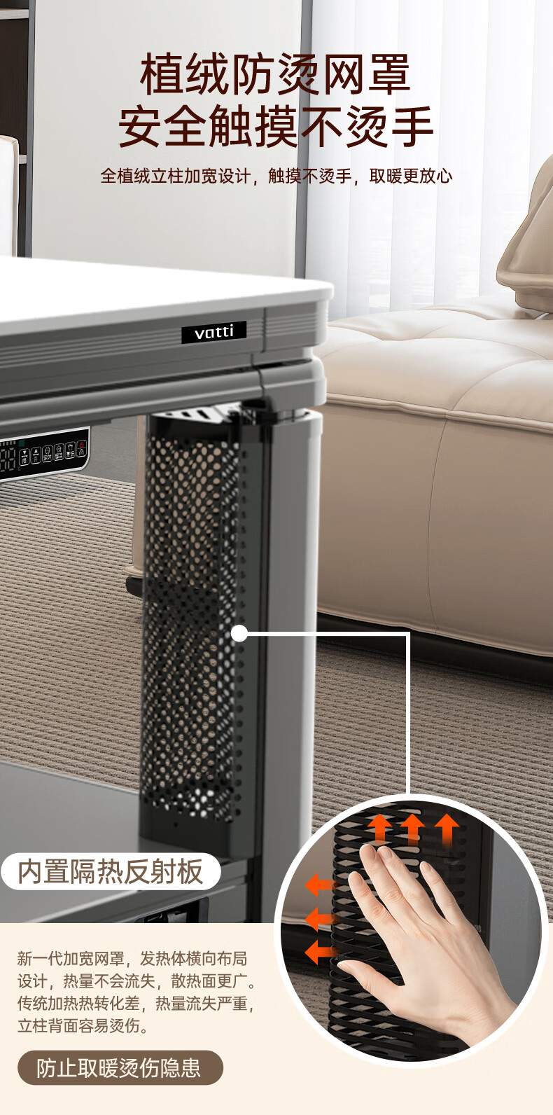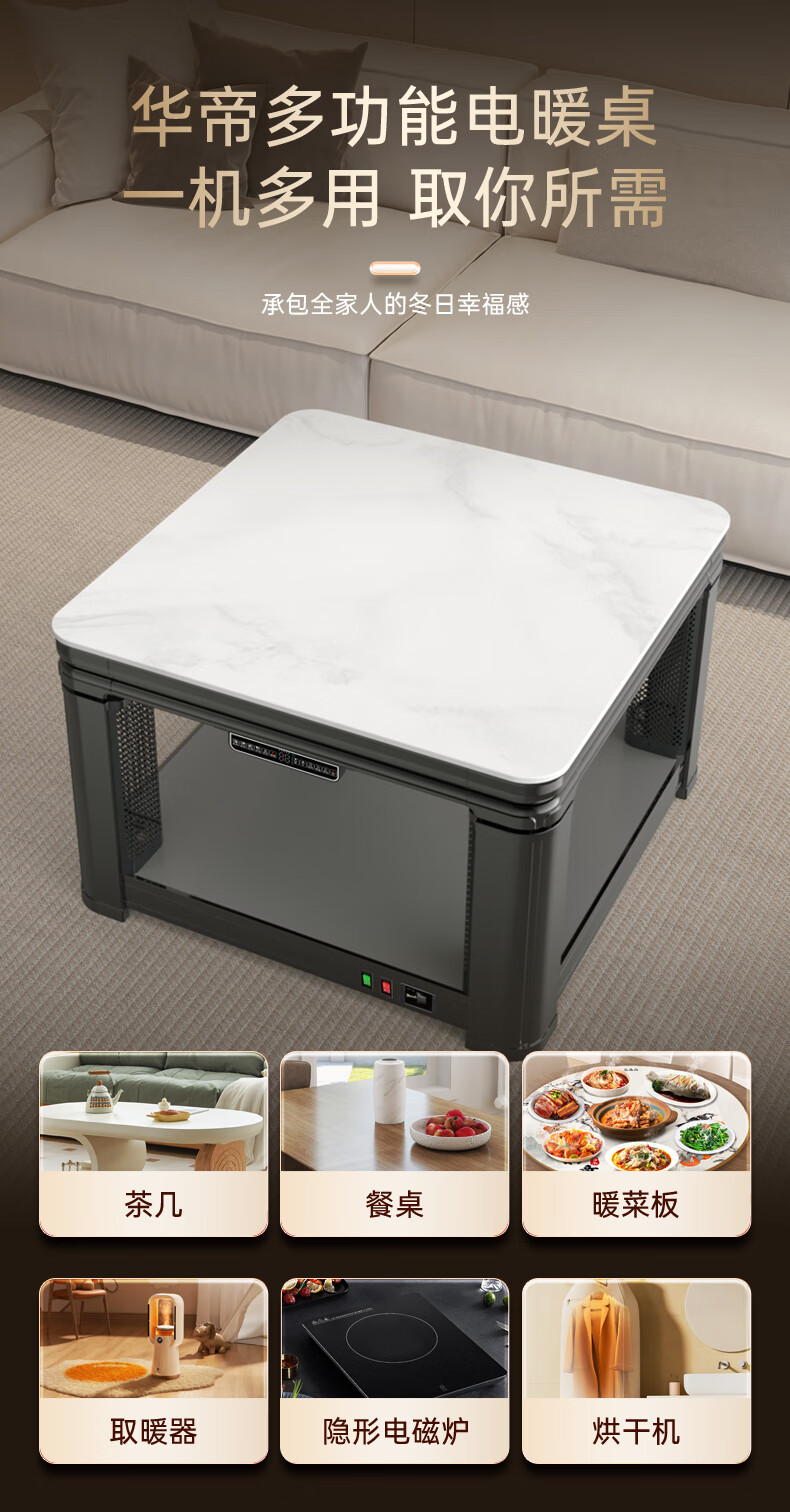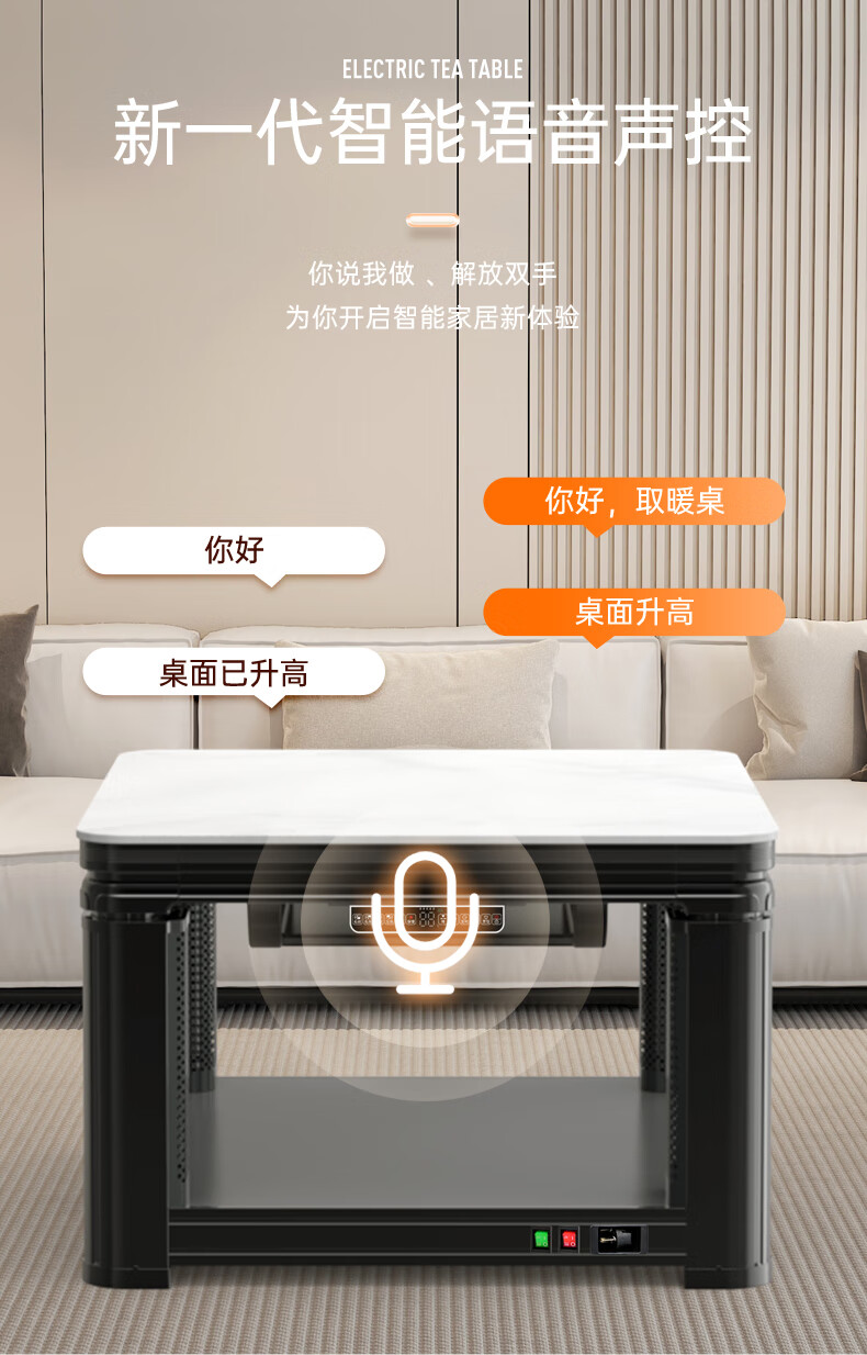 华帝(VATTI)取暖桌 电暖桌 烤火桌电烤桌取暖语音升降轻移动家用电烤炉桌子烤火电暖炉烤火炉正方形餐桌 G02灰900*900mm智能升降移动滑轮轨道桌罩