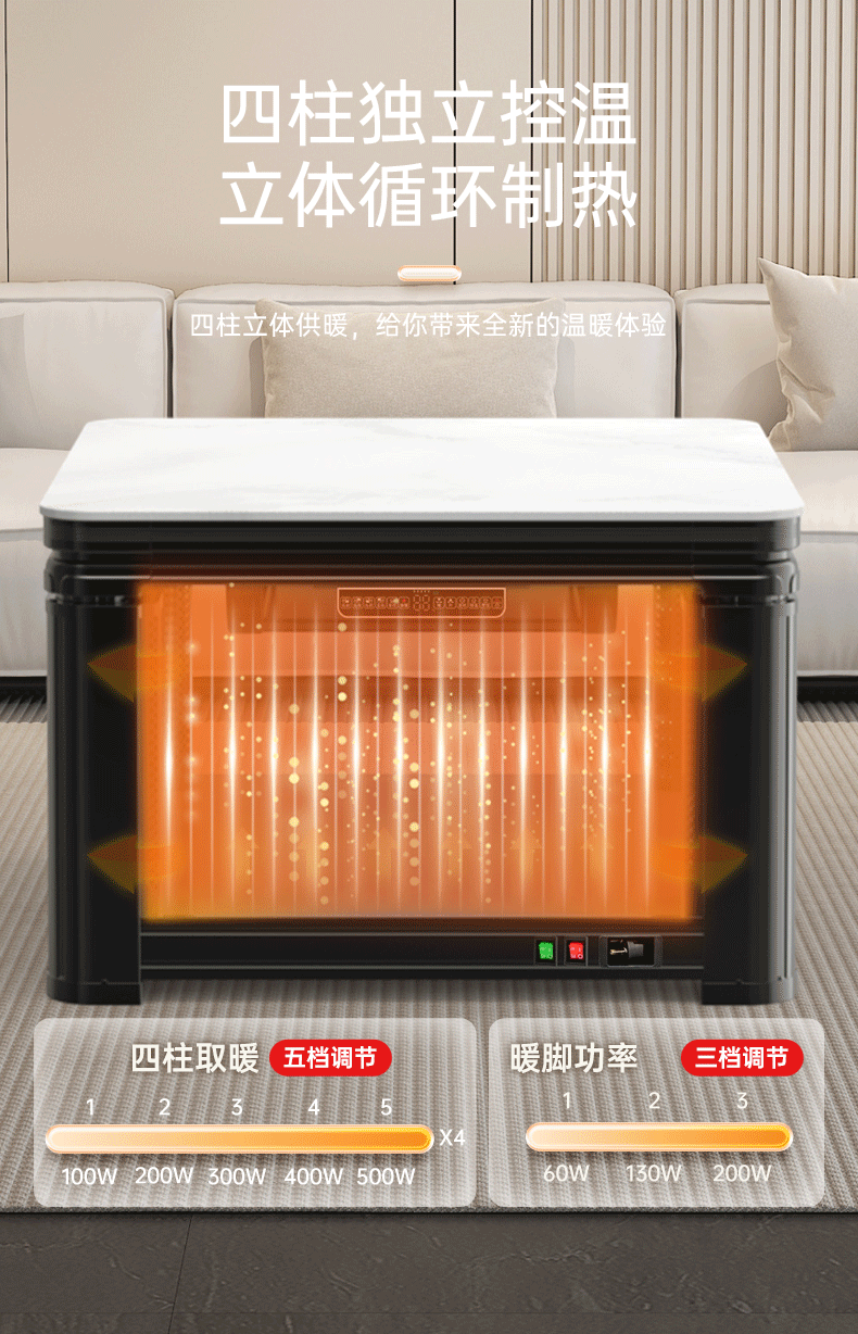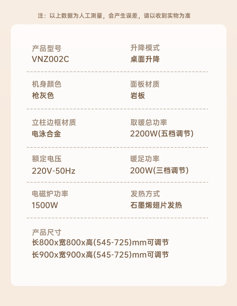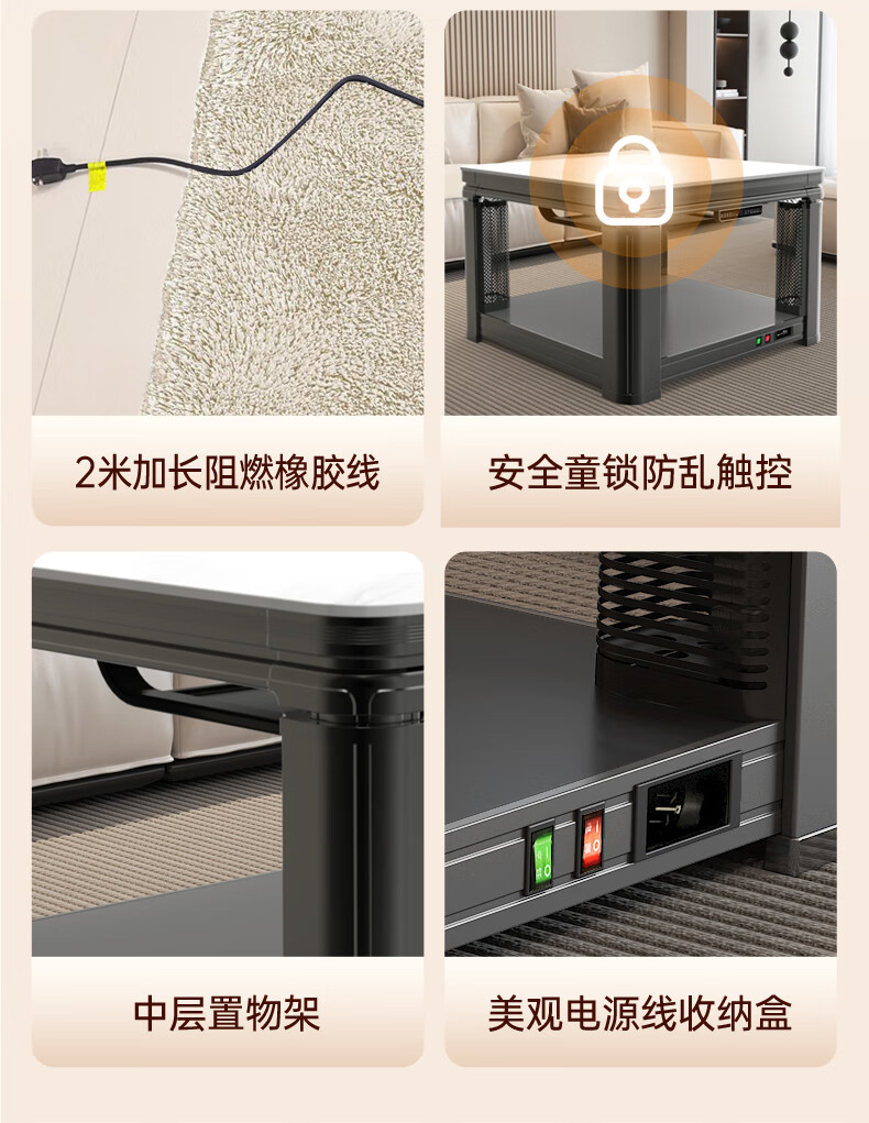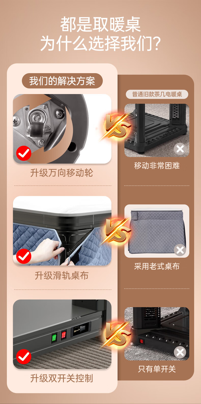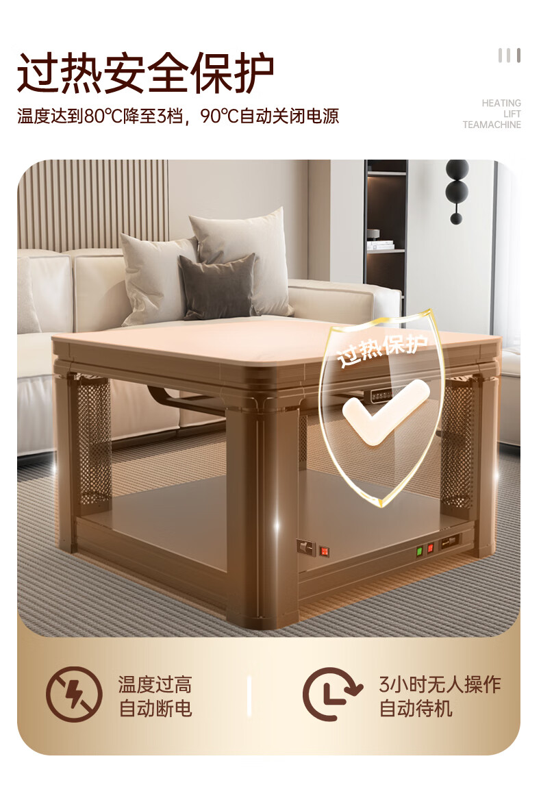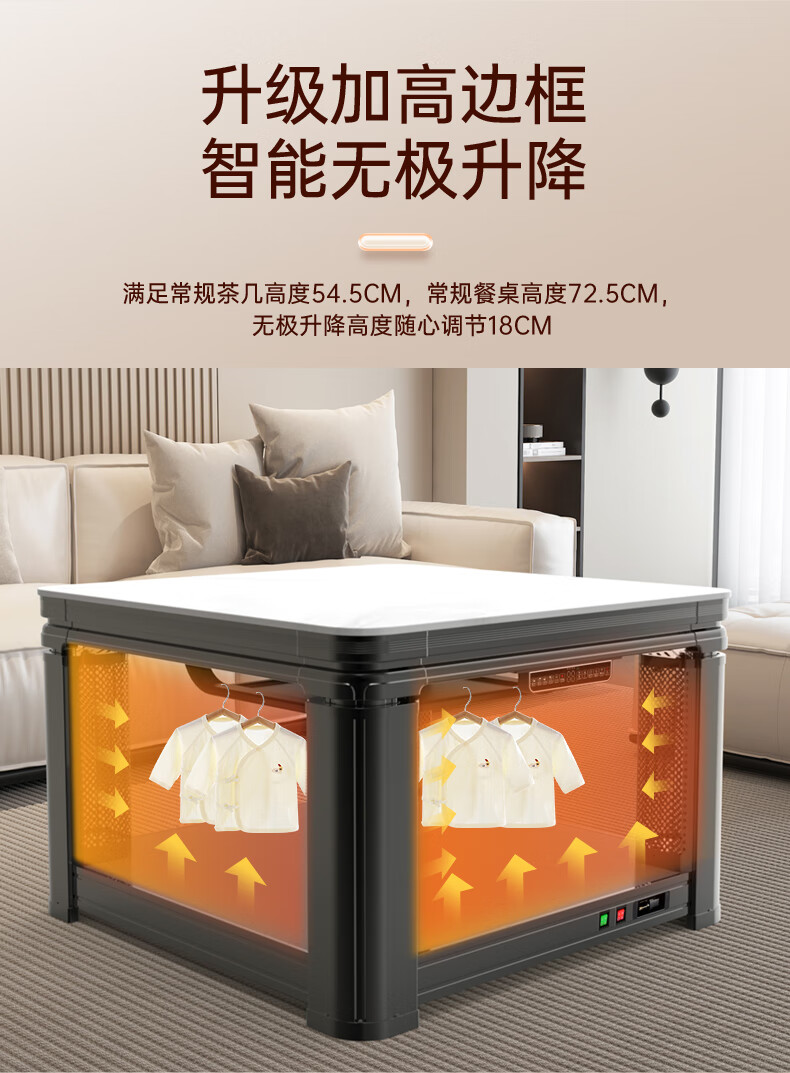 华帝(VATTI)取暖桌 电暖桌 烤火桌电烤桌取暖语音升降轻移动家用电烤炉桌子烤火电暖炉烤火炉正方形餐桌 G02灰900*900mm智能升降移动滑轮轨道桌罩