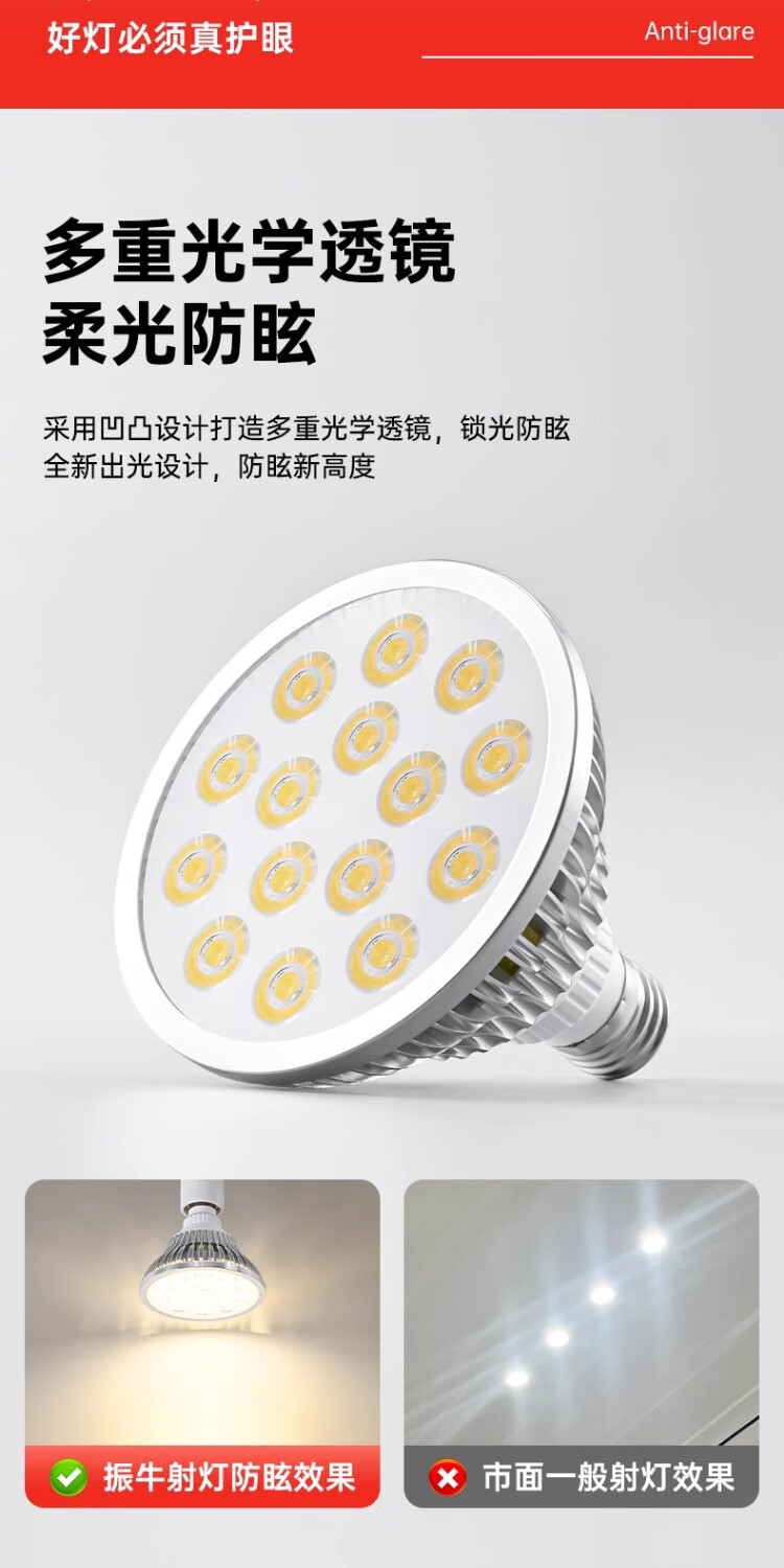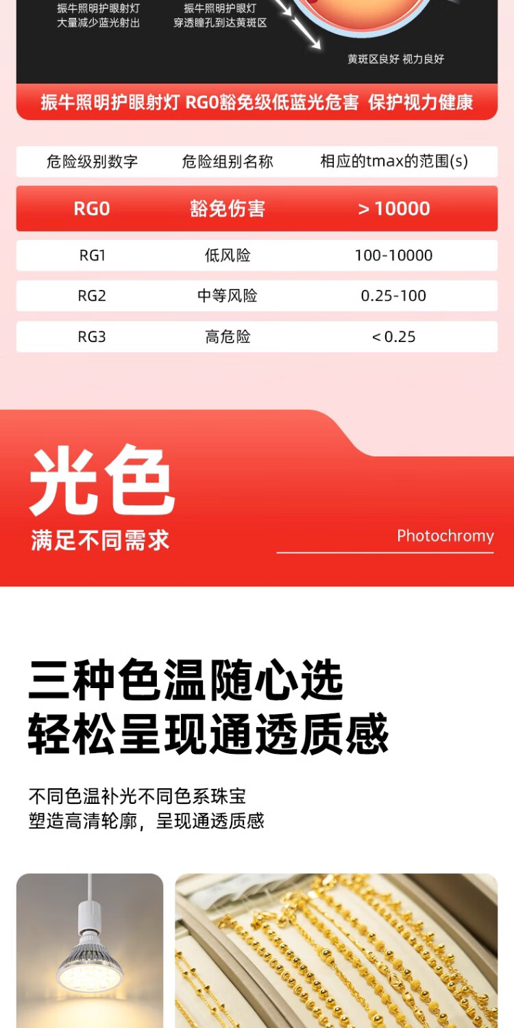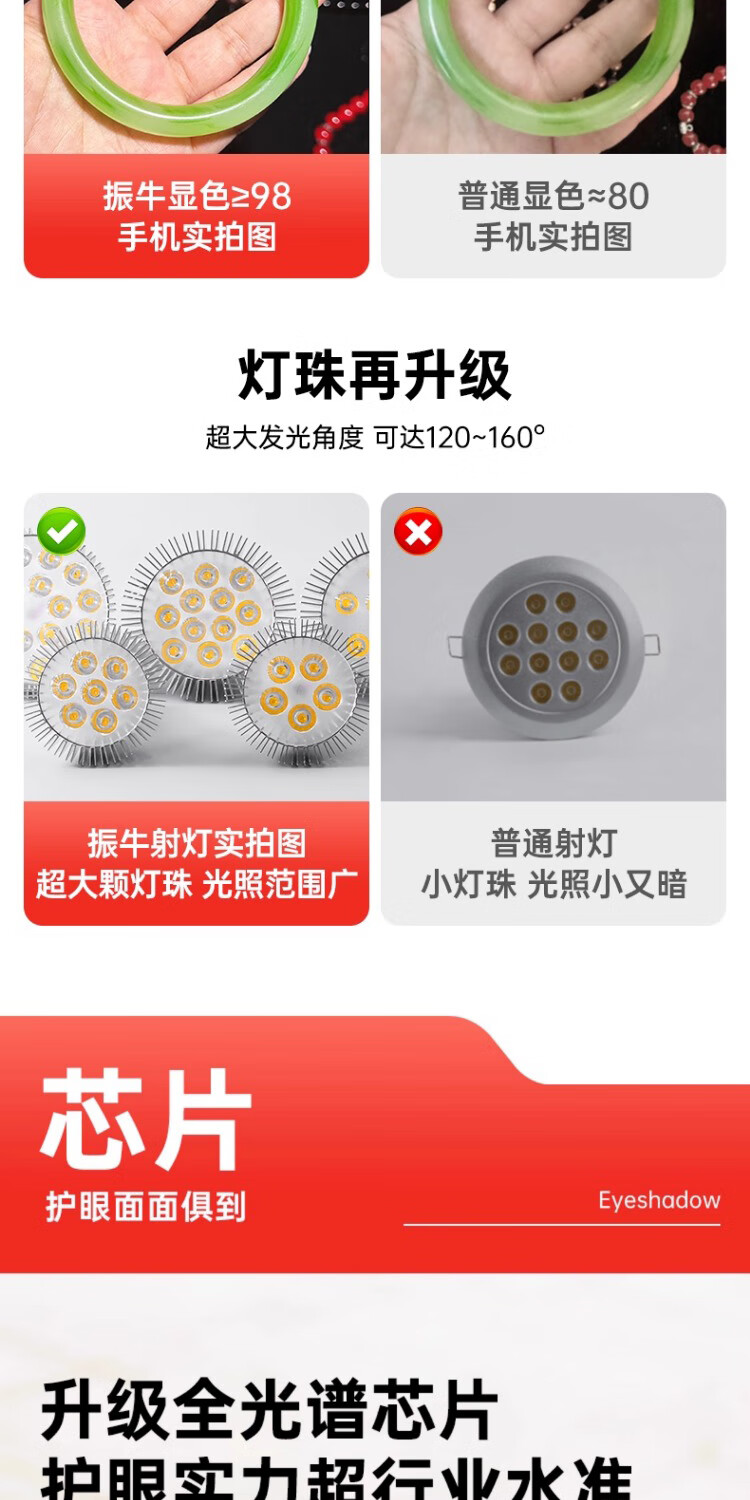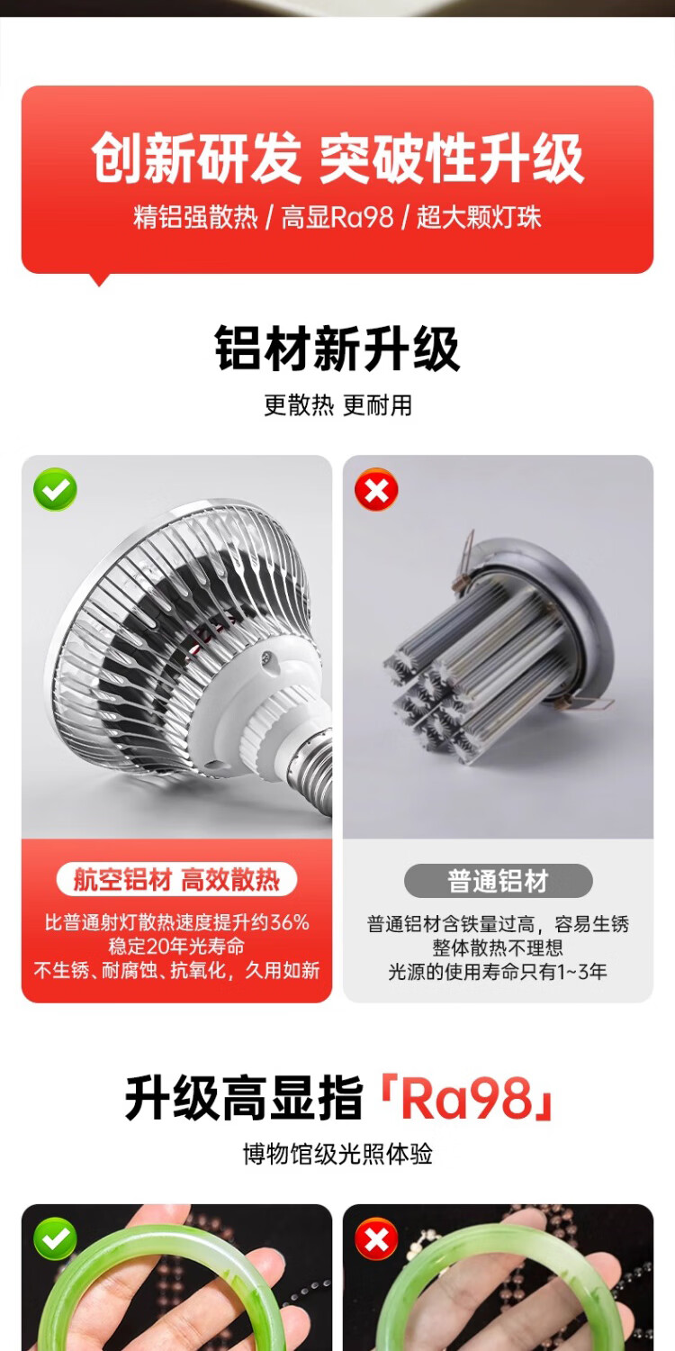 振牛全光谱led射灯商场服装e27螺口灯泡珠宝黄金首饰专用护眼补光灯 A款 5W-白光