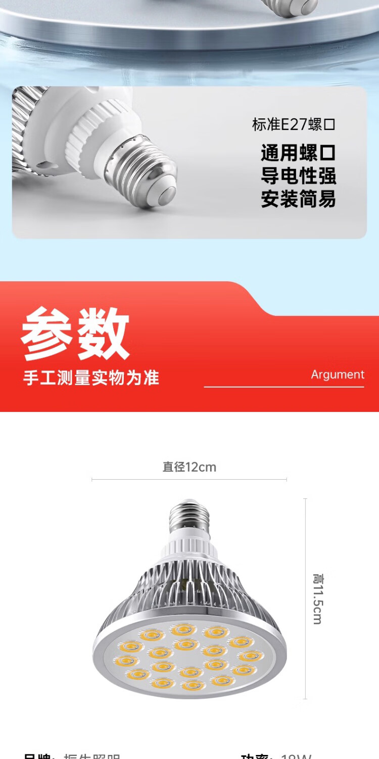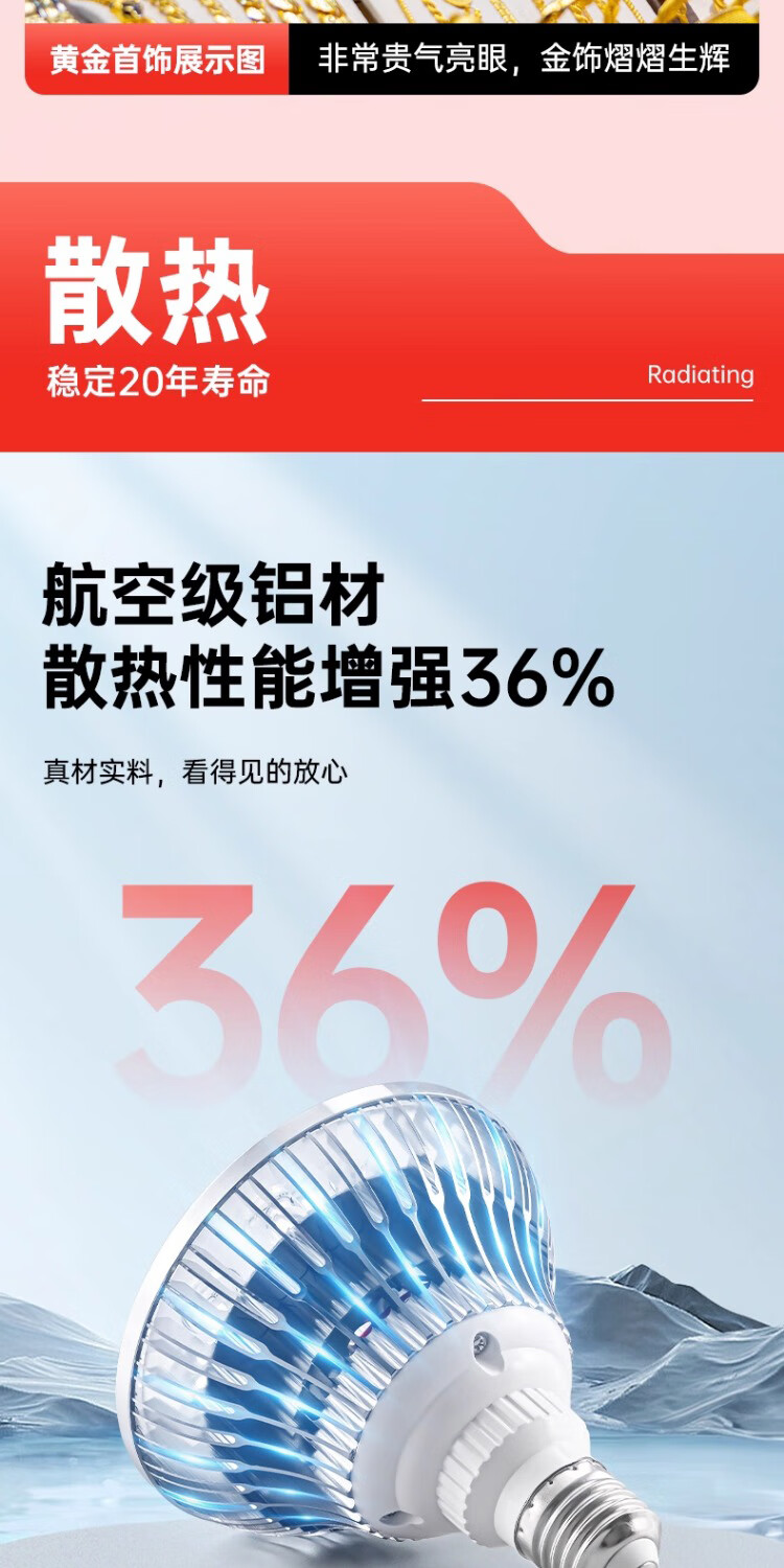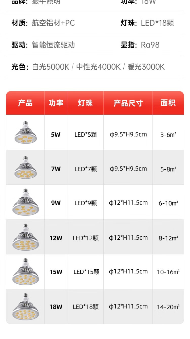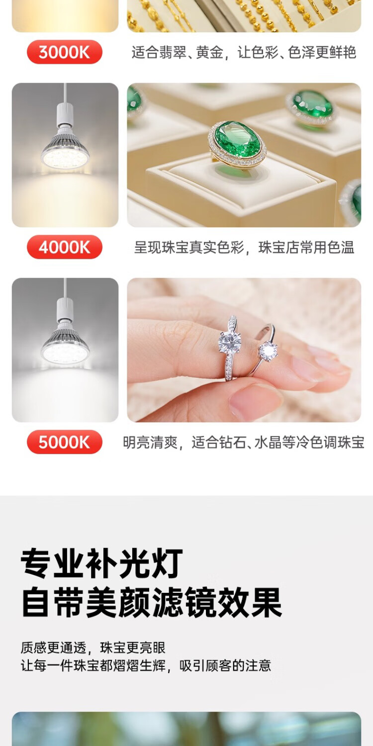 振牛全光谱led射灯商场服装e27螺口灯泡珠宝黄金首饰专用护眼补光灯 A款 5W-白光