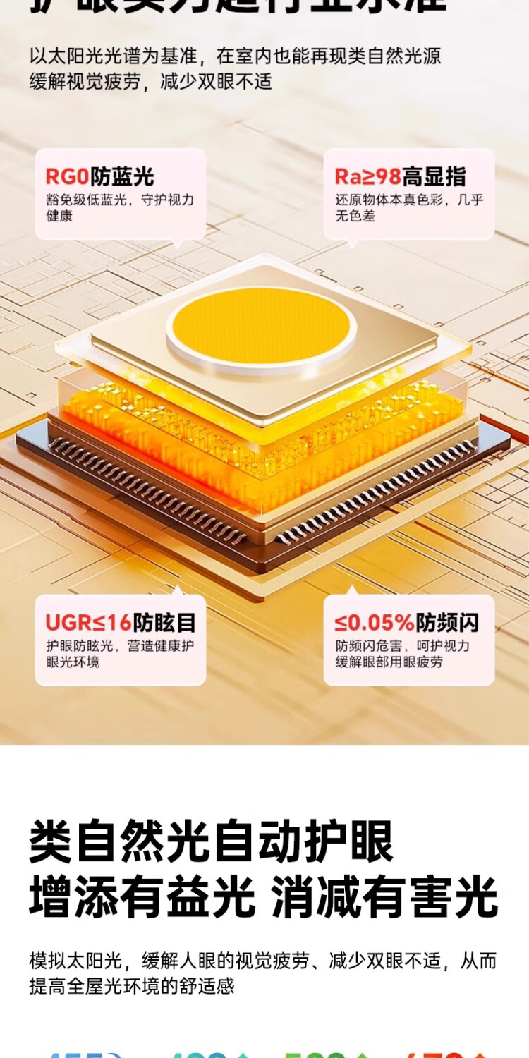 惠普普瑞护眼卧室吸顶灯现代简约led超薄中山灯具房间主灯包安装 60W 双层背光款/50cm方三色