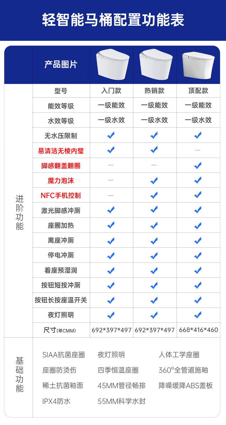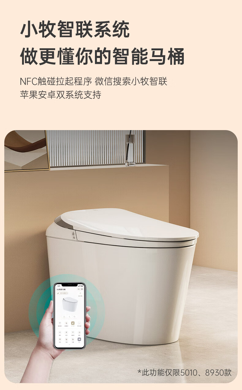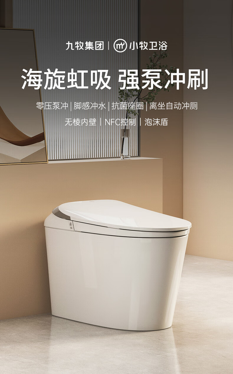 九牧(JOMOO)轻智能马桶小牧卫浴无水压限制魔力泡沫一级水效家用马桶包安装 一级水效+魔力泡沫+手机控制/5010 305(300)/400坑距下单备注