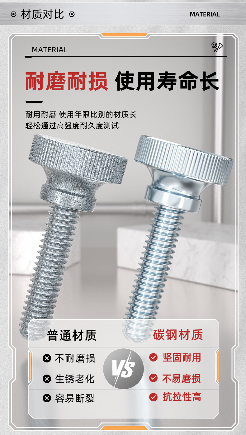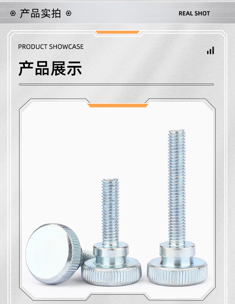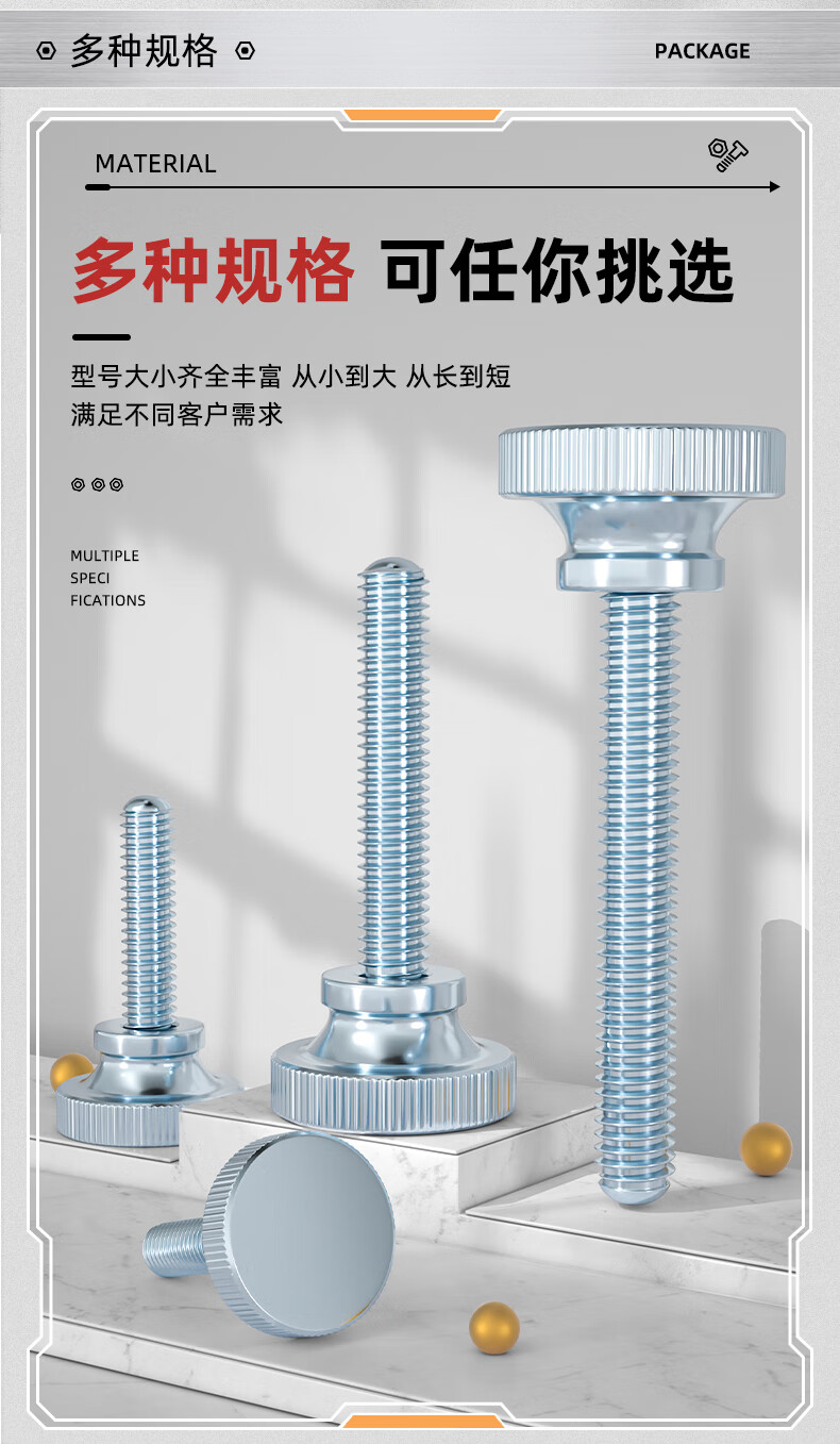 天卓五金GB834镀锌高头滚花手拧螺丝钉手紧手扭大头调节螺栓M3M4M5M6M8M10 304母平弹套装M3-8