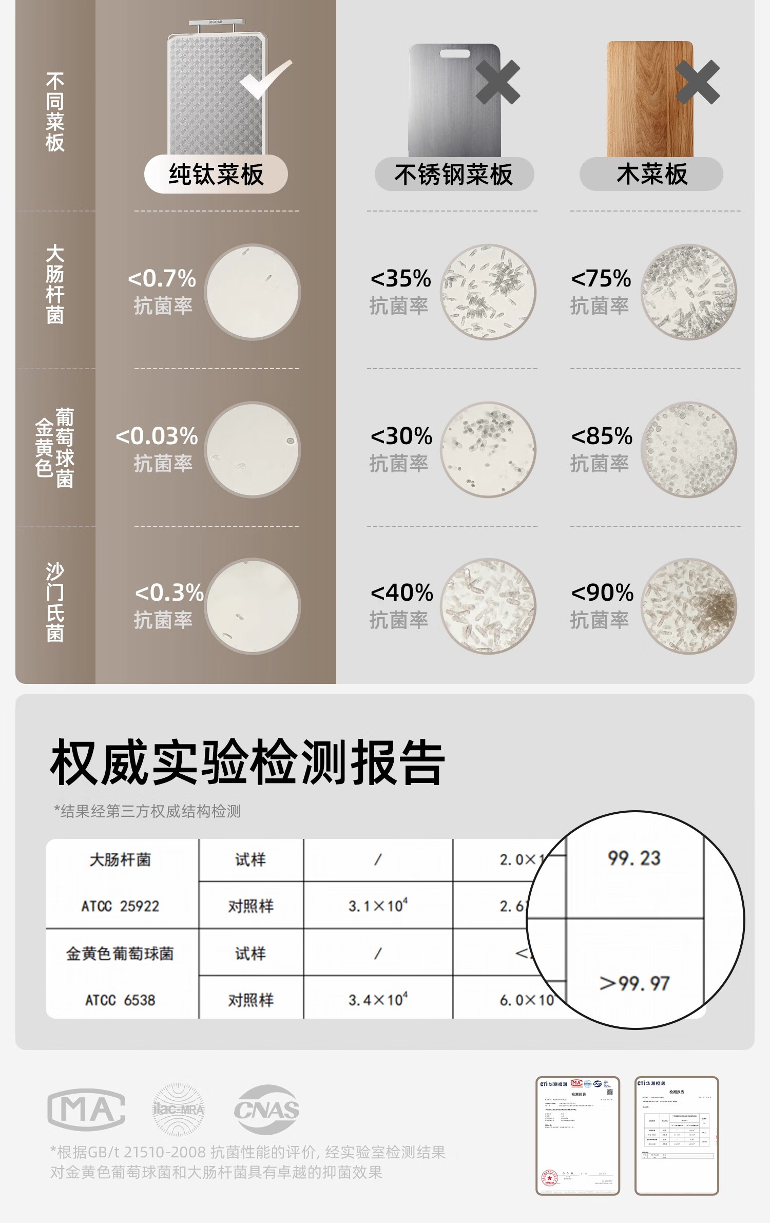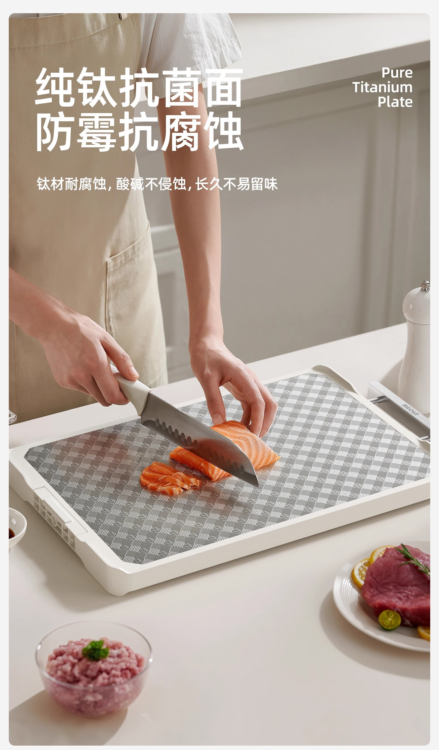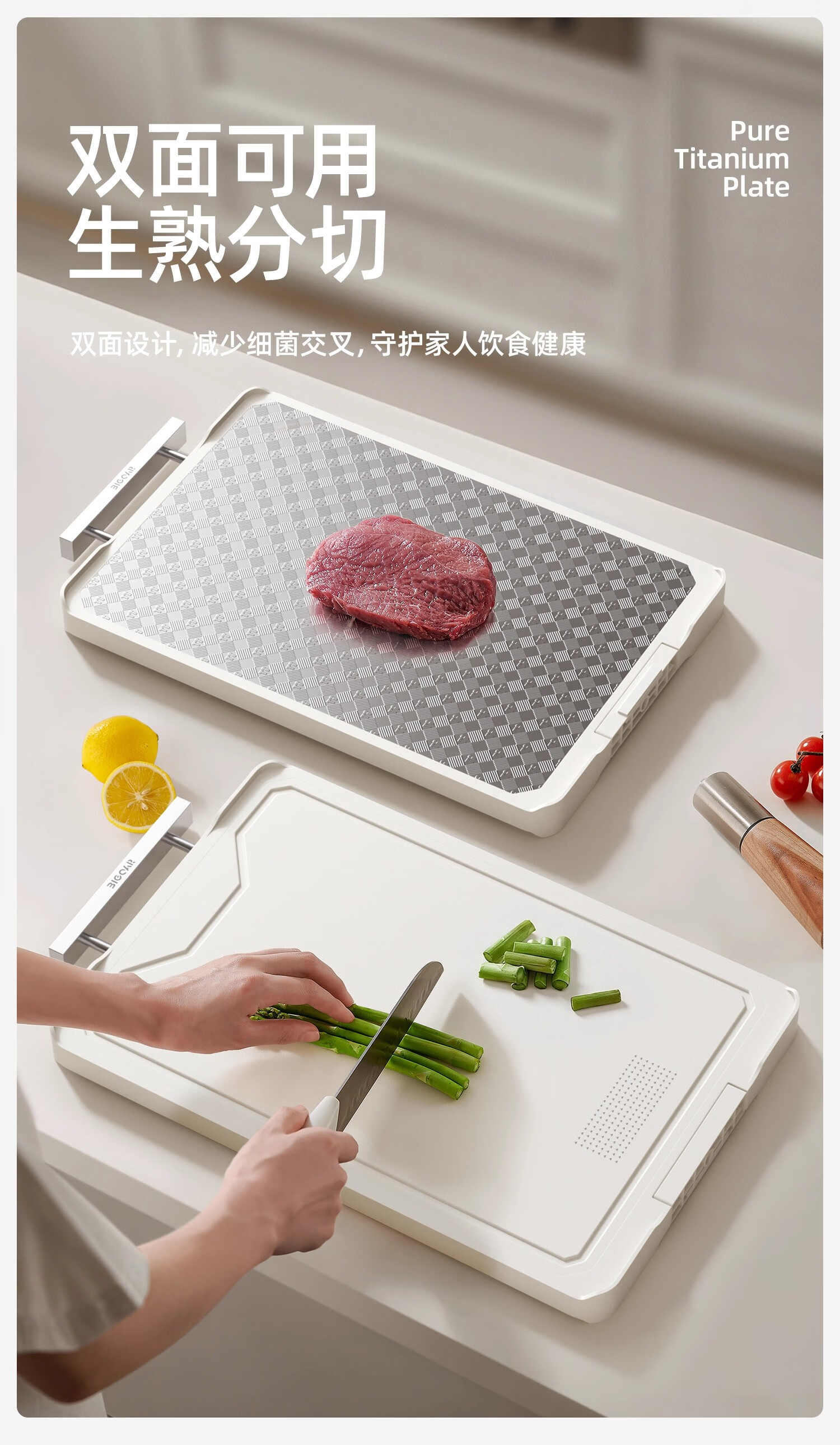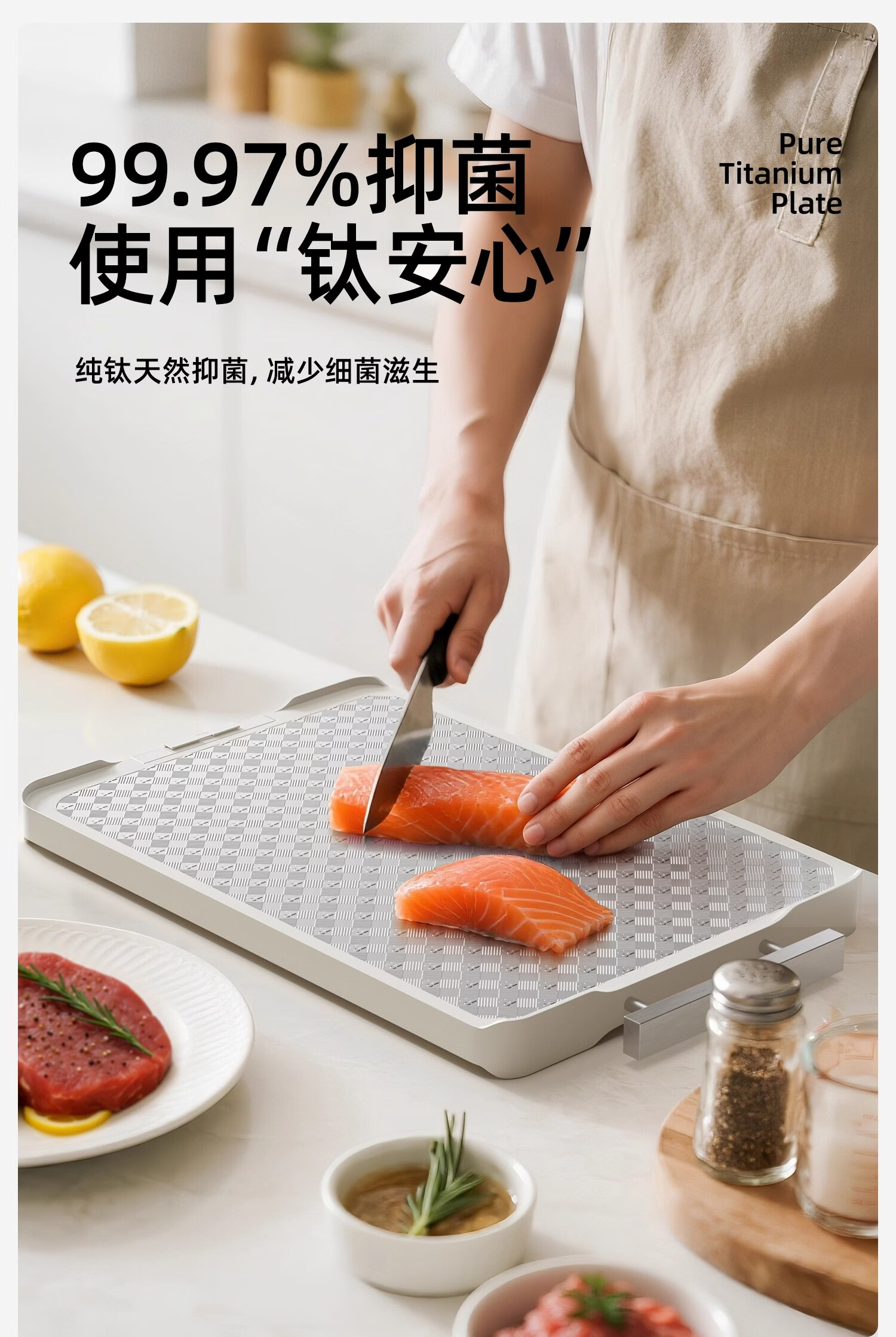 大卡100%纯钛双面切菜板防霉抗菌家用食品级厨房专用刀板粘板案板砧板 纯钛厚菜板 长方形
