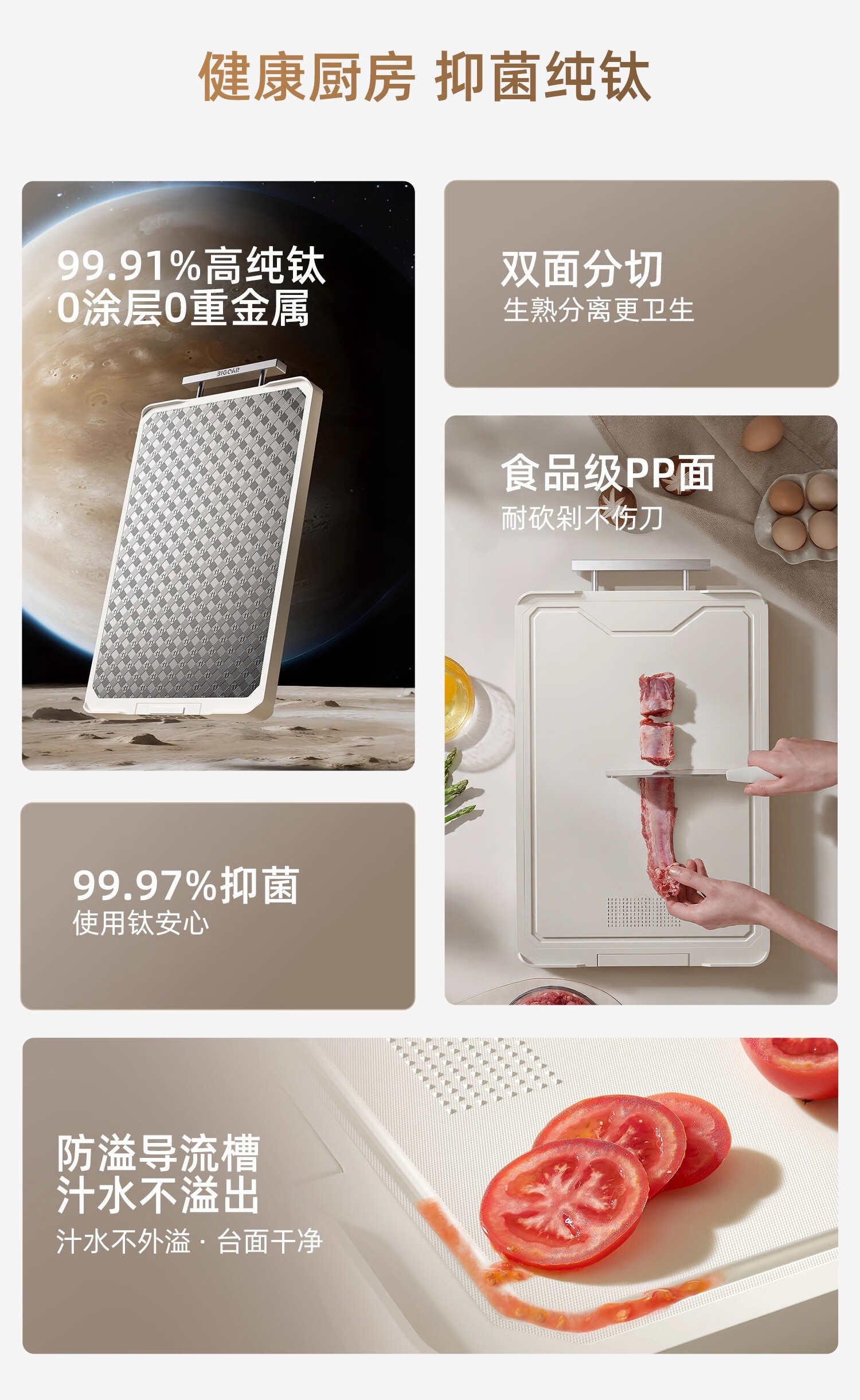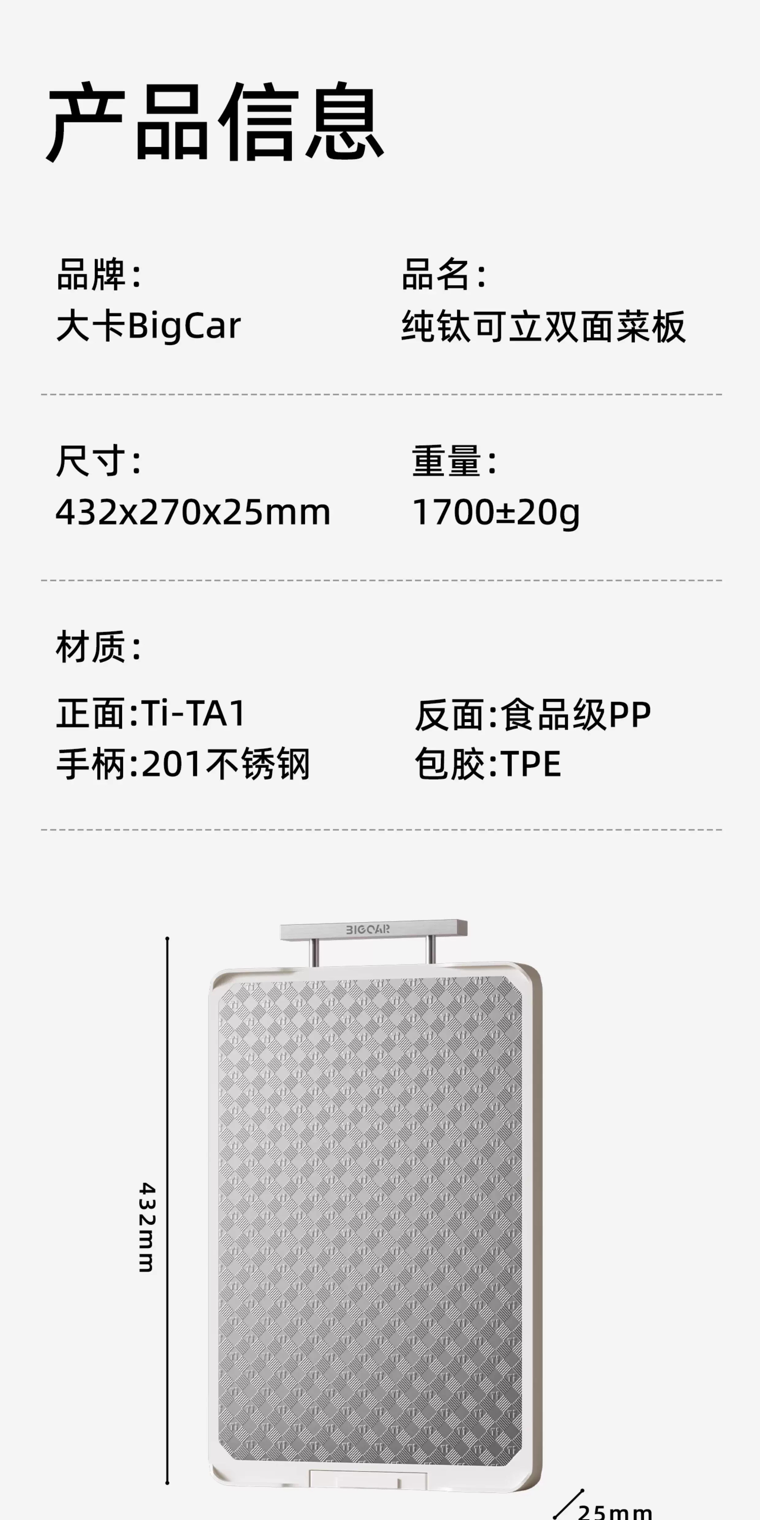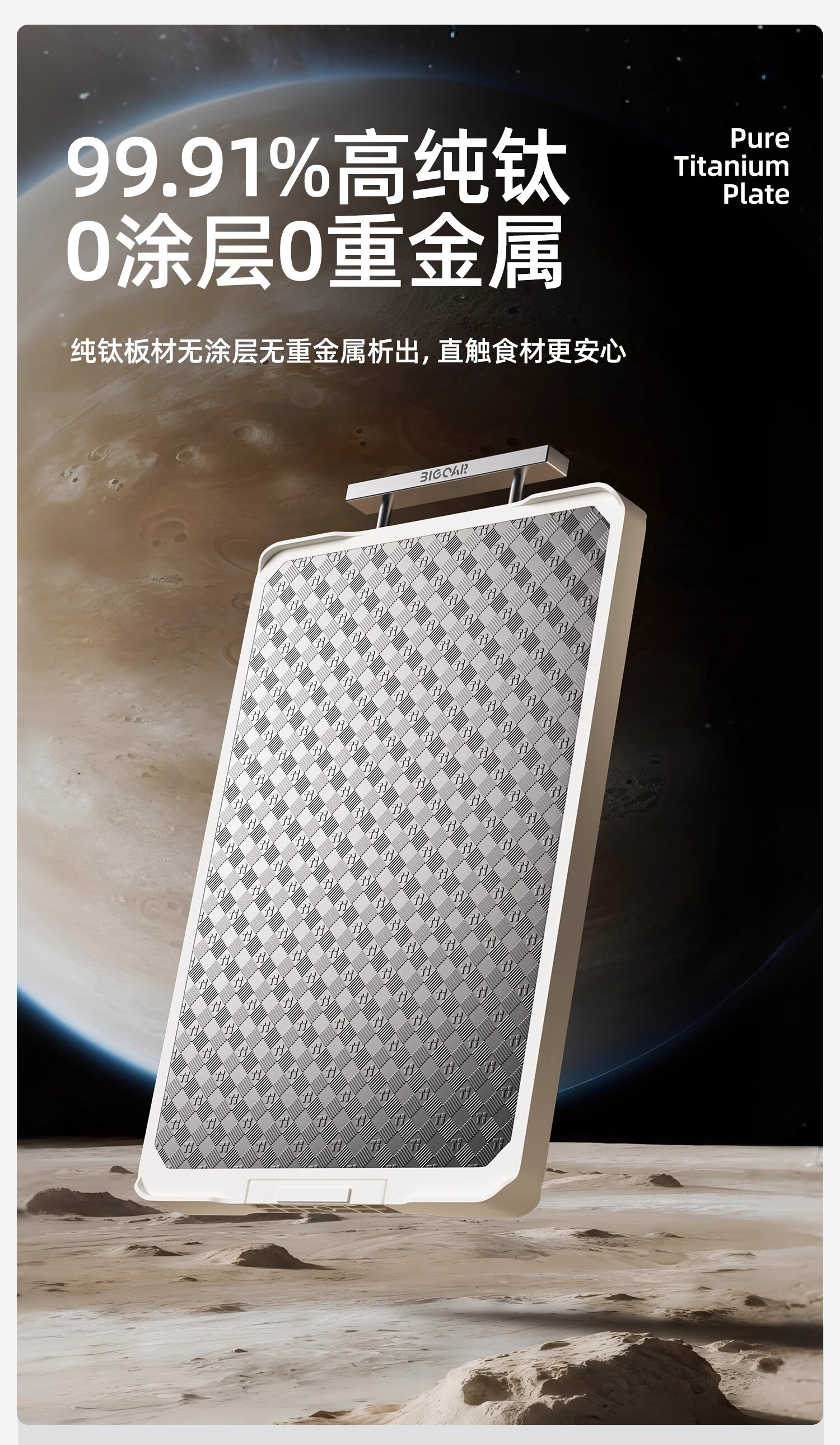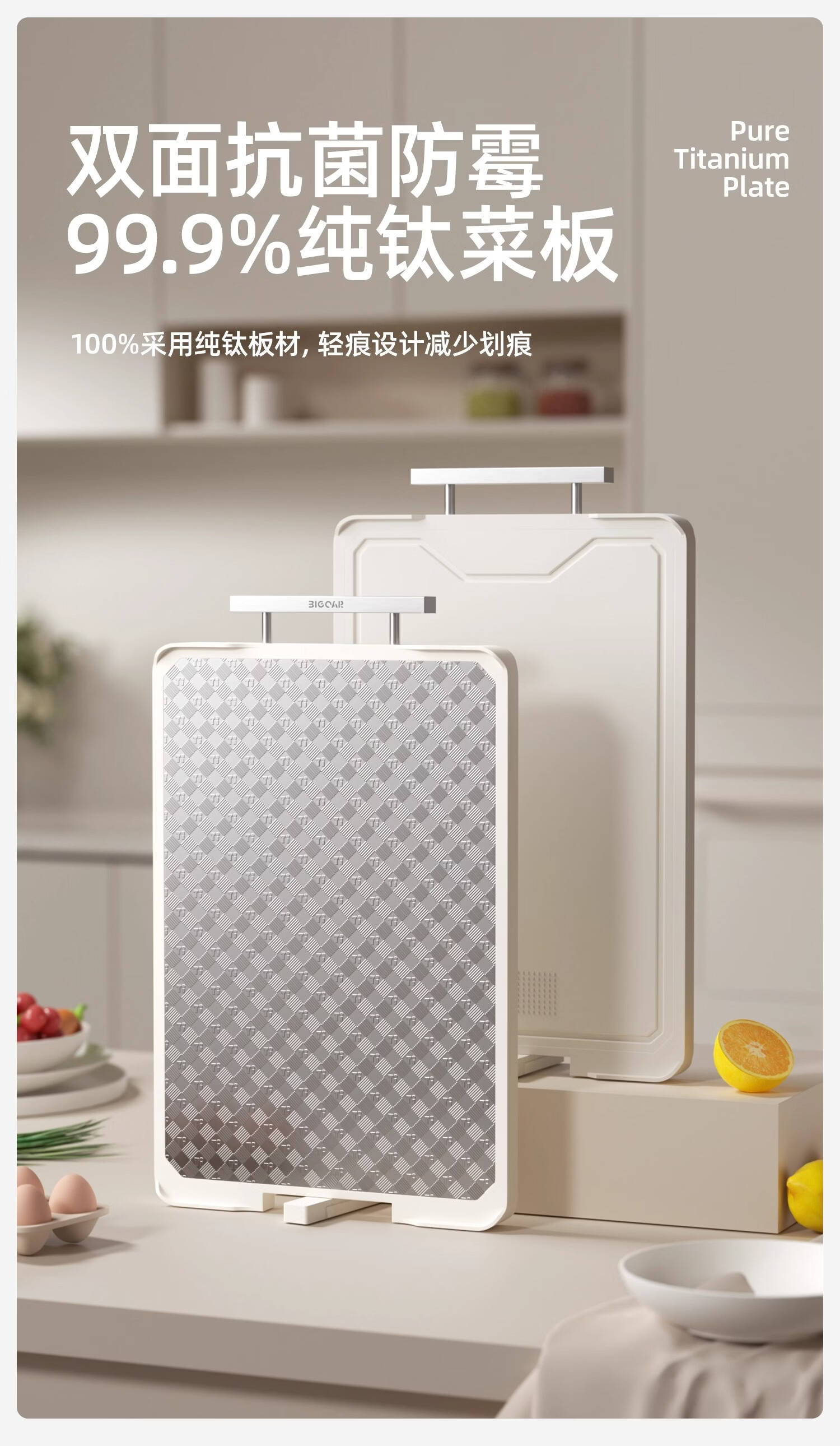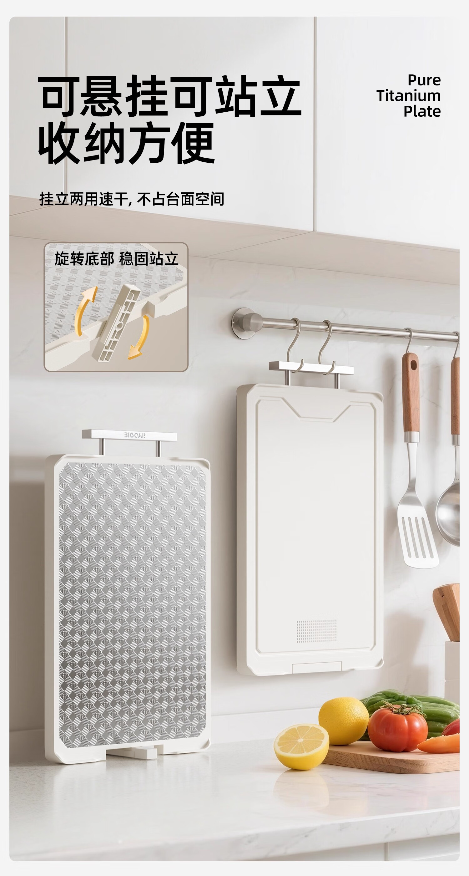大卡100%纯钛双面切菜板防霉抗菌家用食品级厨房专用刀板粘板案板砧板 纯钛厚菜板 长方形