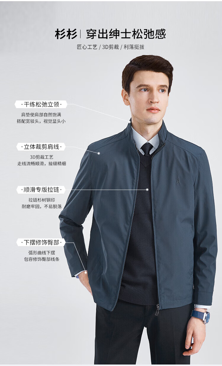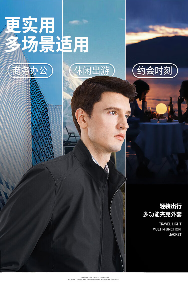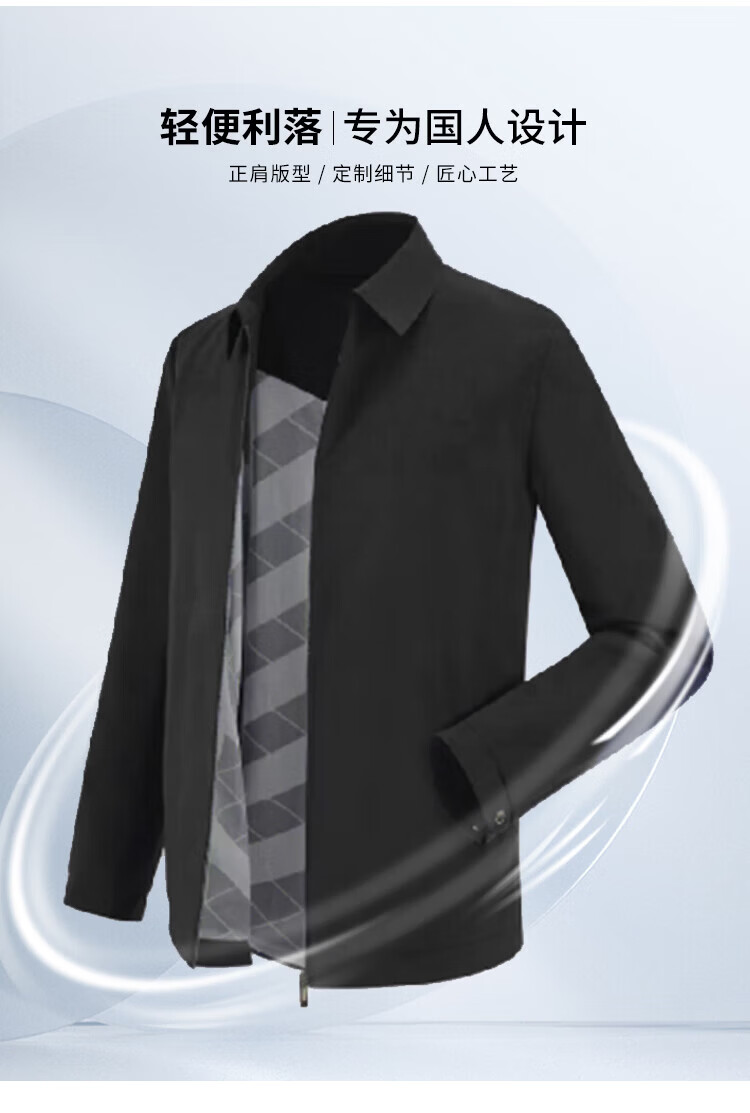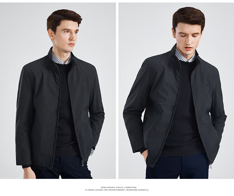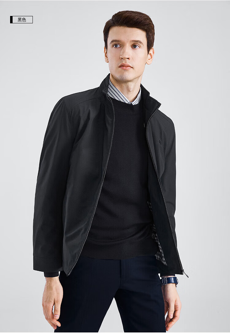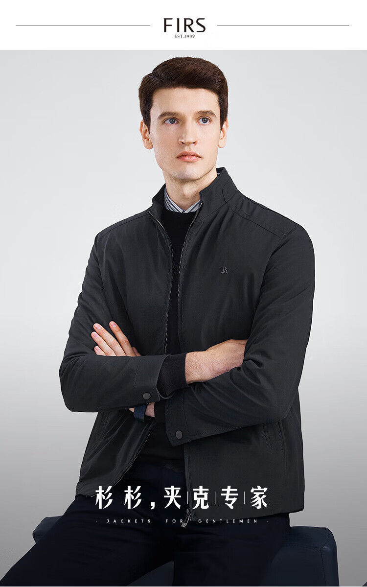 杉杉(FIRS)【三防面料】新年夹克男春秋款商务休闲顺滑抗皱立领防风保暖外套 黑色 M 170/88A