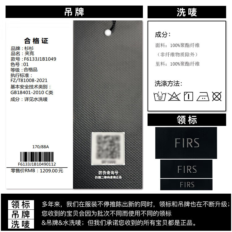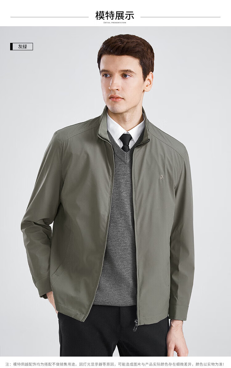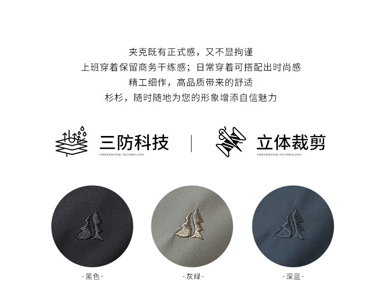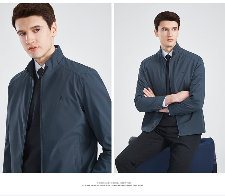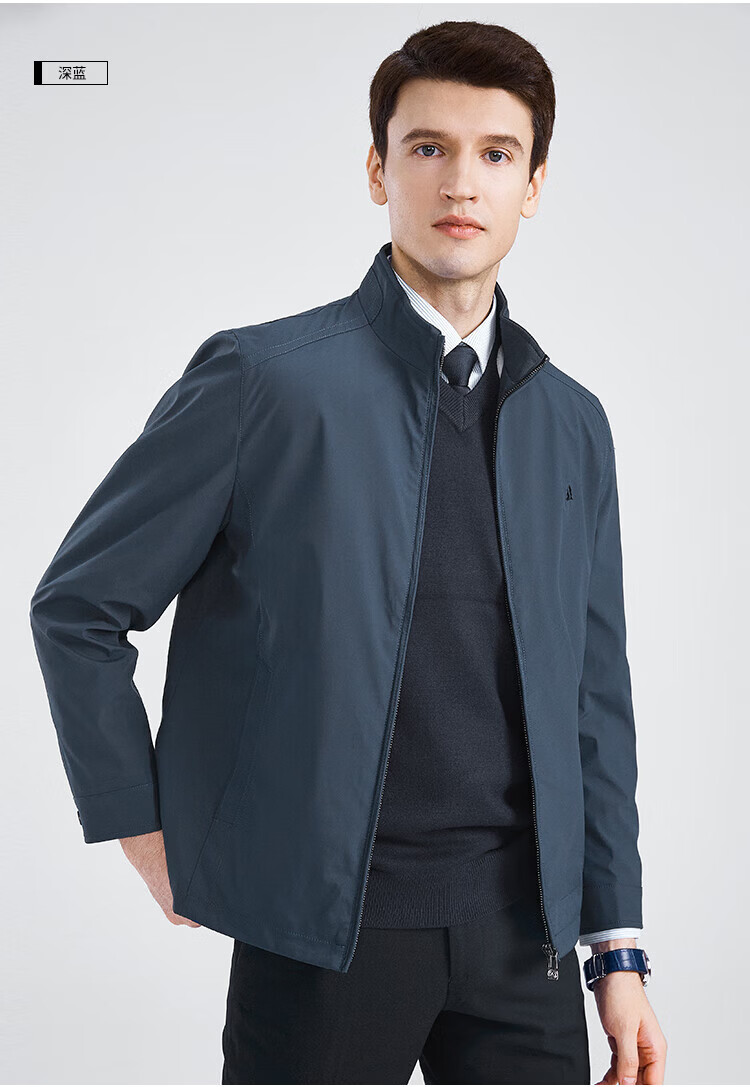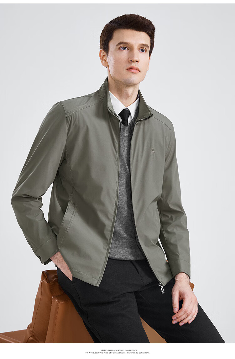 杉杉(FIRS)【三防面料】新年夹克男春秋款商务休闲顺滑抗皱立领防风保暖外套 黑色 M 170/88A