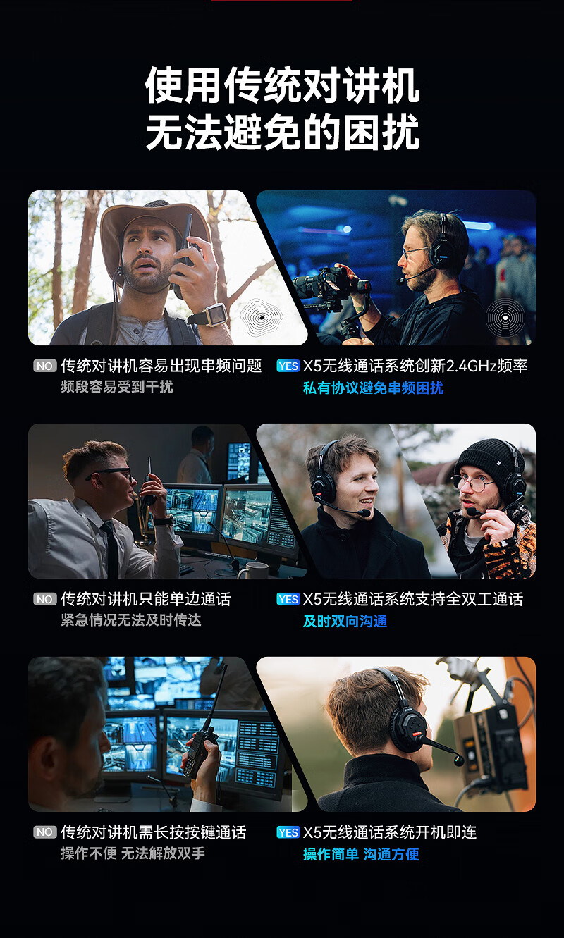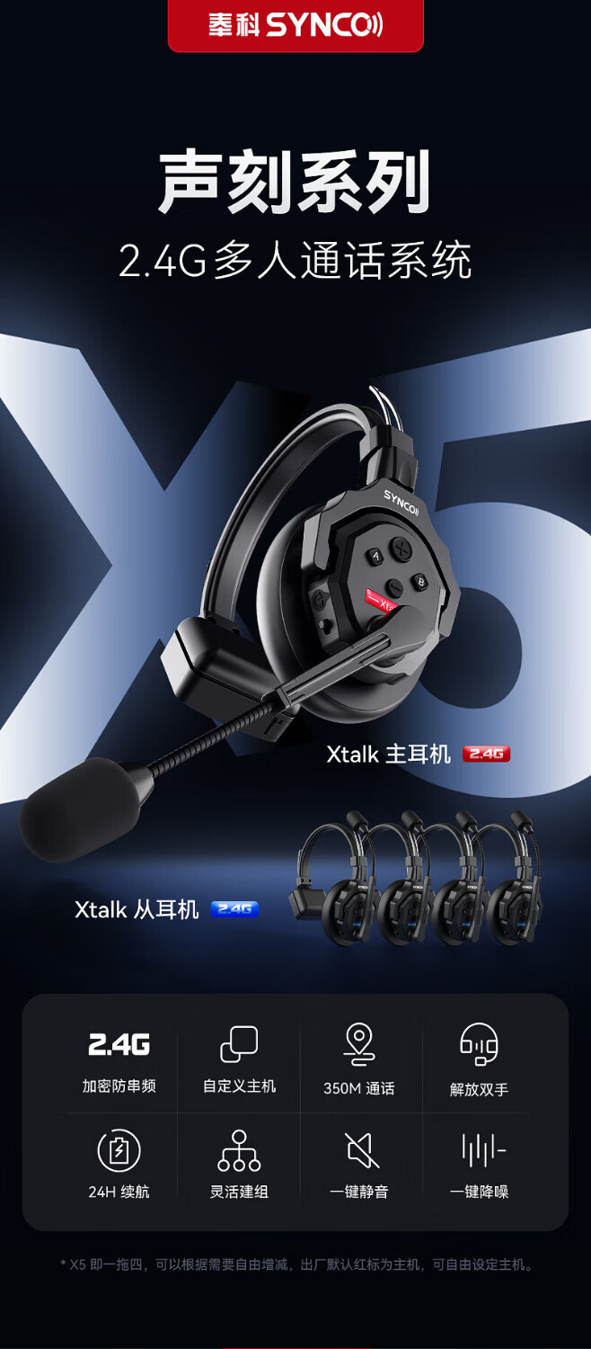 奉科声刻X5无线导播通话系统耳机切换台全双工对讲机头戴直播导播三方通话设备 X5-(1拖4)
