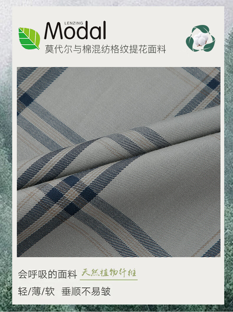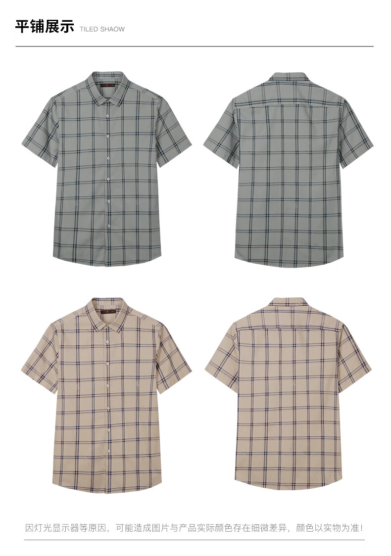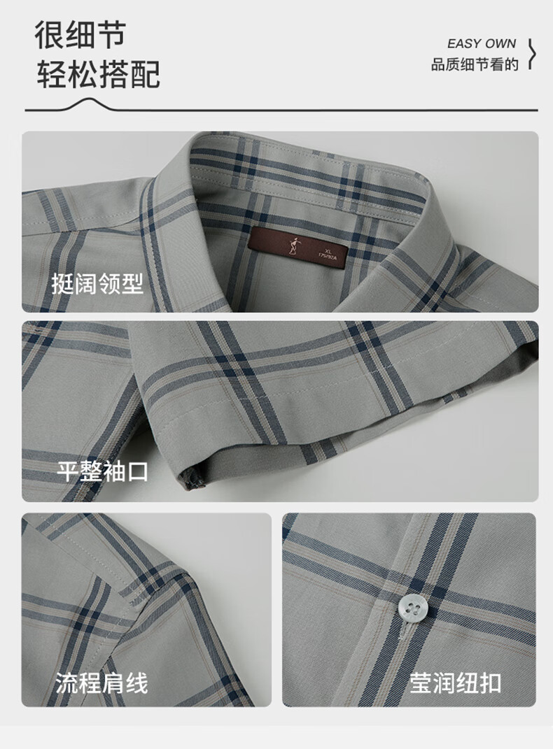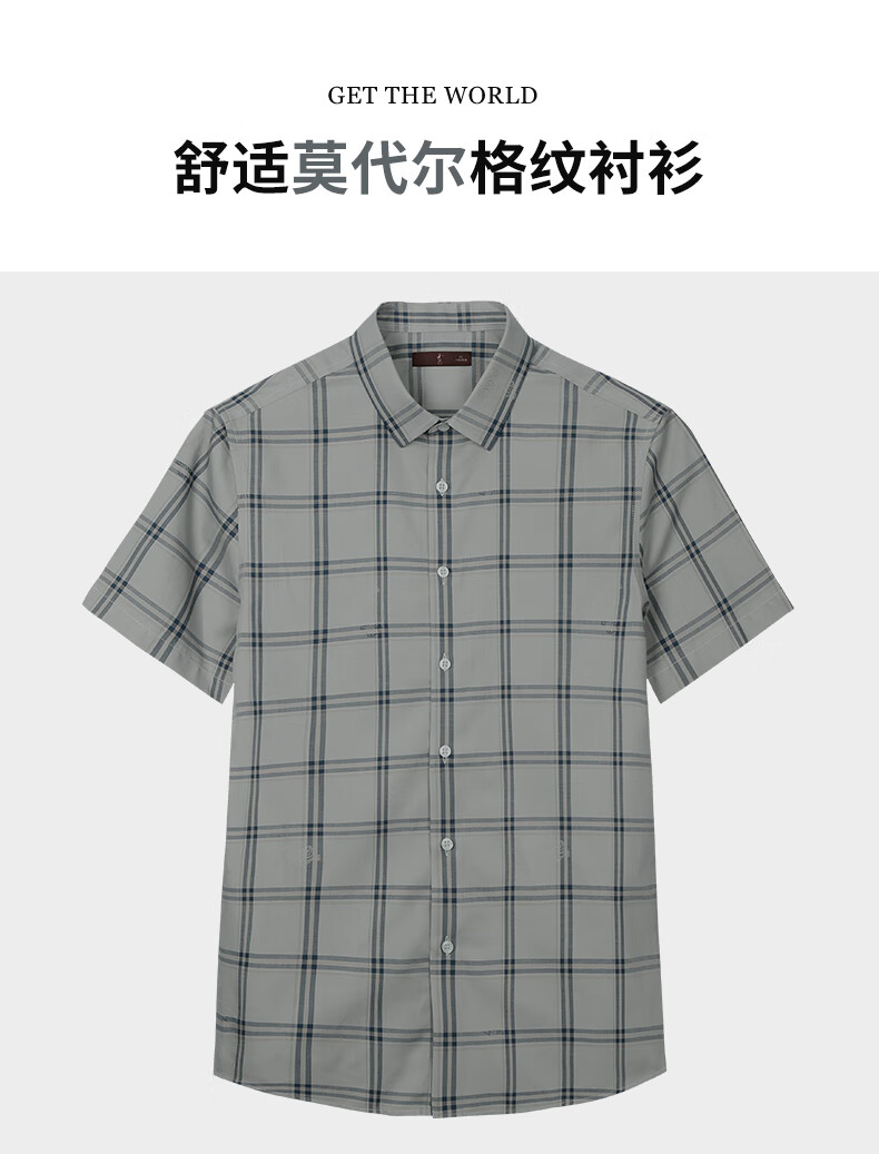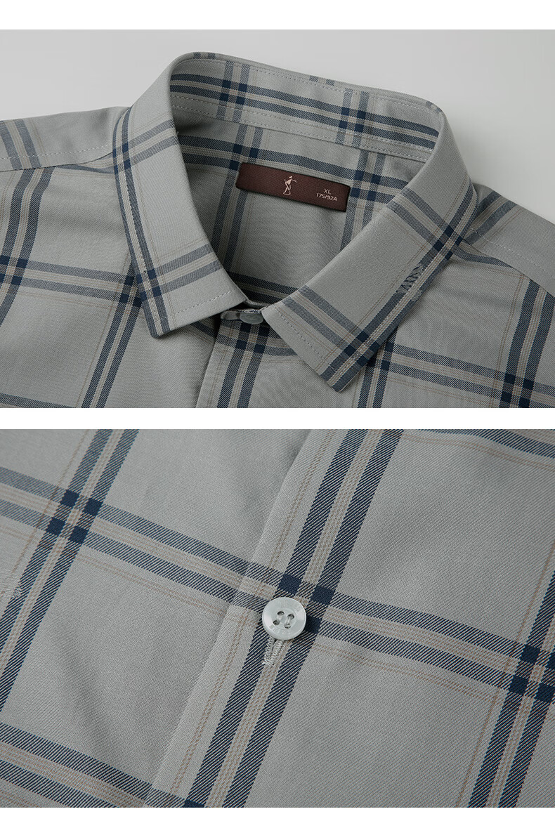 才子(TRIES)【莫代尔】男士短袖衬衫2026新款夏季轻薄柔软格纹商务休闲衬衣 深卡其 XL (175/92A)