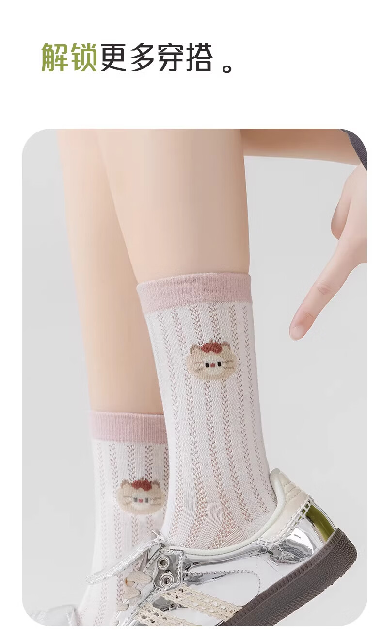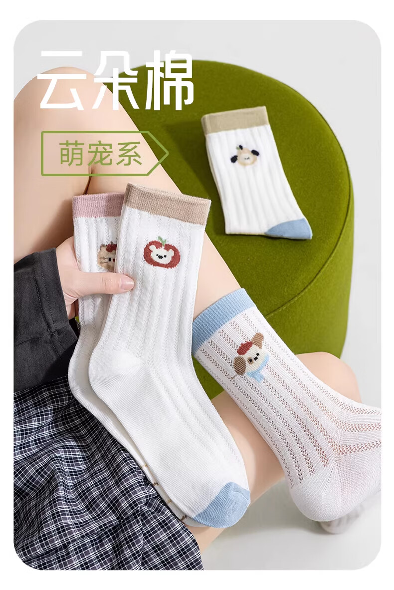 洛·恋袜子女款春夏季纯棉透气防臭女士女童日系甜美卡通运动休闲中筒袜 【运动防臭】 5双 均码 【颜色可选 拍下留言】