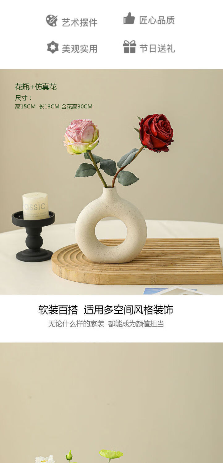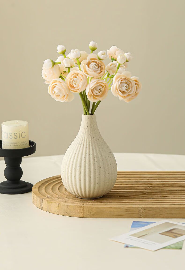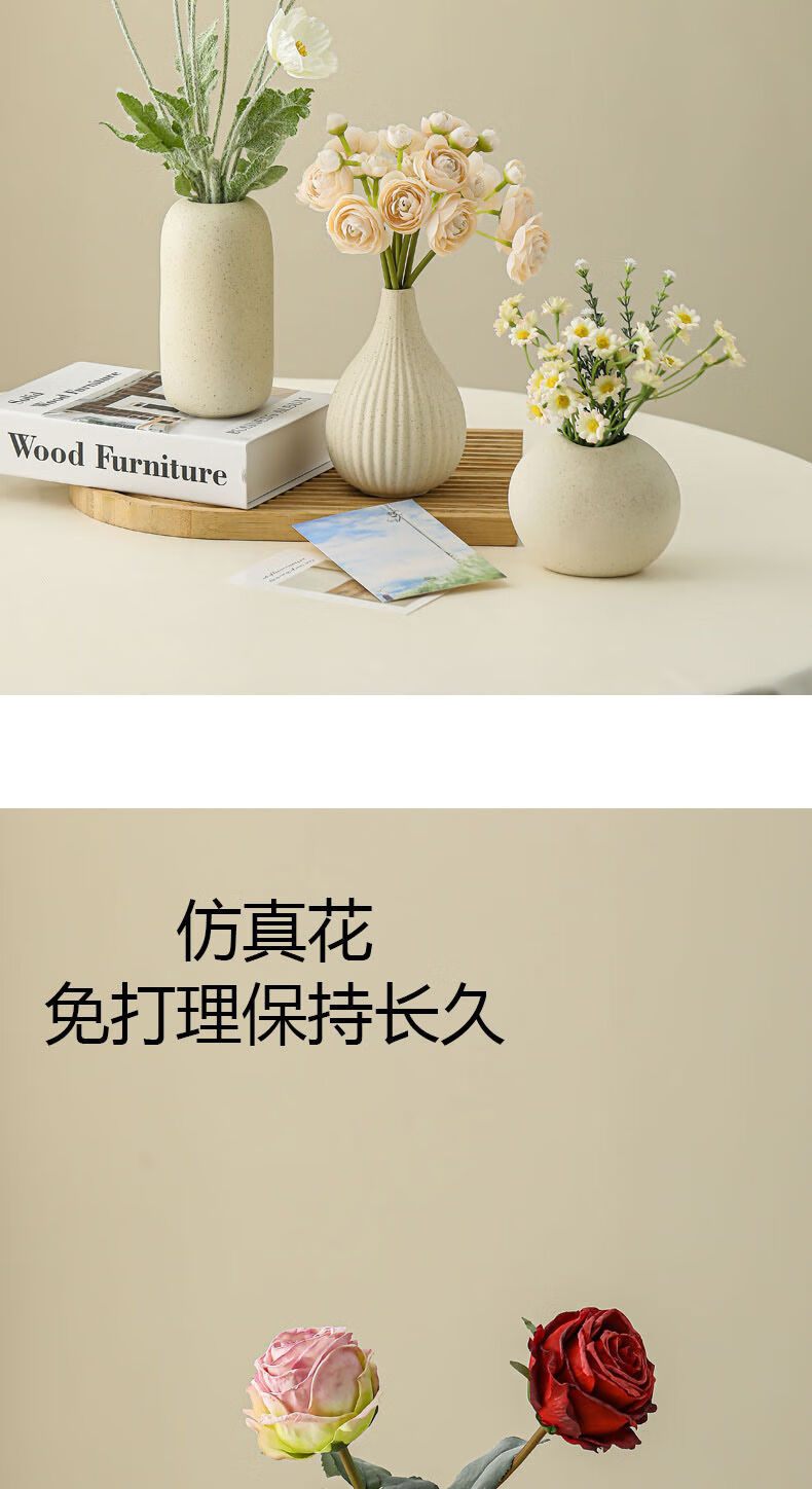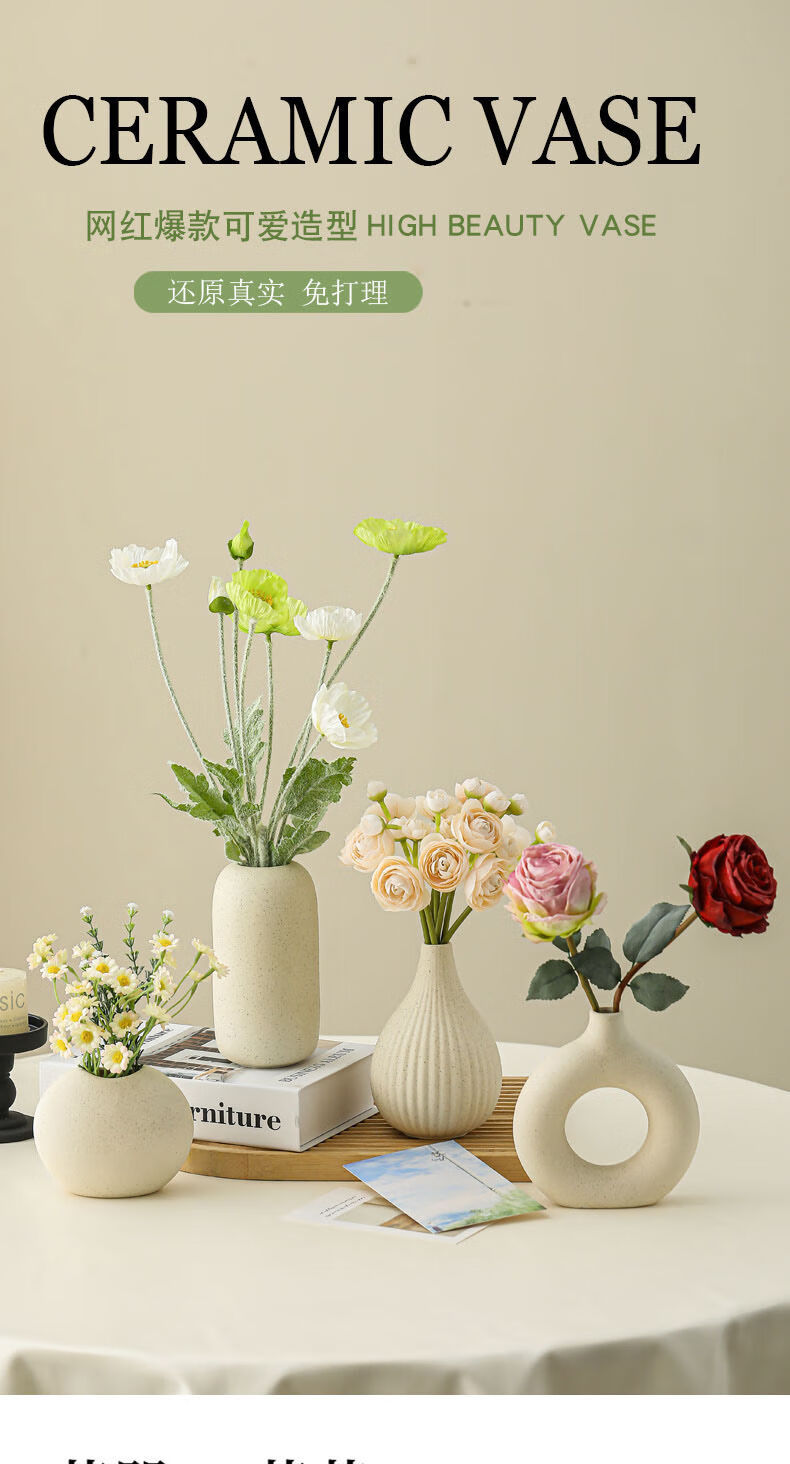 OYKTN陶瓷花瓶摆件仿真洋牡丹桌面装饰假花客厅餐桌插花花束小众感 D款素瓶含洋甘菊仿真花