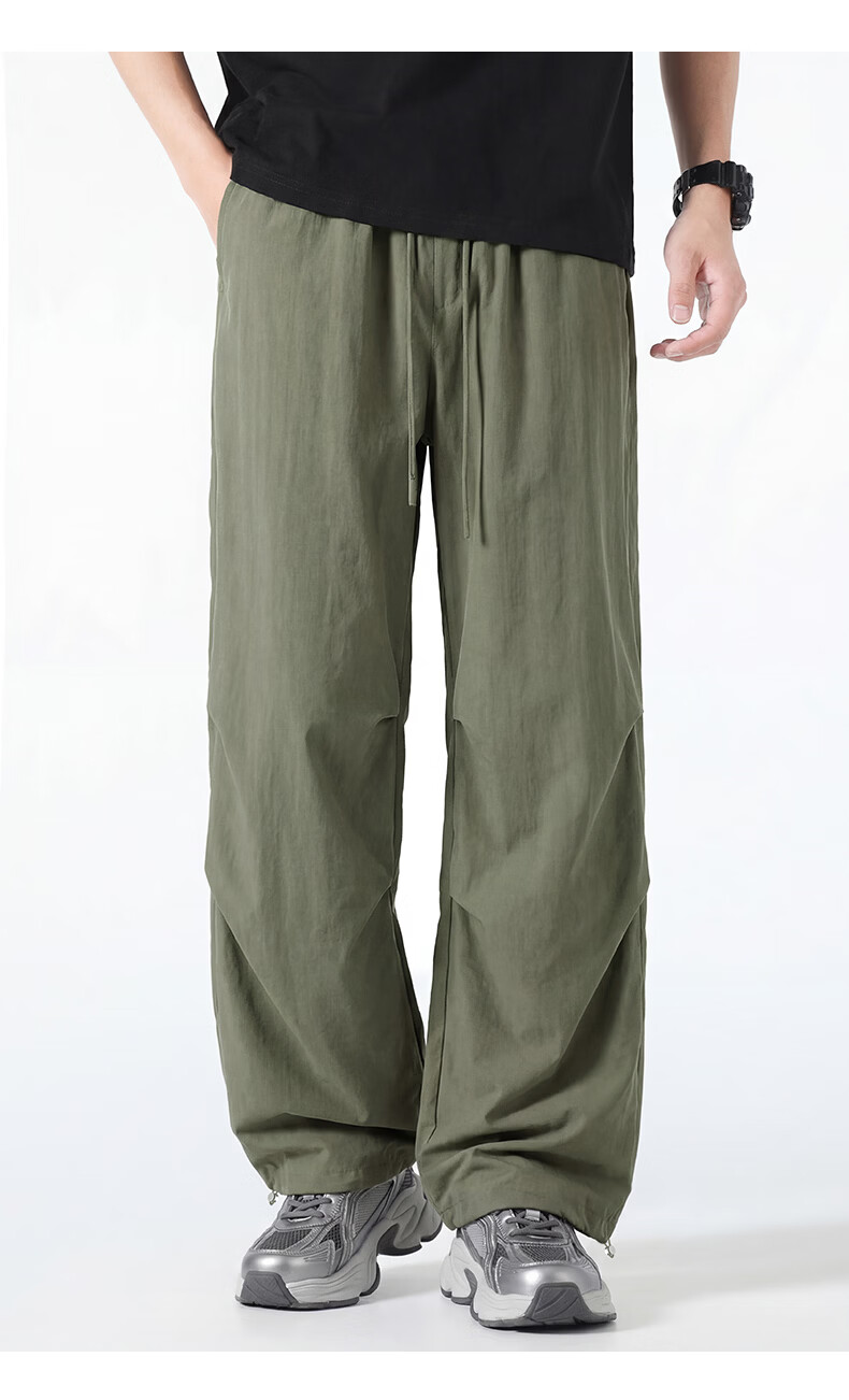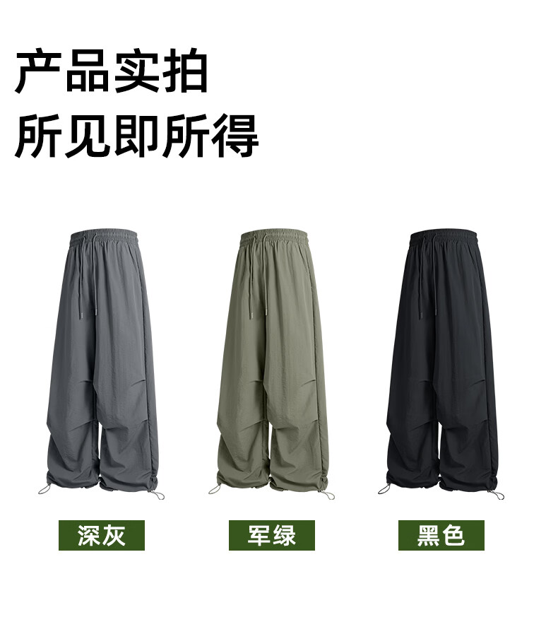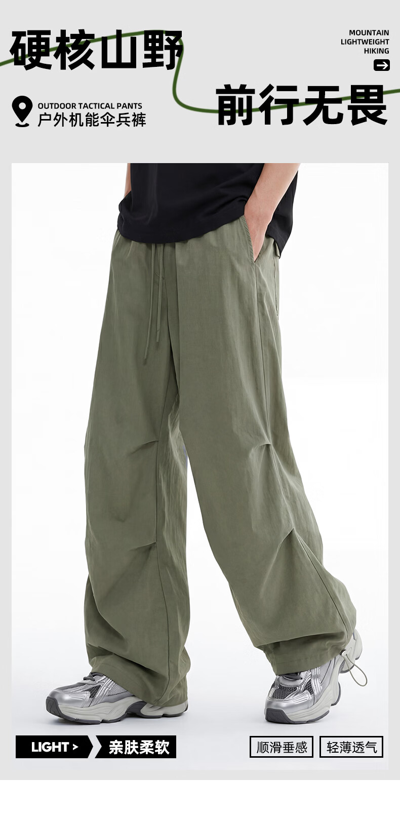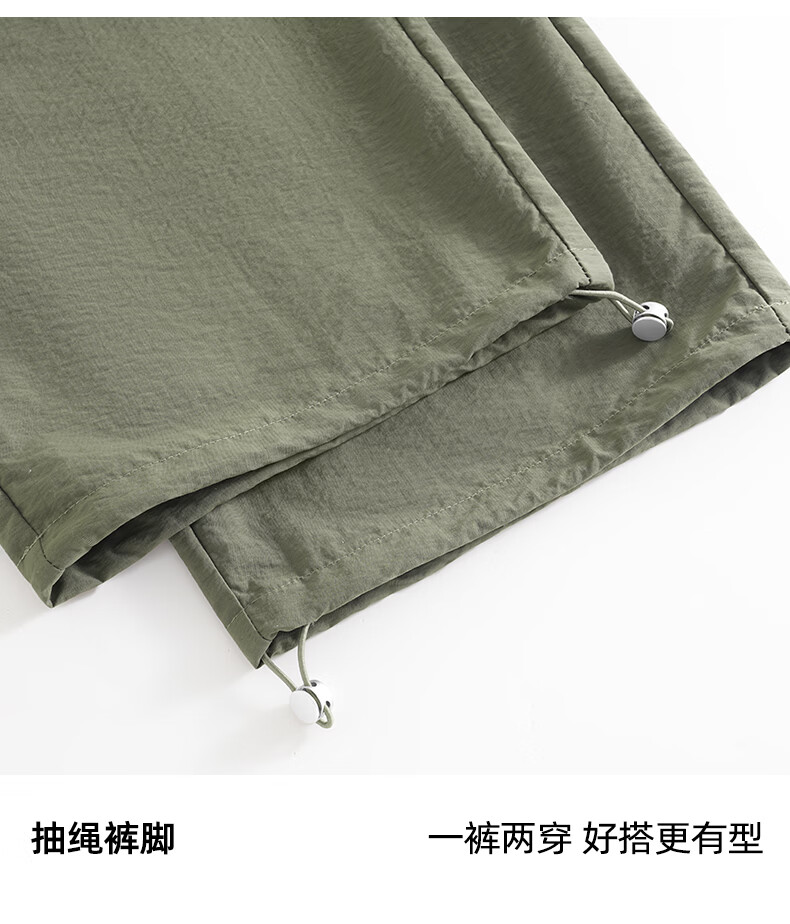 真维斯(Jeanswest)工装裤子男款2026春季新款美式直筒宽松户外伞兵裤抽绳裤休闲长裤 军绿 纯色 M
