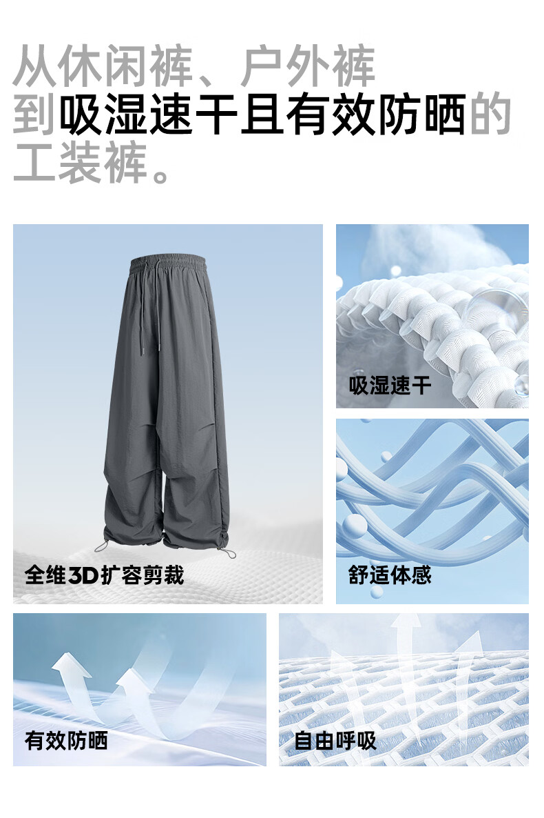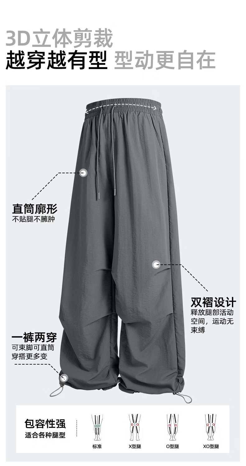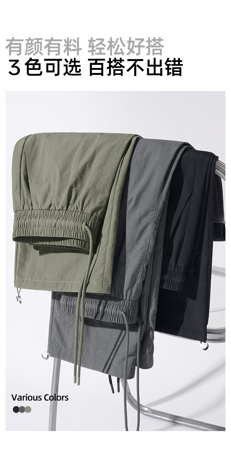 真维斯(Jeanswest)舒适感冰丝休闲裤男士秋季新款速干运动宽松束脚潮牌九分长裤子男 灰色【冰丝薄款】 M 【建议95-120斤】