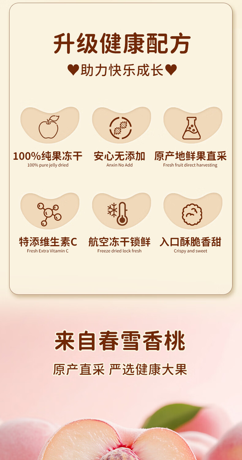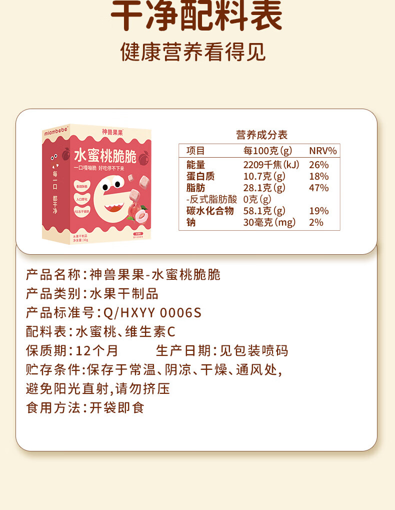 神兽果果水蜜桃脆脆婴儿6个月以上儿童零食宝宝零食冻干水果无添加 水蜜桃脆脆