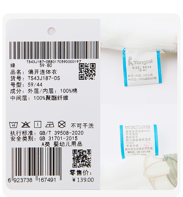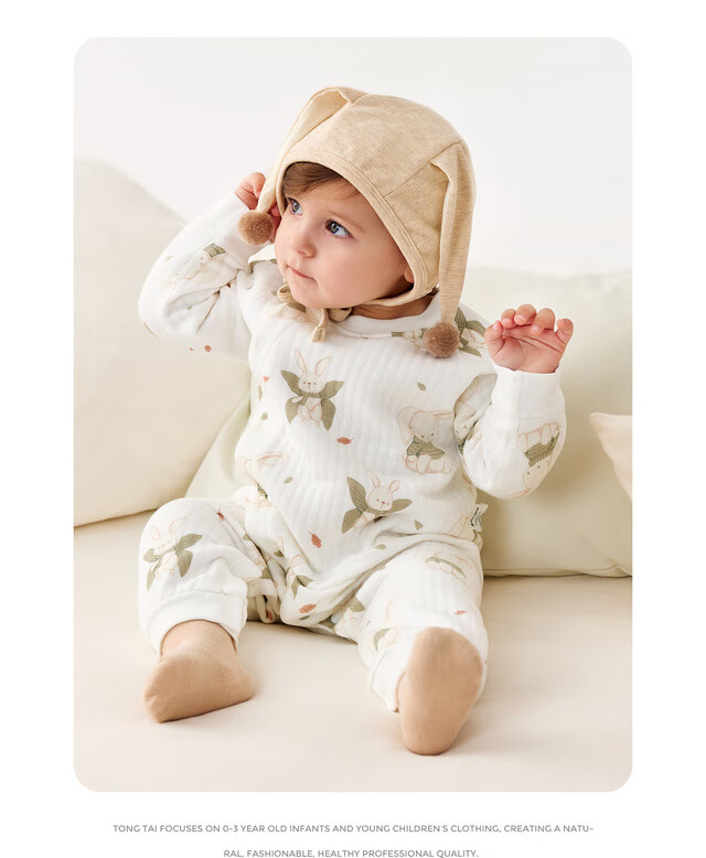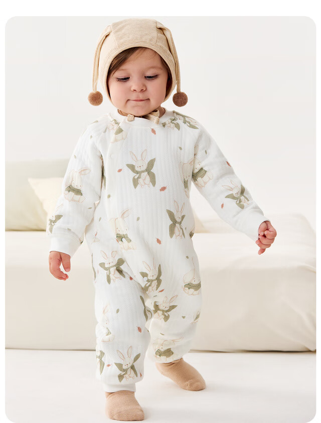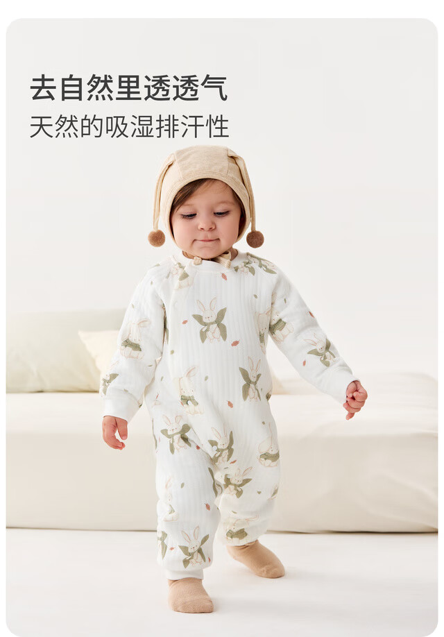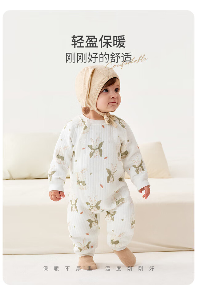 童泰(TONGTAI)婴儿连体秋冬宝宝保暖衣服夹棉哈衣爬服TS43J187-DS绿色80cm