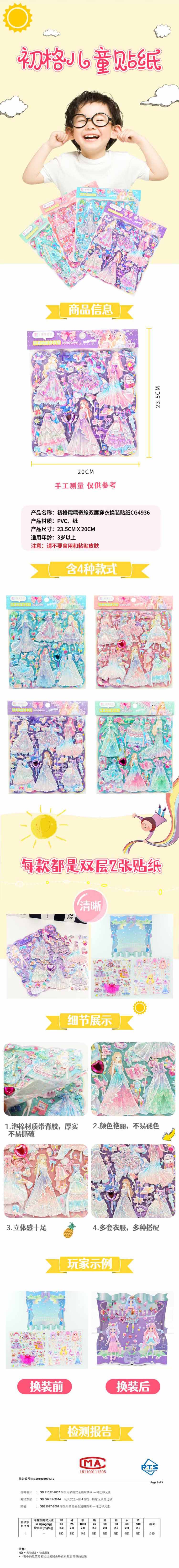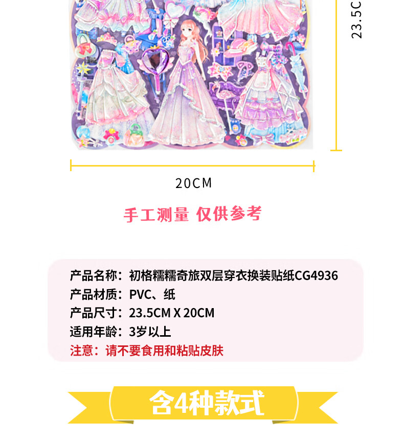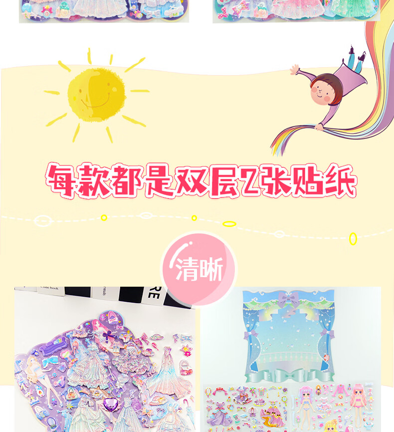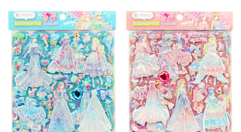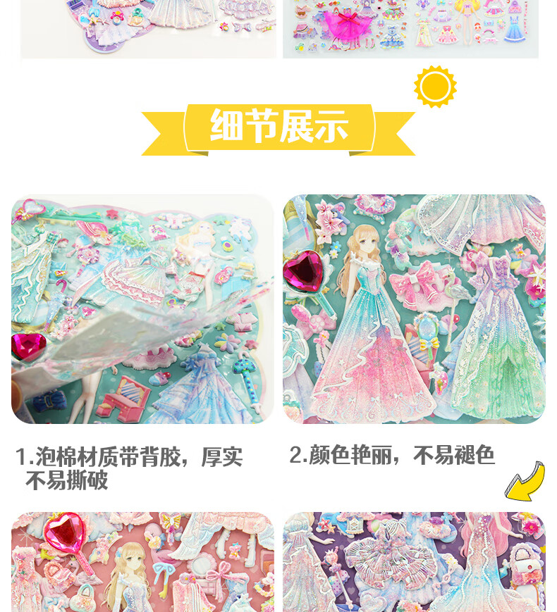 初格儿童贴纸贴画玩具换装贴女孩公主卡通立体泡泡贴糯糯奇旅拼豆