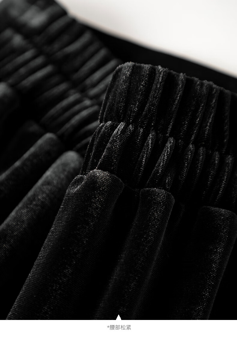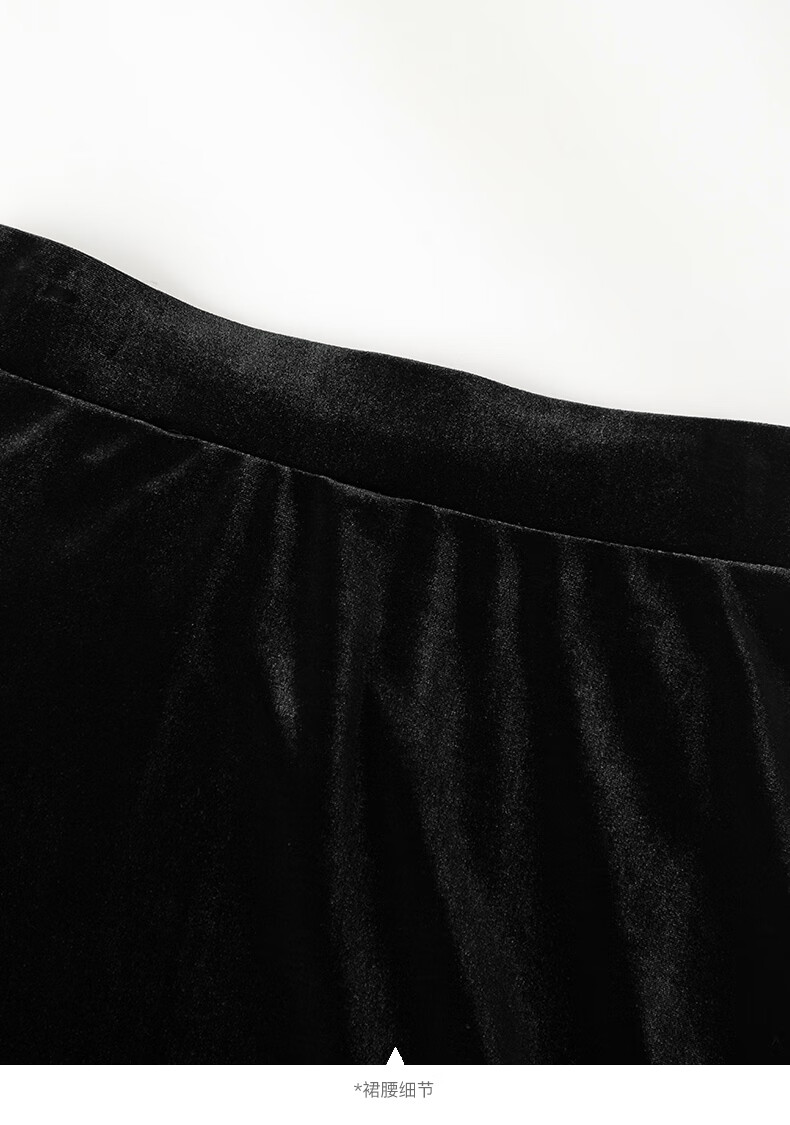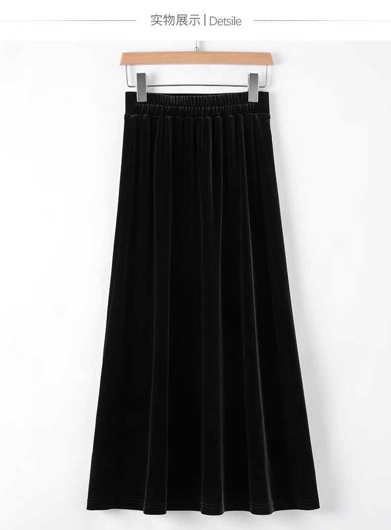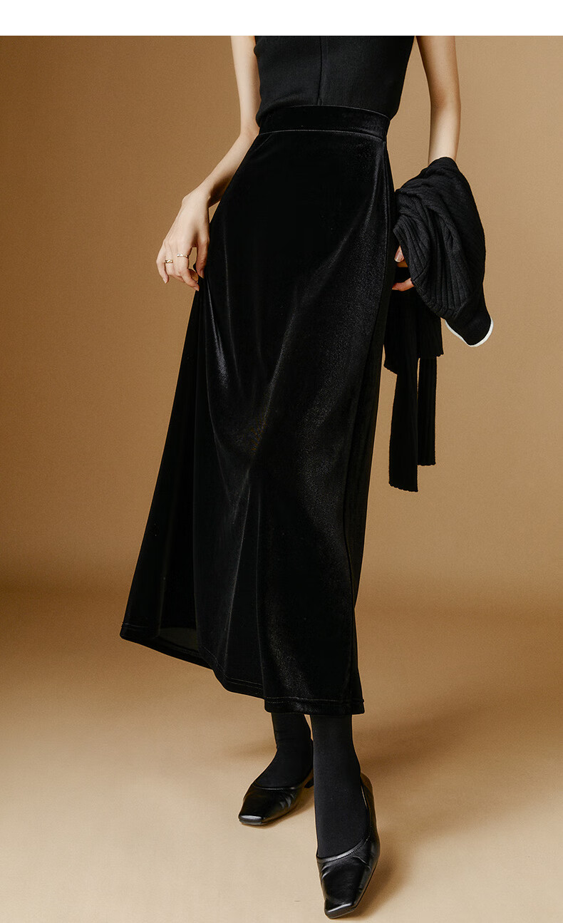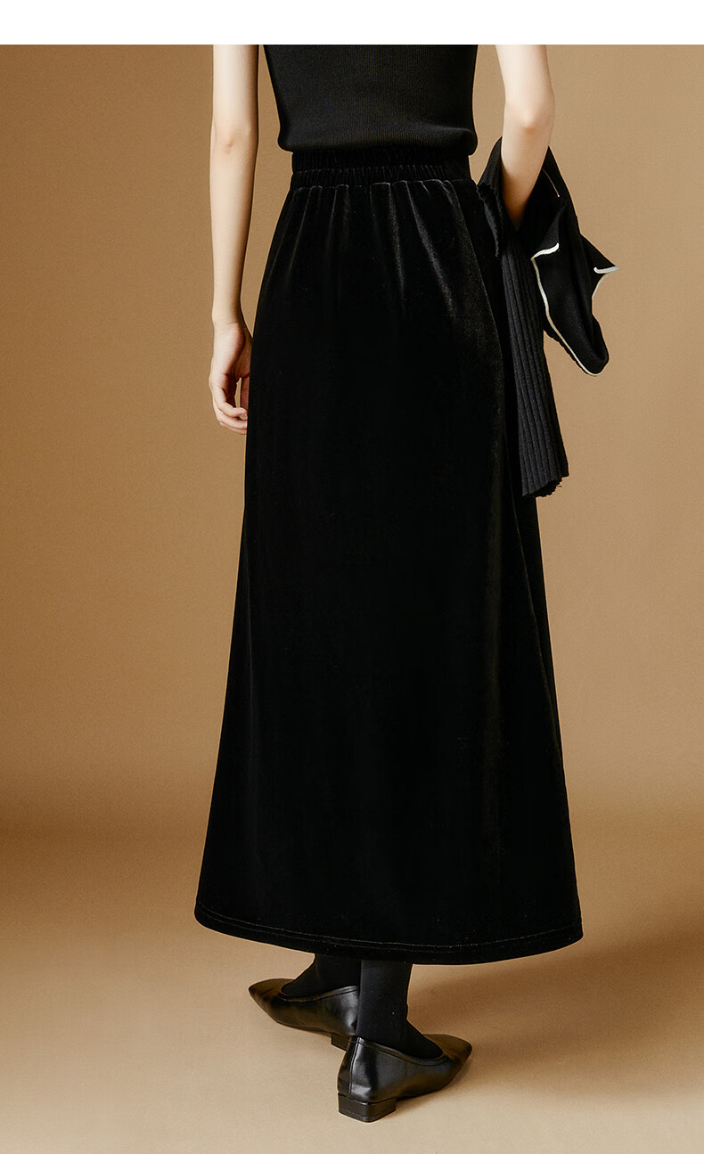 晚白【新品】2026年春款时尚简约气质半裙休闲百搭松紧腰丝绒半身裙 黑色 M