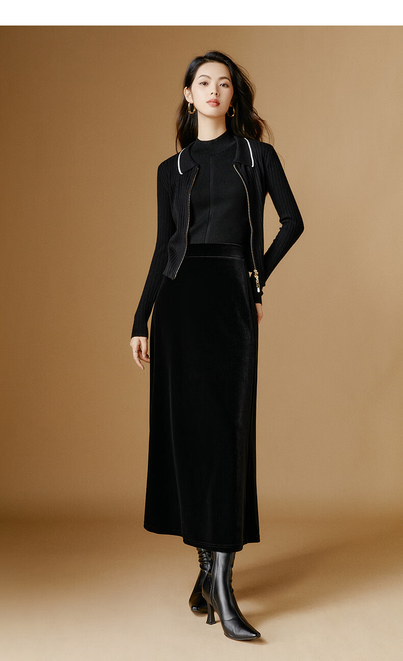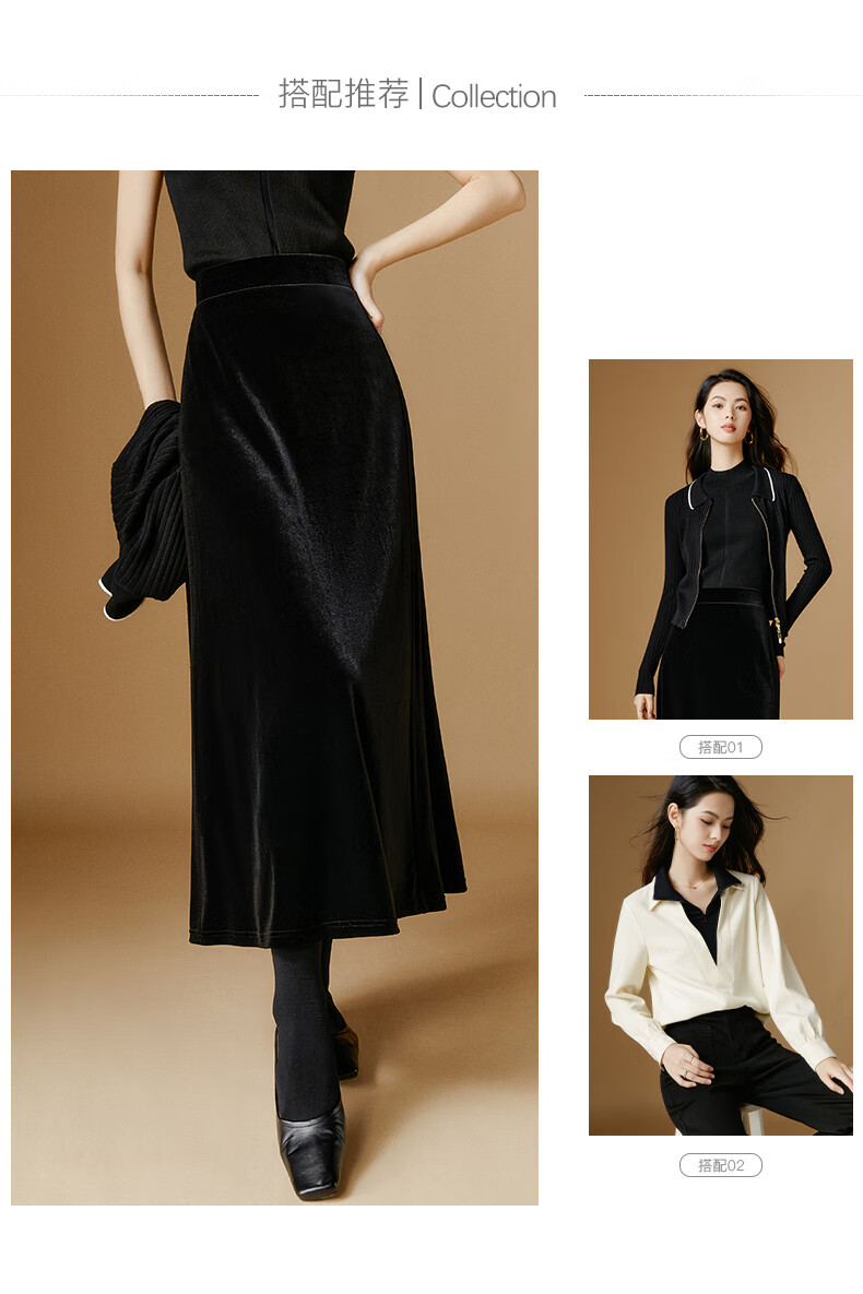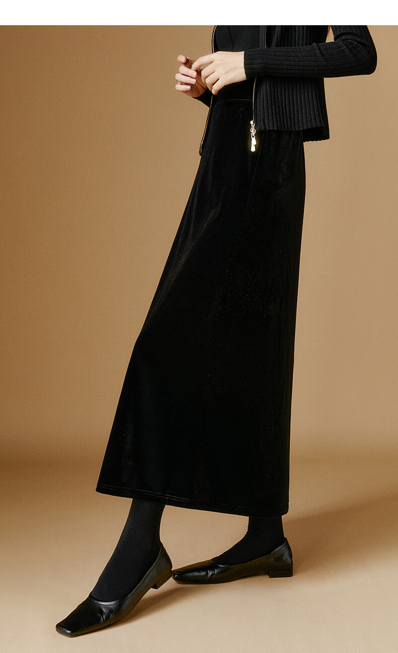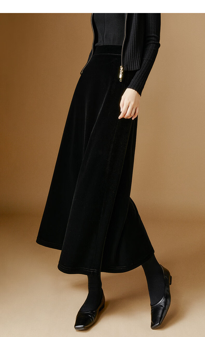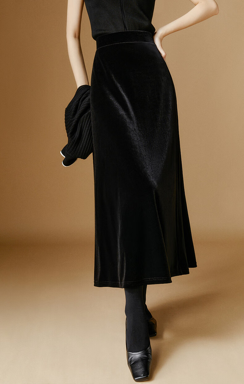 晚白【新品】2026年春款时尚简约气质半裙休闲百搭松紧腰丝绒半身裙 黑色 M