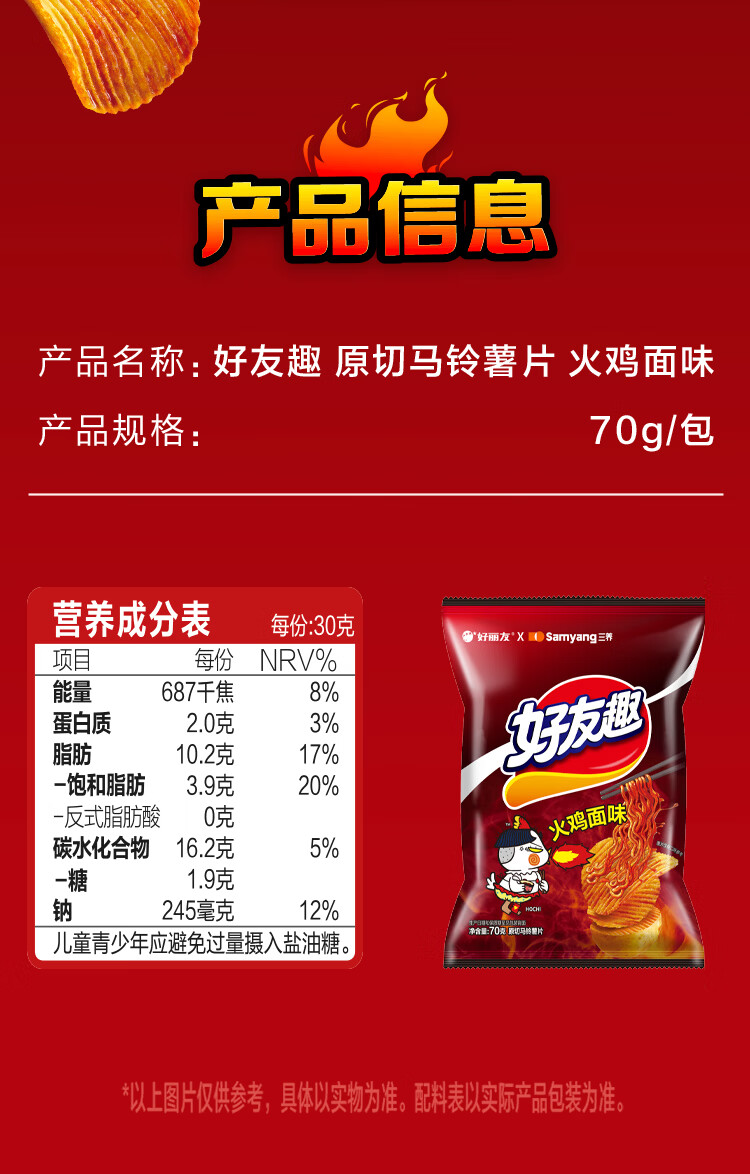 好丽友(ORION)好友趣x三养联名火鸡面味70g/袋 休闲零食小包装膨化薯片食品追剧
