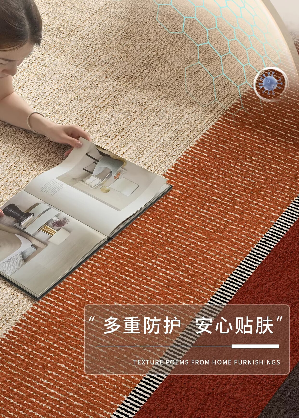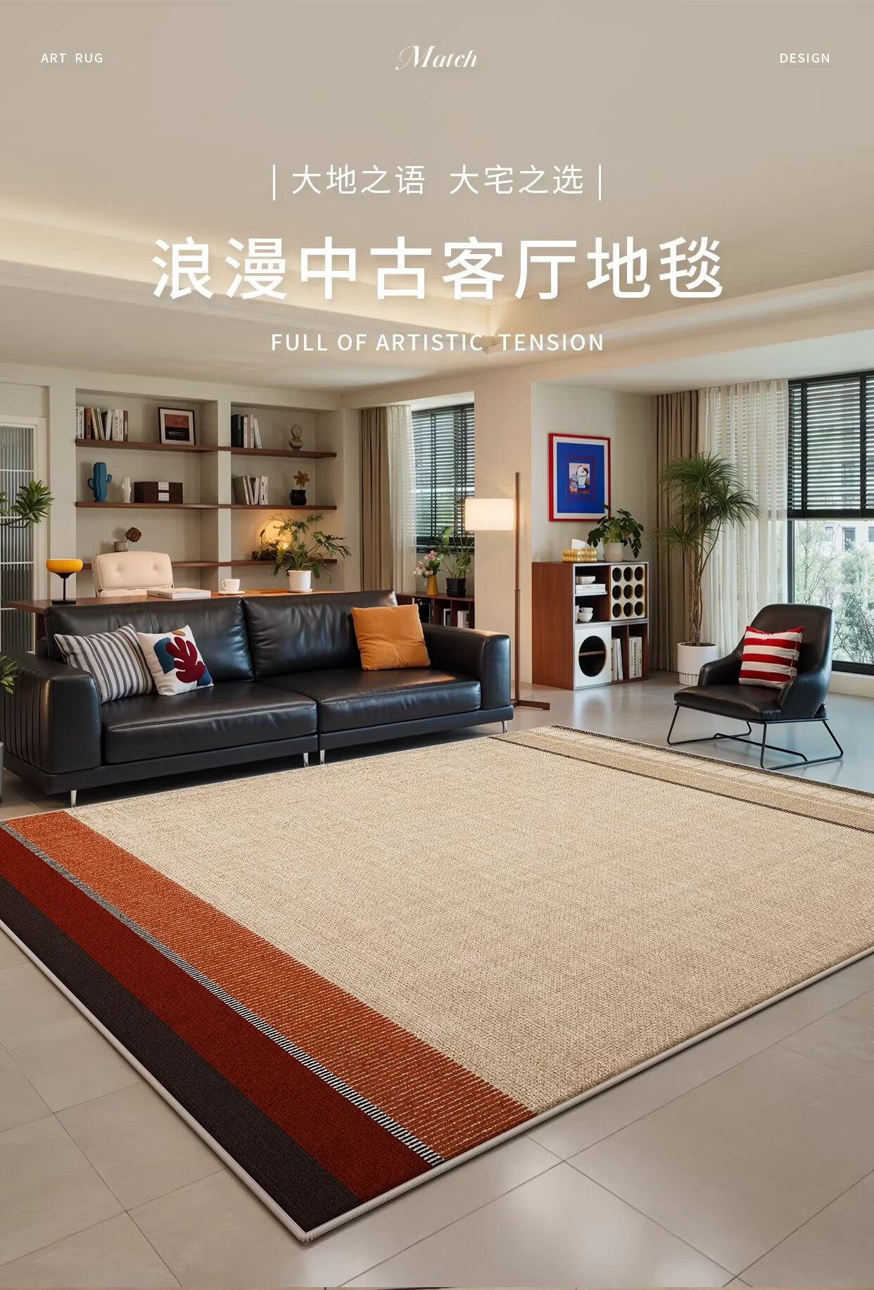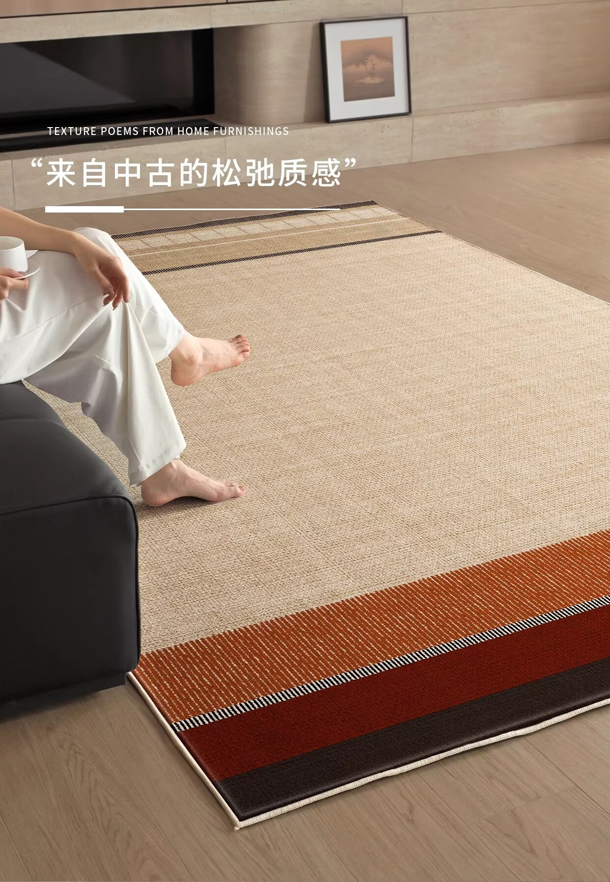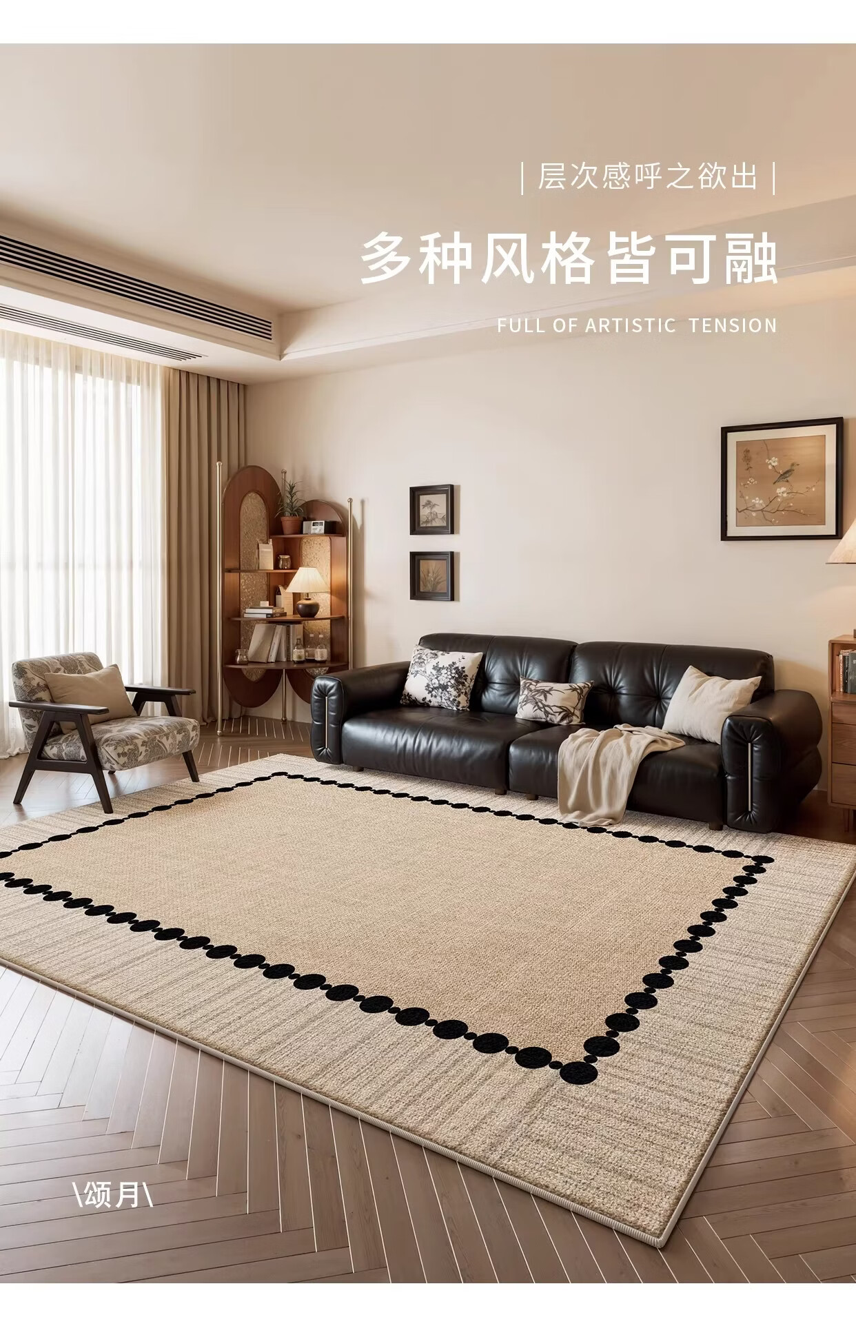 Y U-LIVE客厅地毯2026新款中古风轻奢高级感防水防污免洗可擦沙发地垫 S仿羊绒-颂月 定制请联系客服【享优惠】