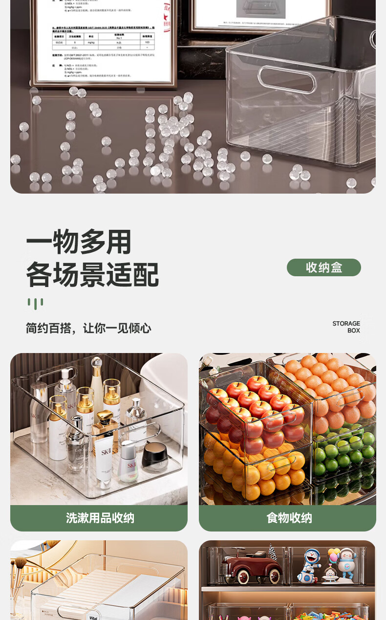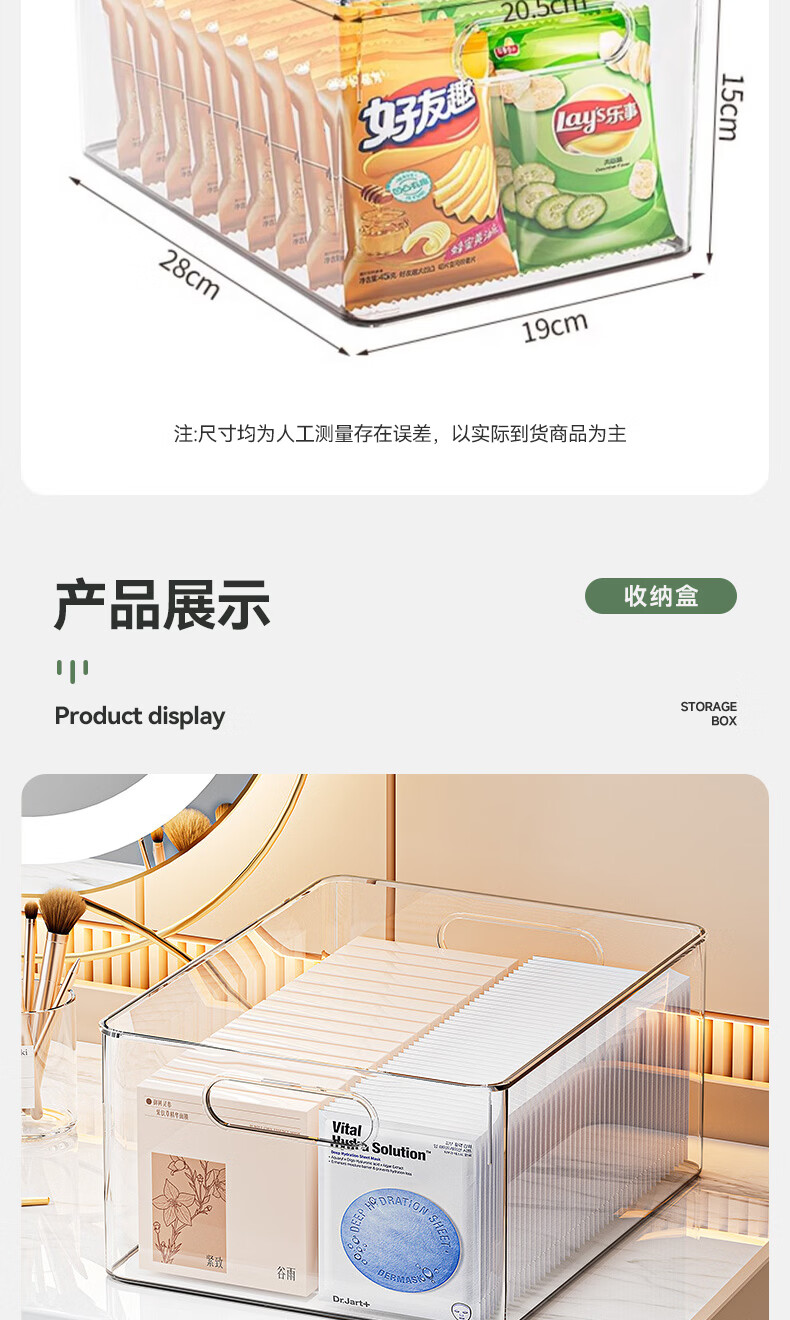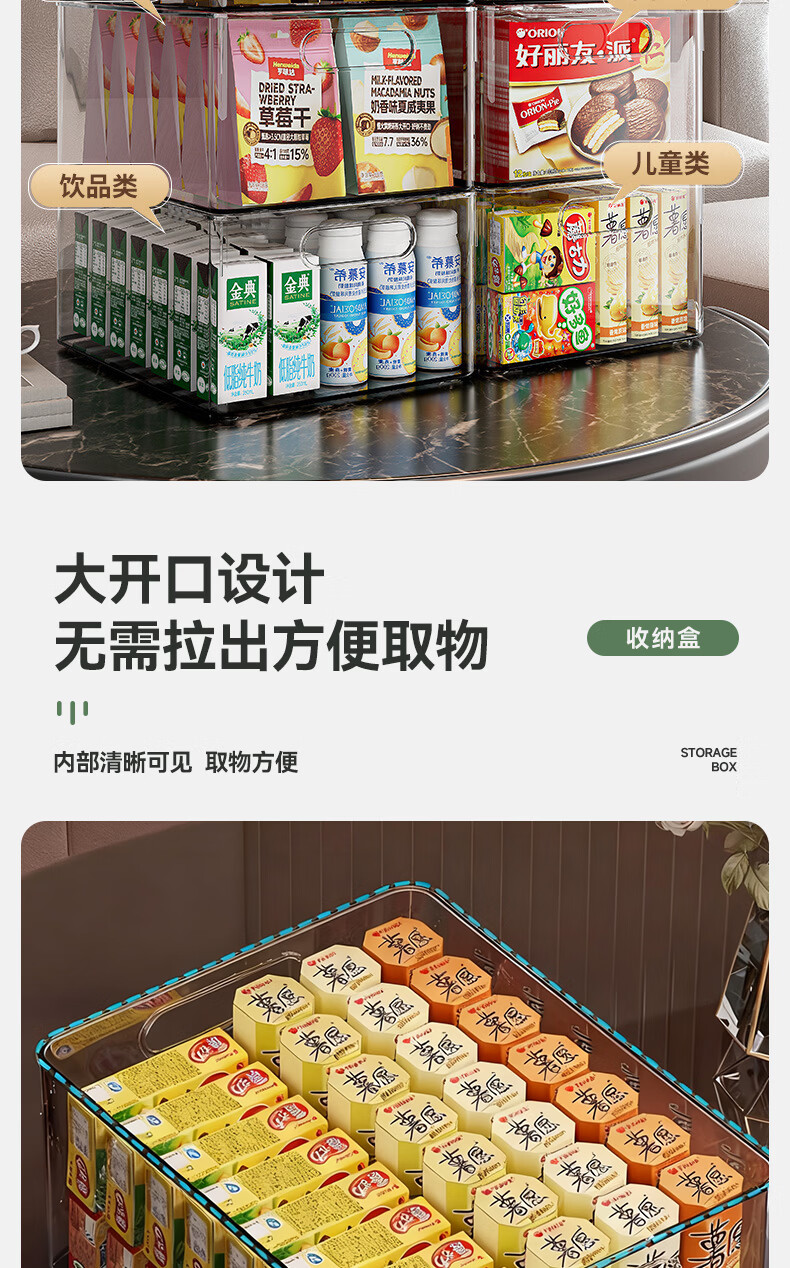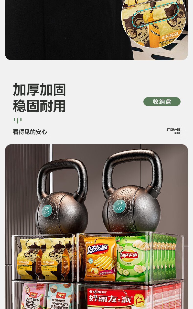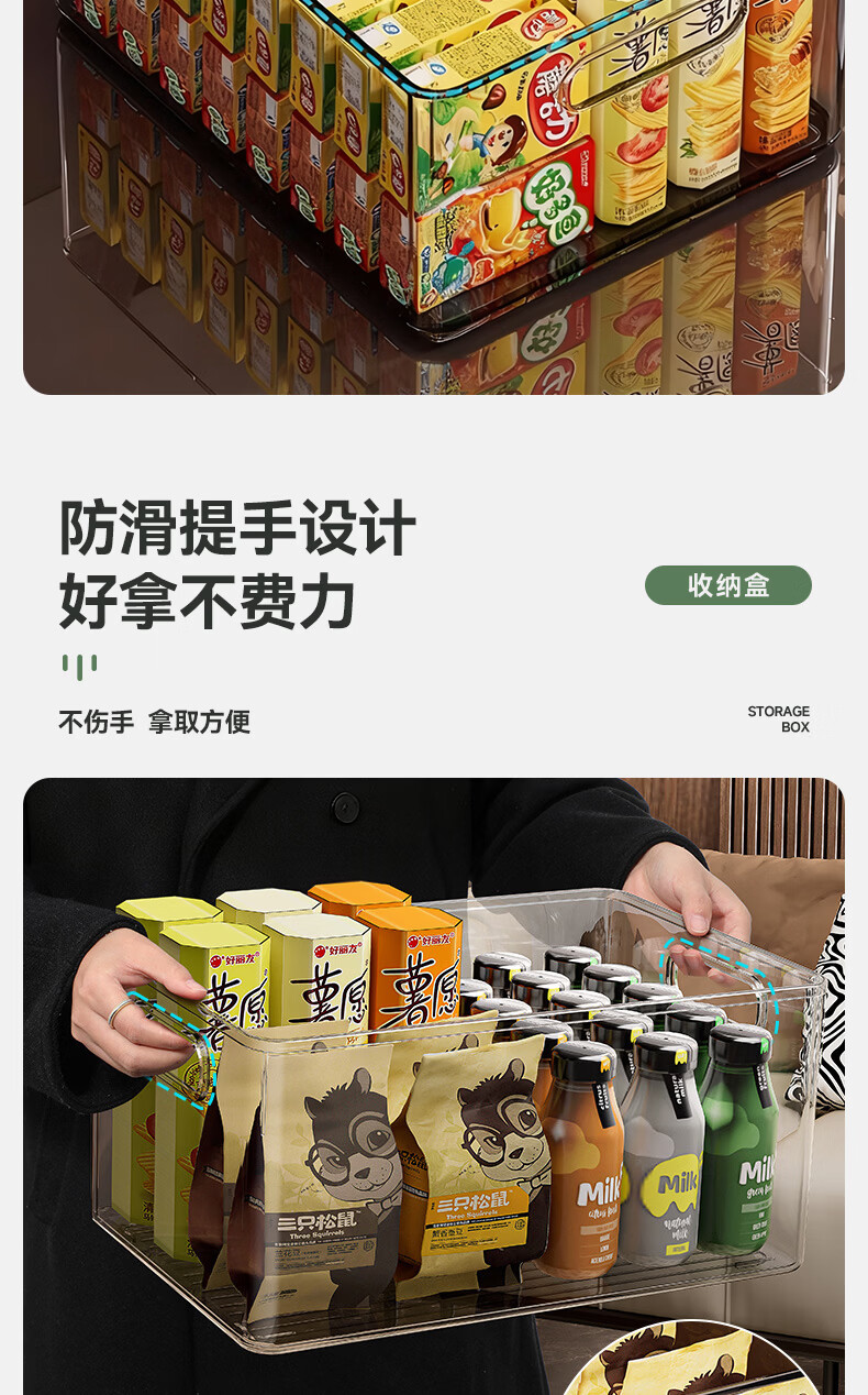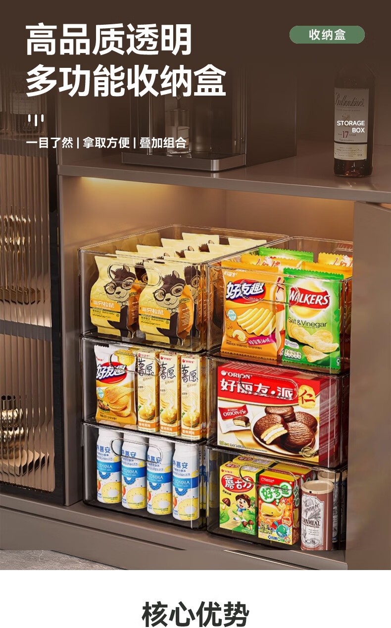 叩素橱柜收纳盒整理杂物零食透明置物筐桌面透明亚克力长方形储物盒子 大号带手提/透明收纳盒 2个装