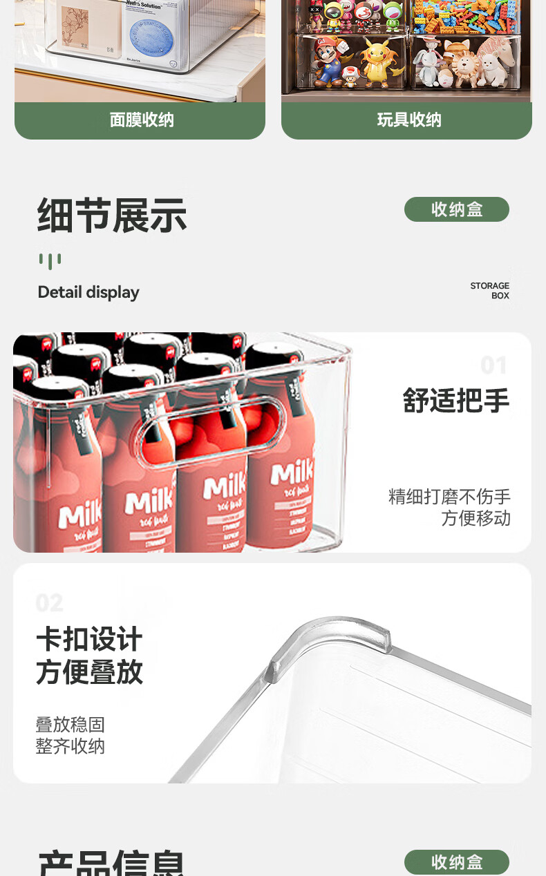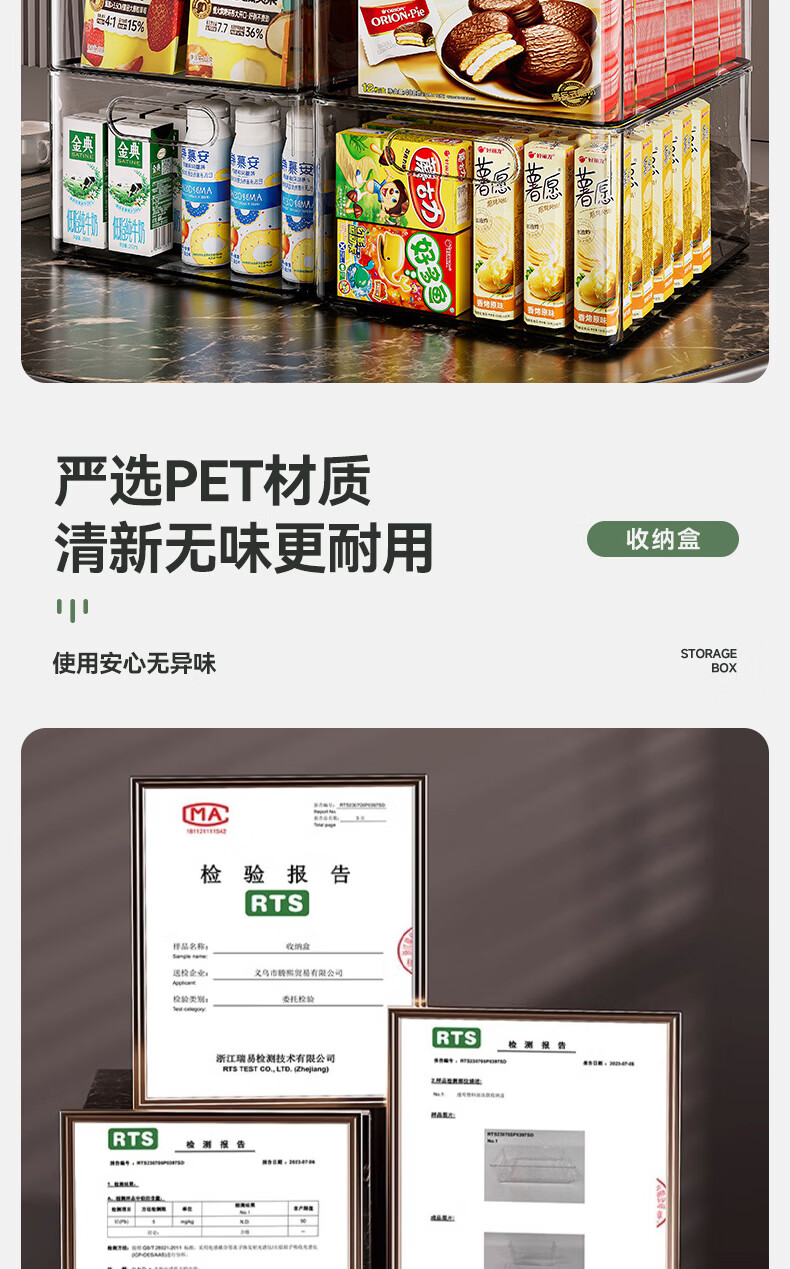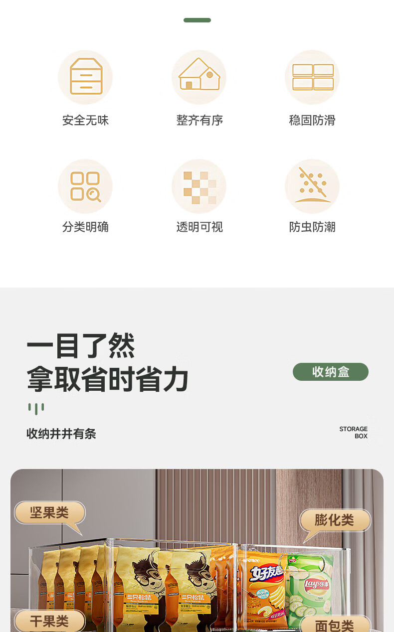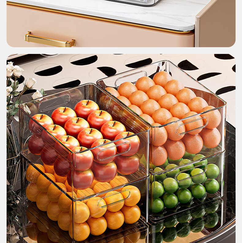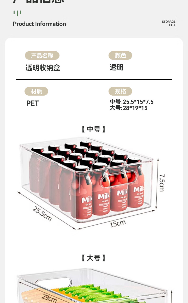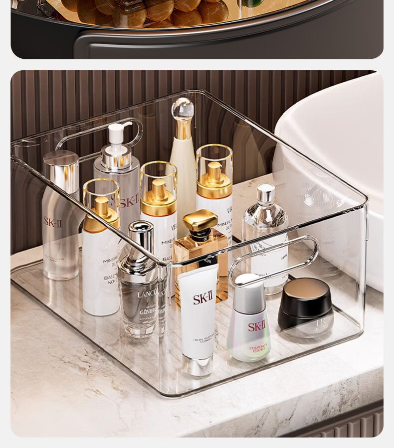 叩素橱柜收纳盒整理杂物零食透明置物筐桌面透明亚克力长方形储物盒子 大号带手提/透明收纳盒 2个装