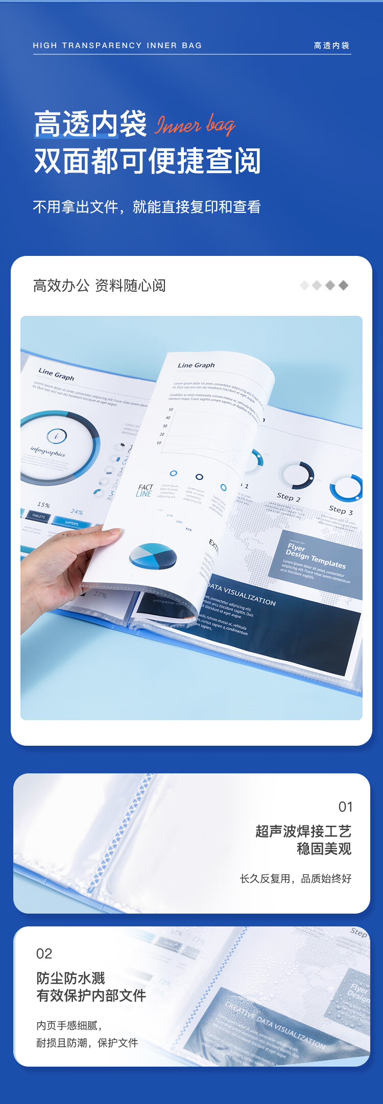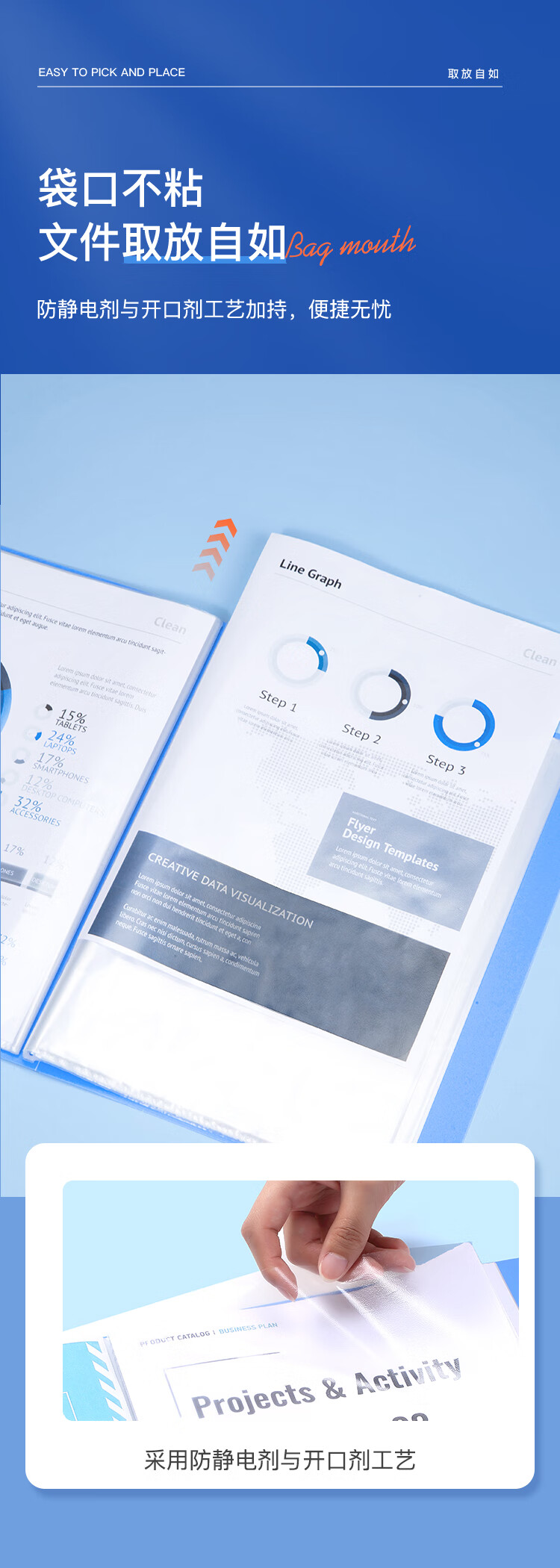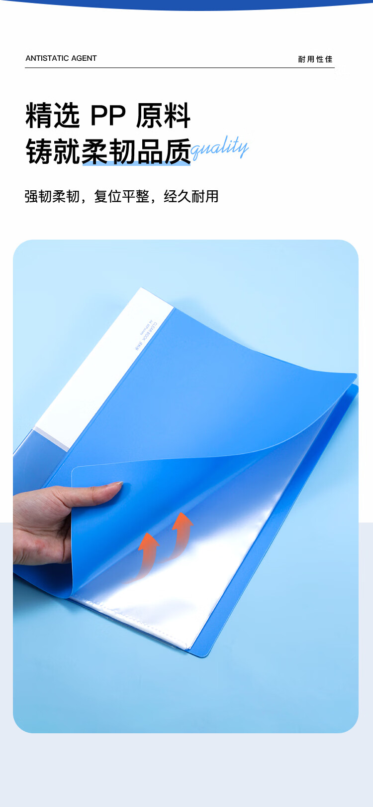 齐心(COMIX)A4/60页资料册文件夹插页袋文件册活页夹档案学生试卷科目收纳袋发票管理办公文件保护蓝色EA2006