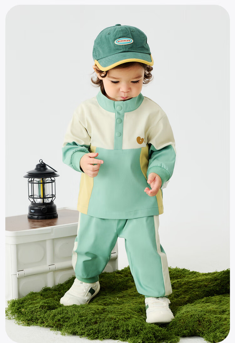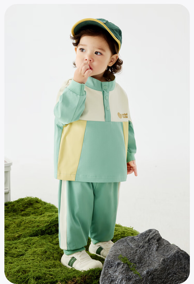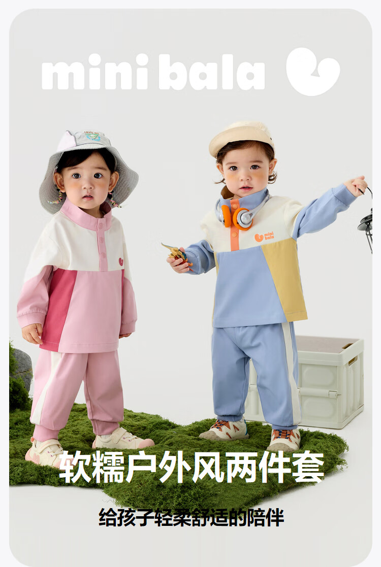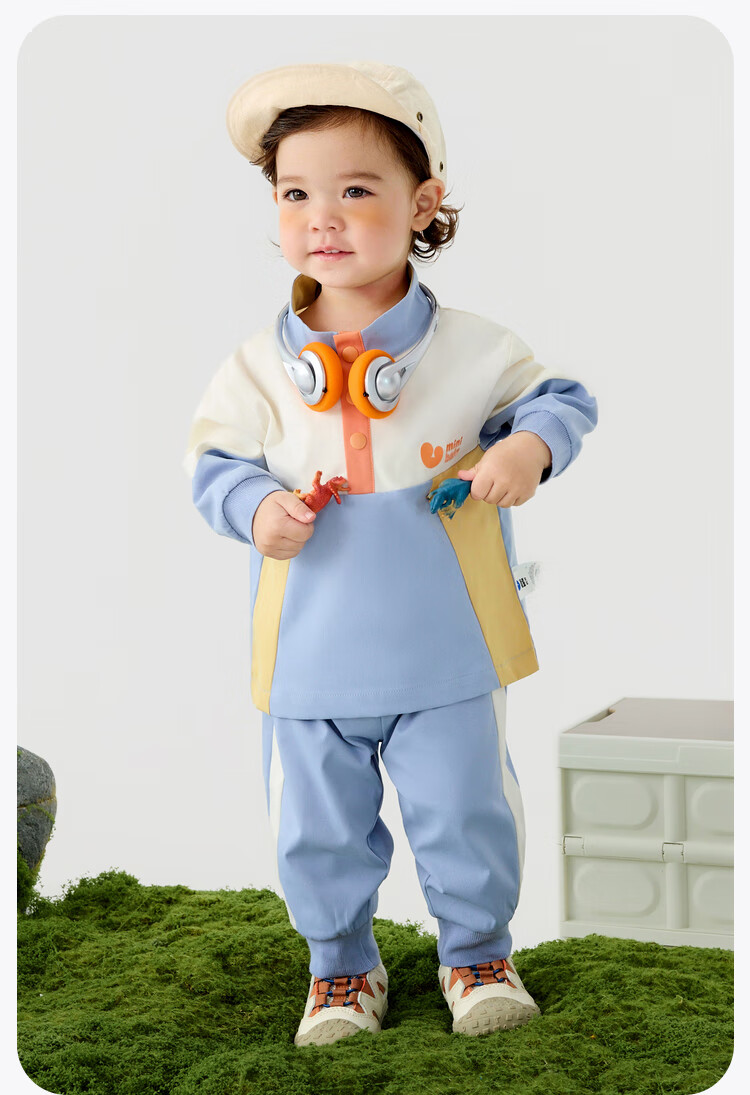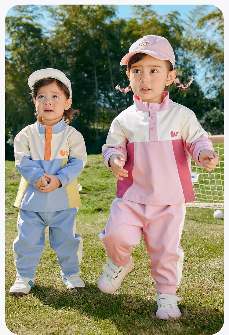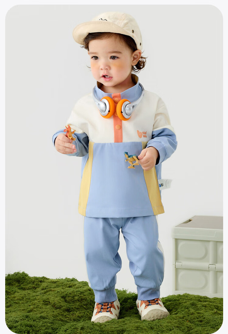 迷你巴拉巴拉男女童长袖套装潮流拼色上衣长裤两件套春季新款 海盐千层 100 【91-100cm 12-16kg】