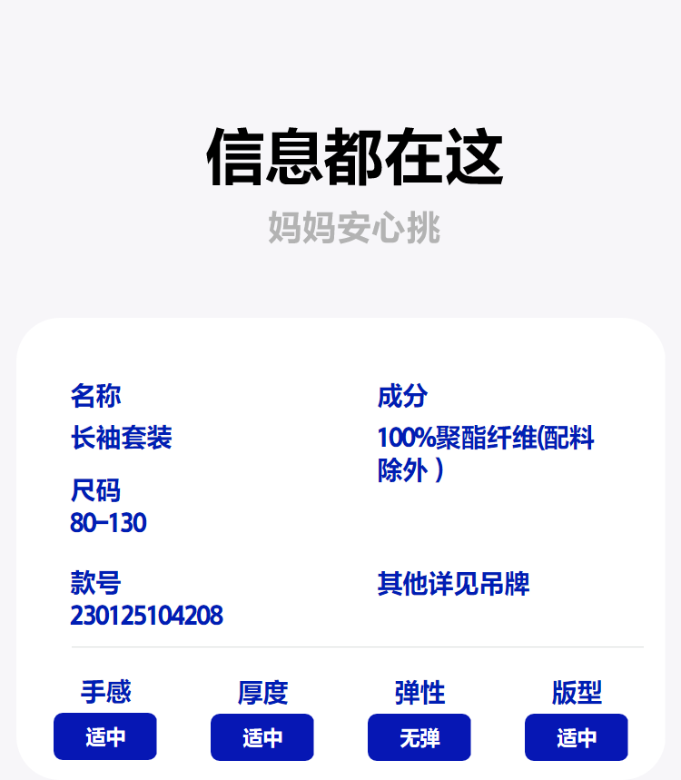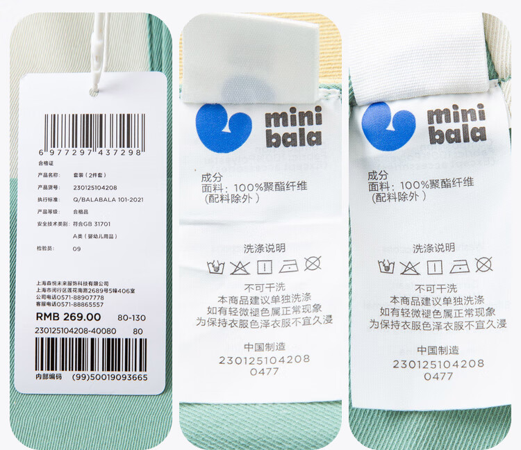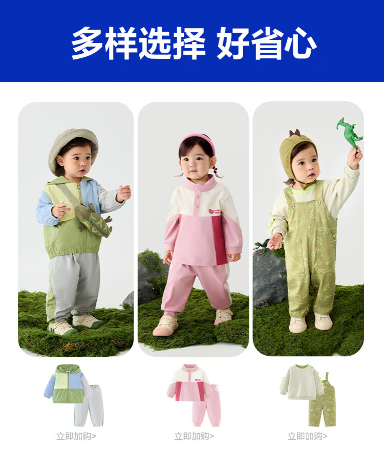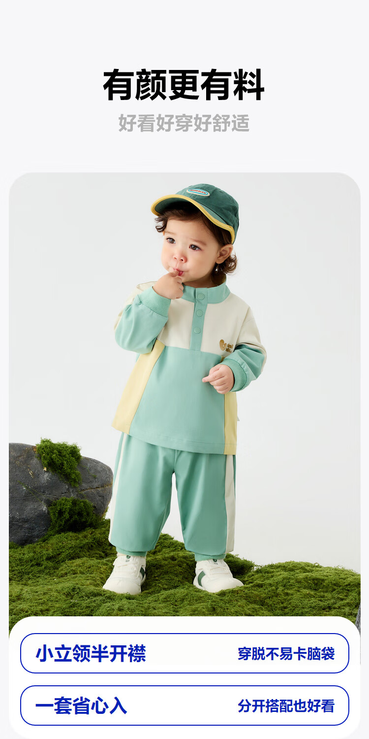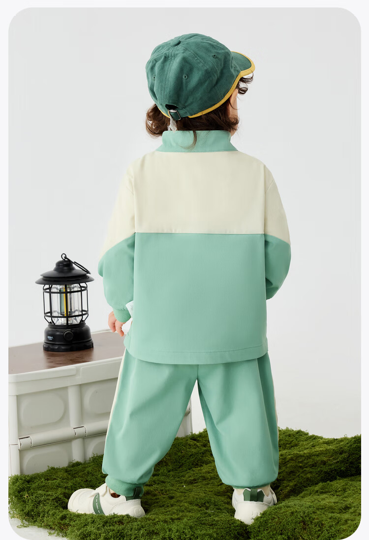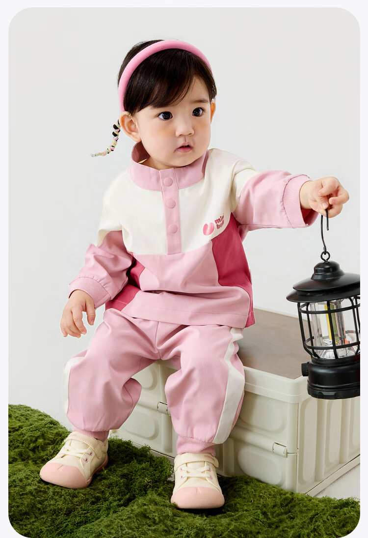 迷你巴拉巴拉男女童长袖套装潮流拼色上衣长裤两件套春季新款 海盐千层 100 【91-100cm 12-16kg】