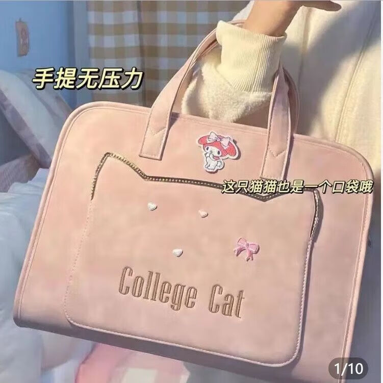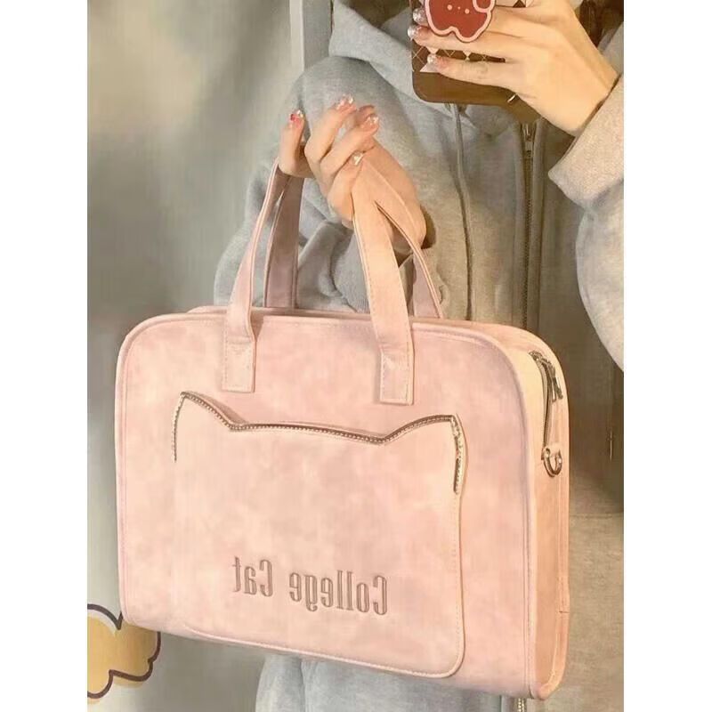 乖可爱时尚商务手提电脑包15.6寸通勤公文包女可爱大容量笔记本文 16寸包包加斜跨带