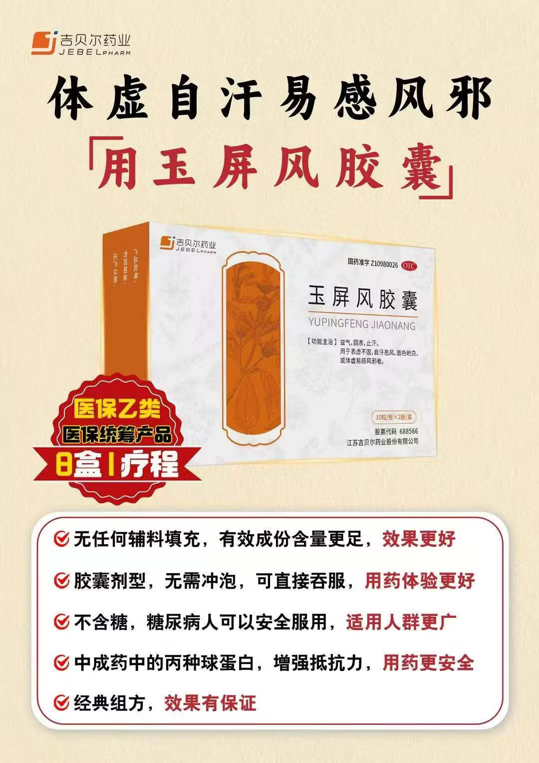 [吉贝尔]玉屏风胶囊 0.5g*20粒 1盒装 甲流感冒用药 增强抵抗力治疗表虚不固自汗恶风面色白光白或体虚易感风邪者固表止汗 赠品勿 拍假一赔十